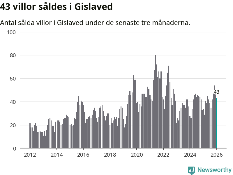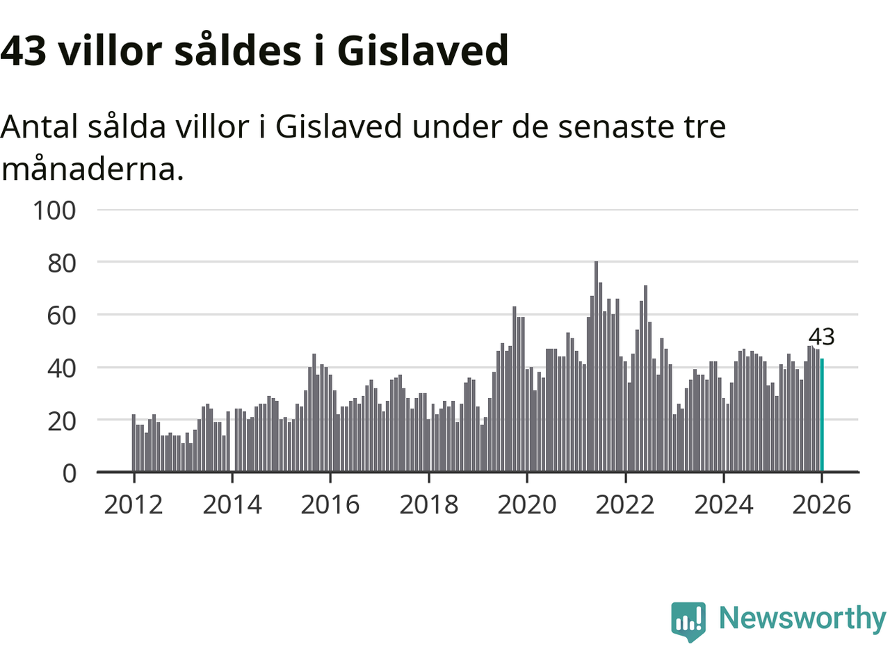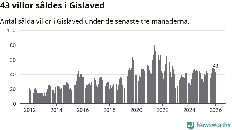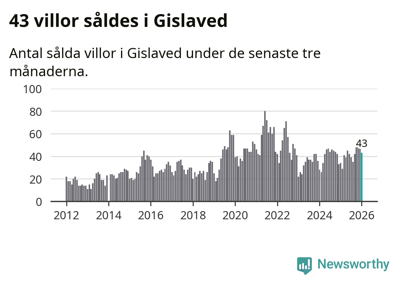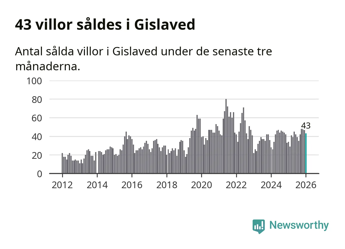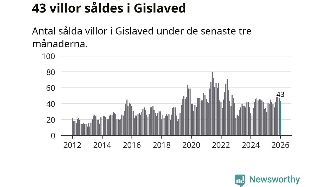 Sammanlagt såldes 43 villor i Gislaveds kommun mellan november och januari till ett genomsnittligt pris på 1,4 miljoner kronor. I fjol gjordes 34 affärer vid den här tiden på året.