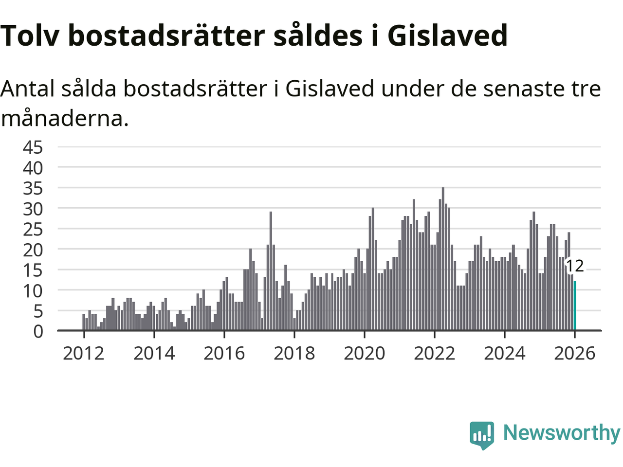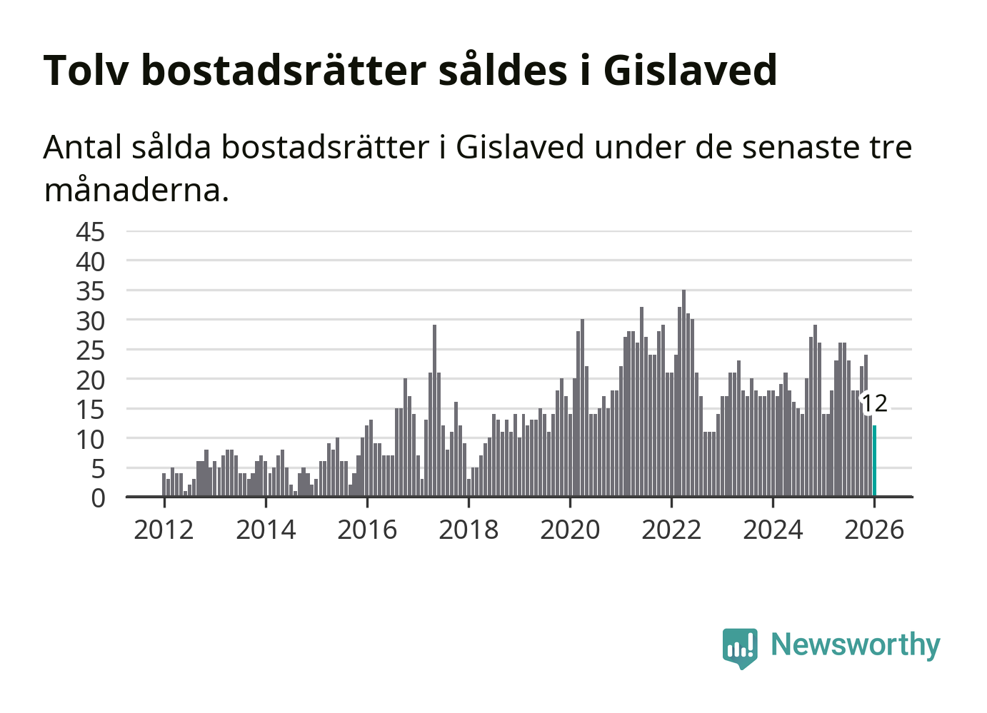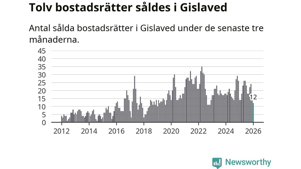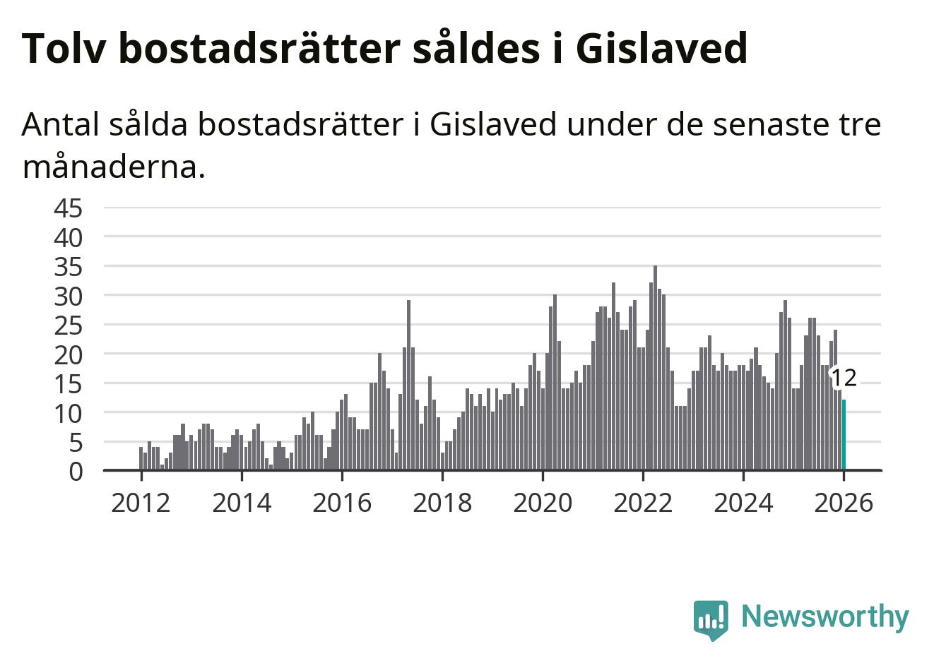 Mellan november och januari gjordes sammanlagt tolv affärer med bostadsrätter i Gislaveds kommun. Det kan jämföras med 14 vid motsvarande tid i fjol.