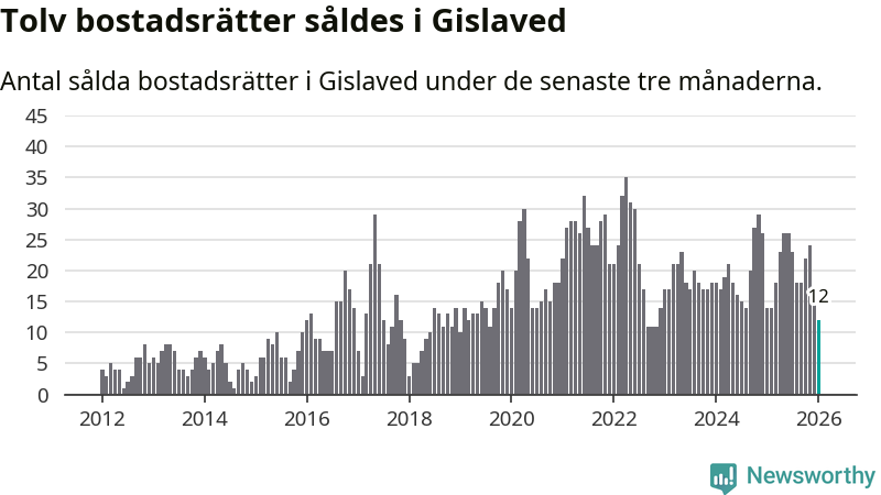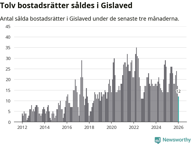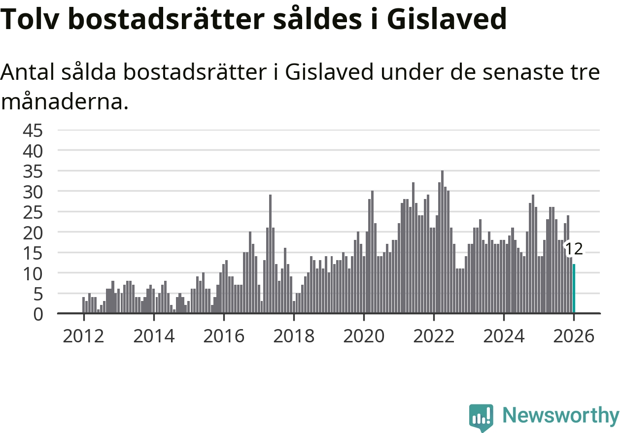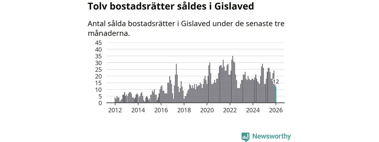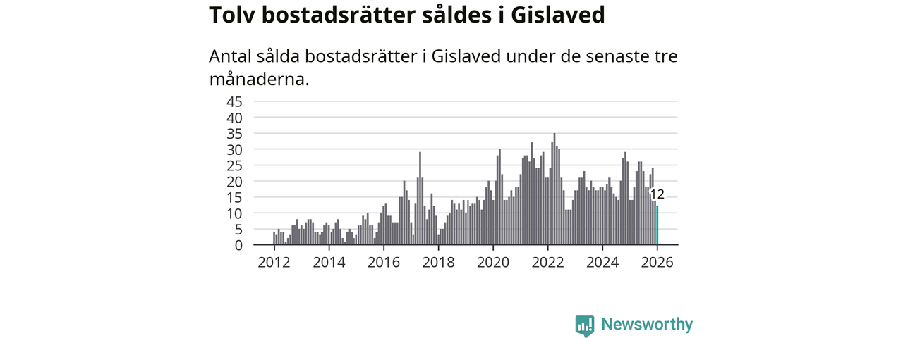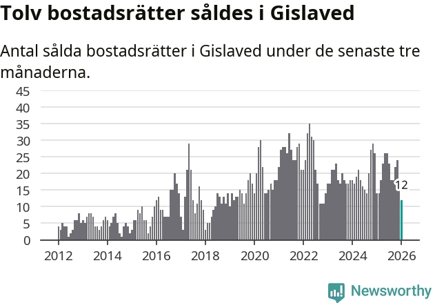 Mellan november och januari gjordes sammanlagt tolv affärer med bostadsrätter i Gislaveds kommun. Det kan jämföras med 14 vid motsvarande tid i fjol.