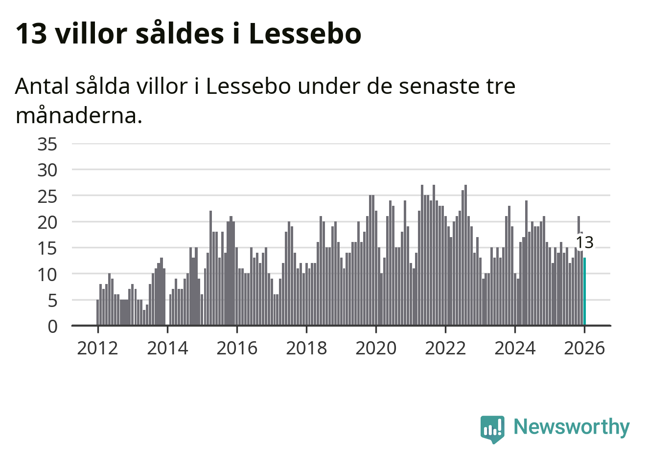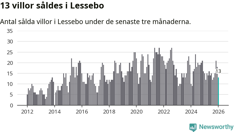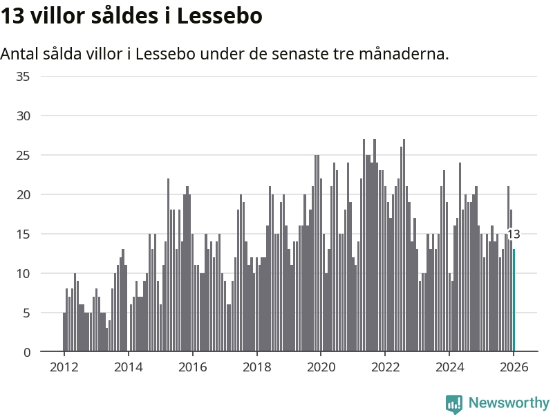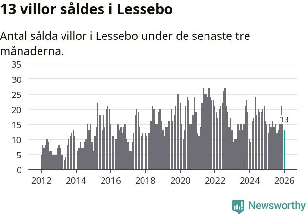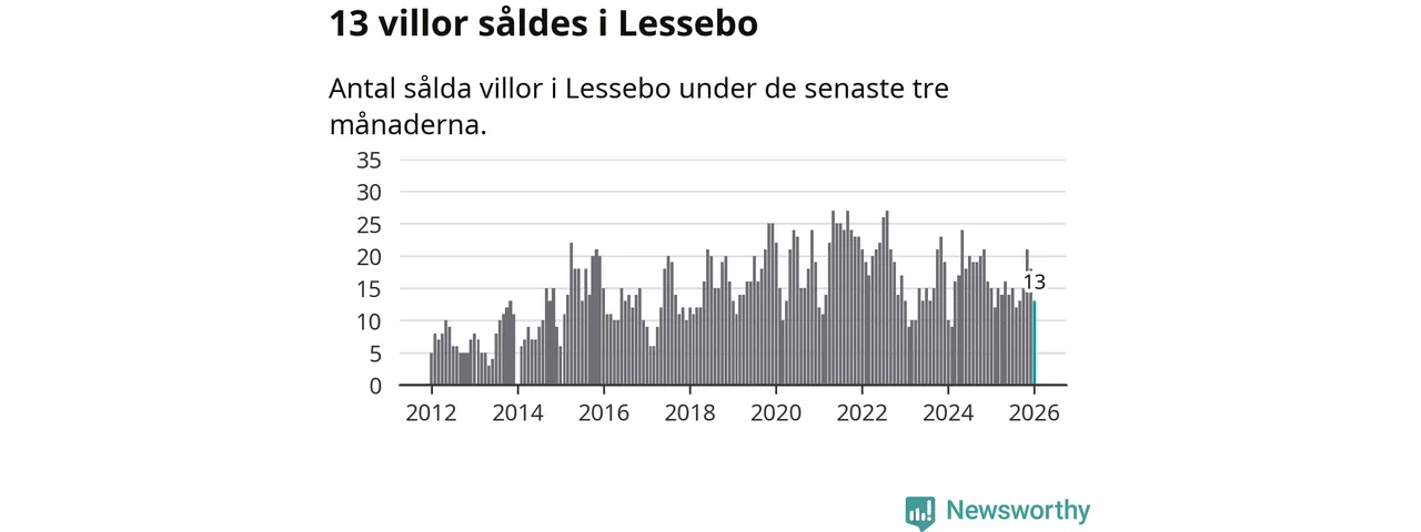 Mellan november och januari gjordes sammanlagt 13 affärer med villor i Lessebo kommun. Det kan jämföras med 15 vid motsvarande tid i fjol.