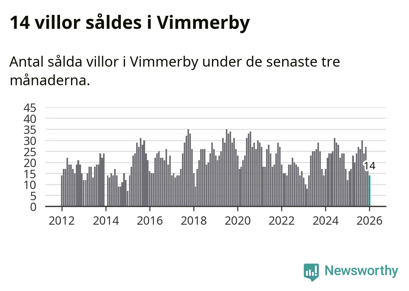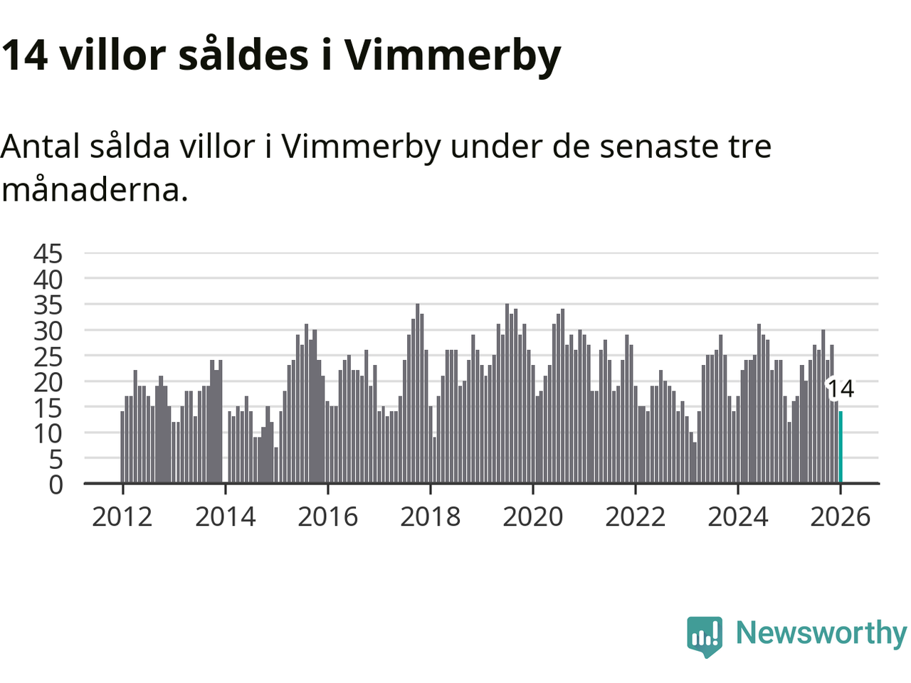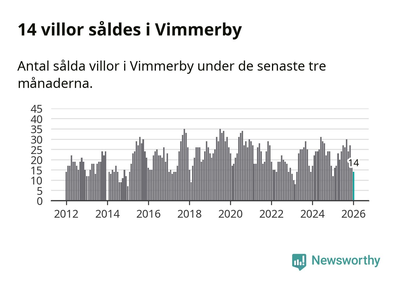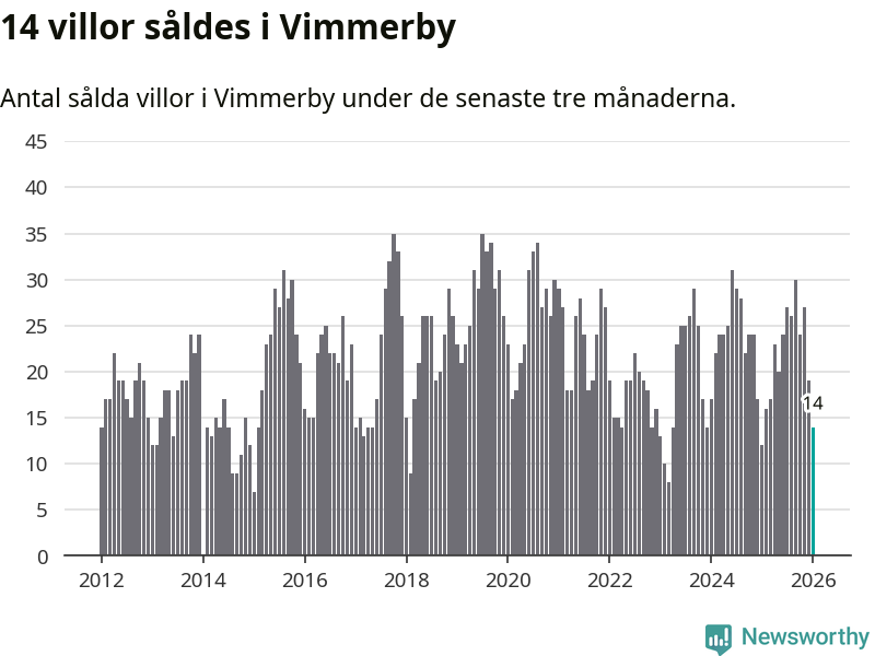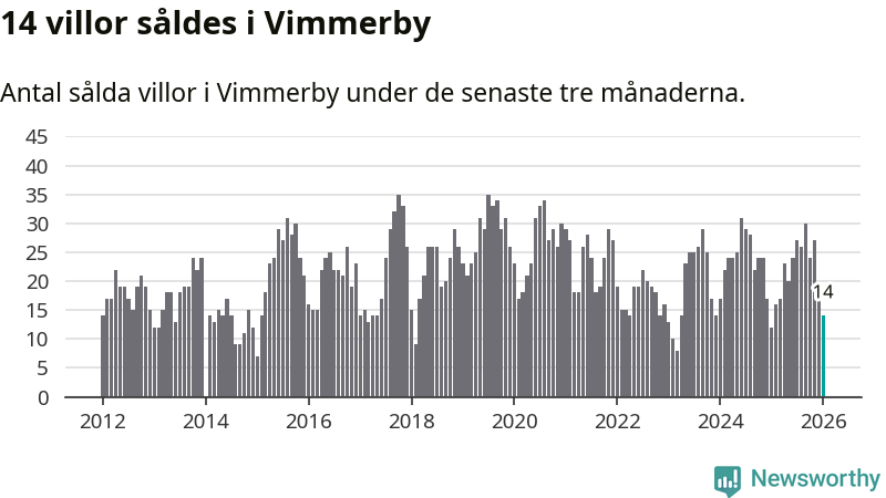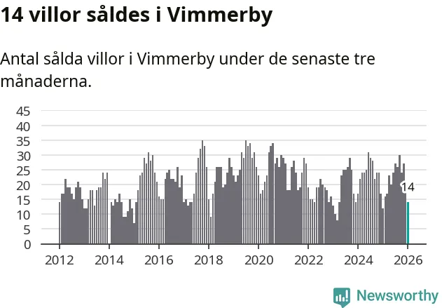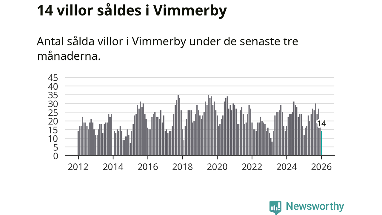 Mellan november och januari gjordes sammanlagt 14 affärer med villor i Vimmerby kommun. Det kan jämföras med tolv vid motsvarande tid i fjol.