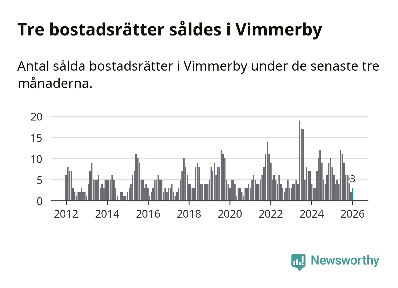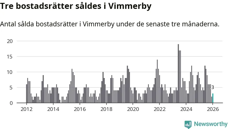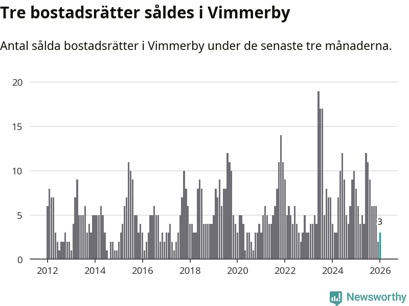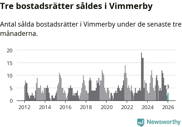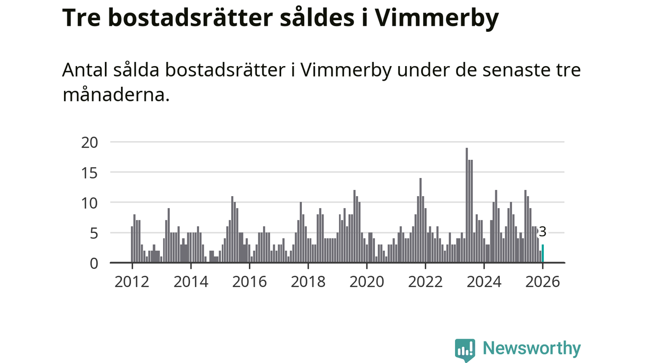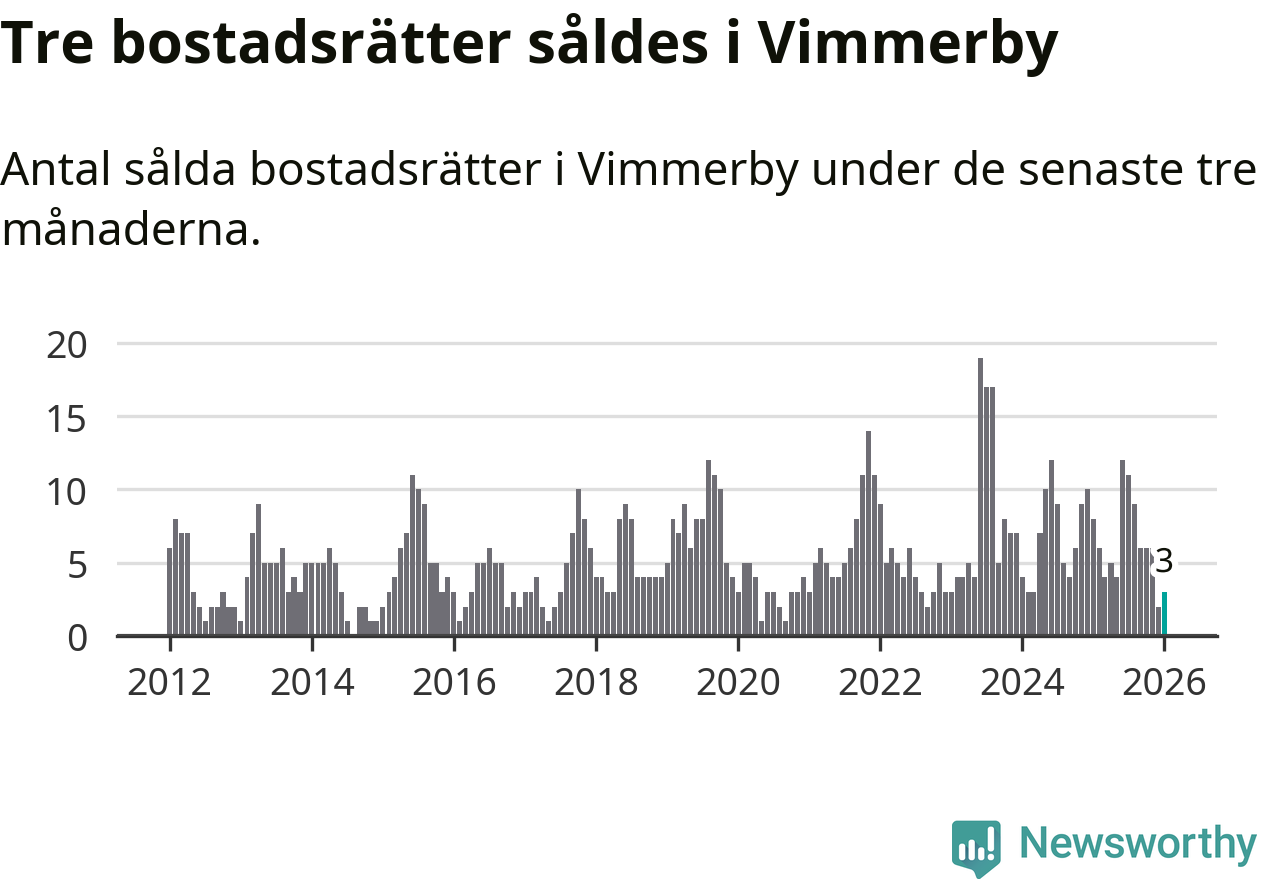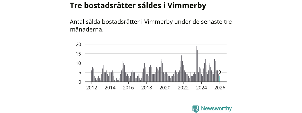 Mellan november och januari gjordes sammanlagt tre affärer med bostadsrätter i Vimmerby kommun. Det kan jämföras med åtta vid motsvarande tid i fjol.