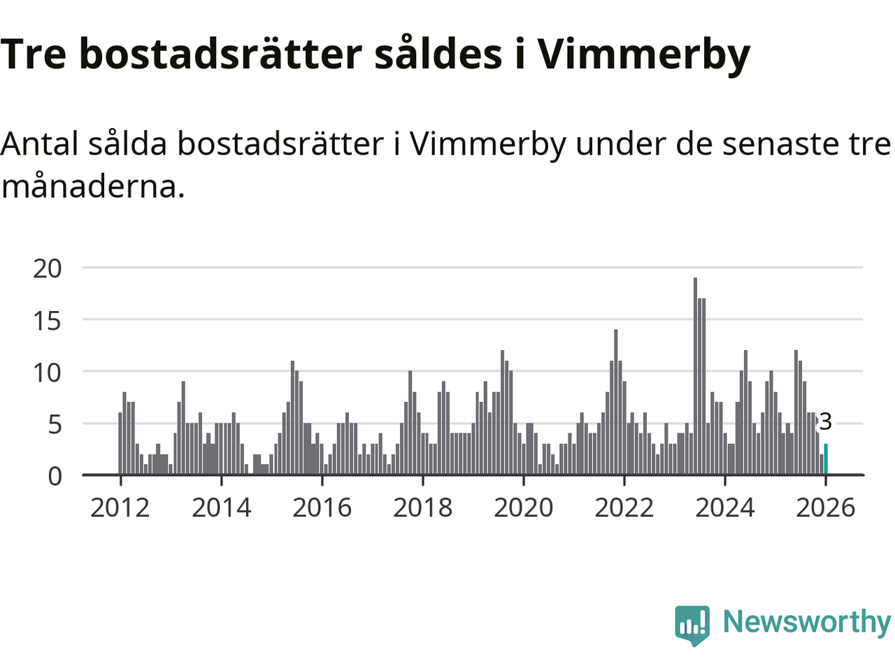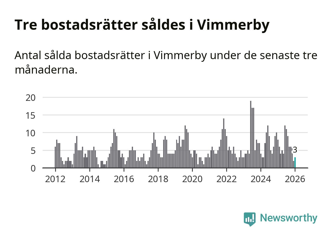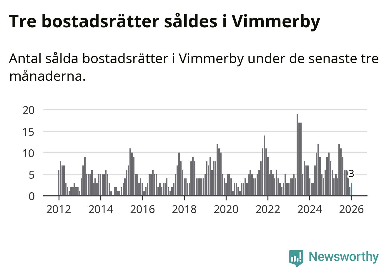 Graf: Antal sålda bostadsrätter i Vimmerby kommun