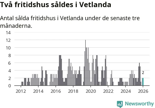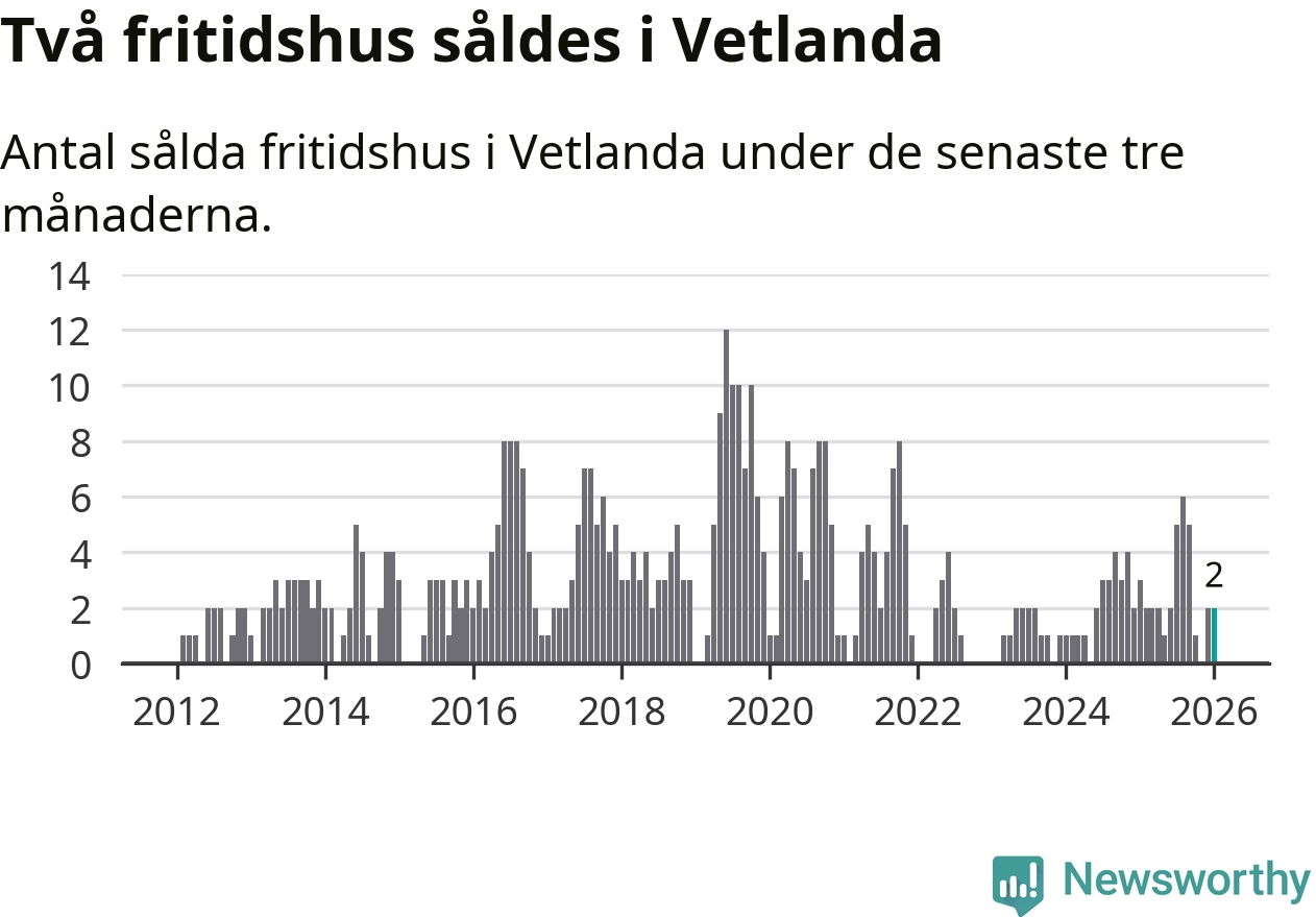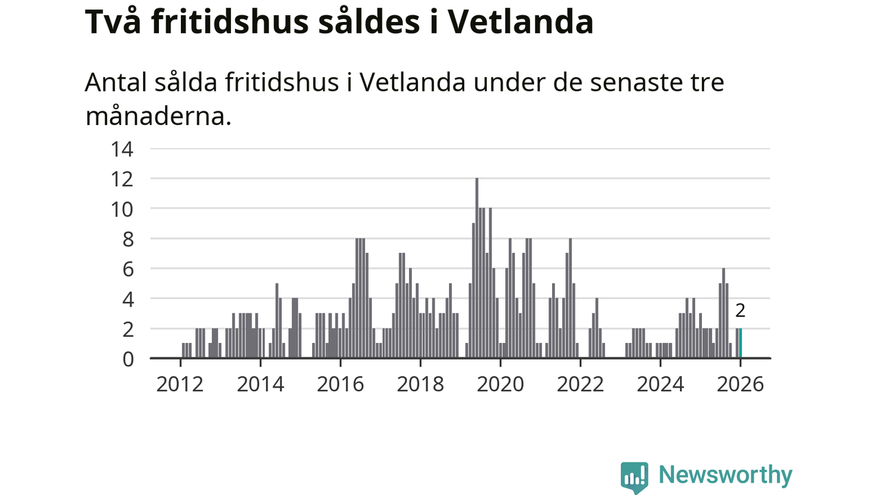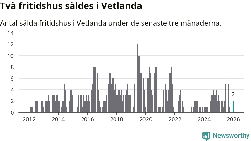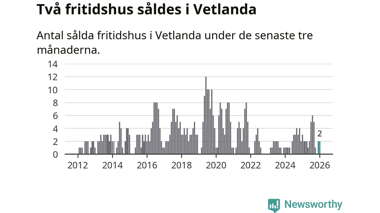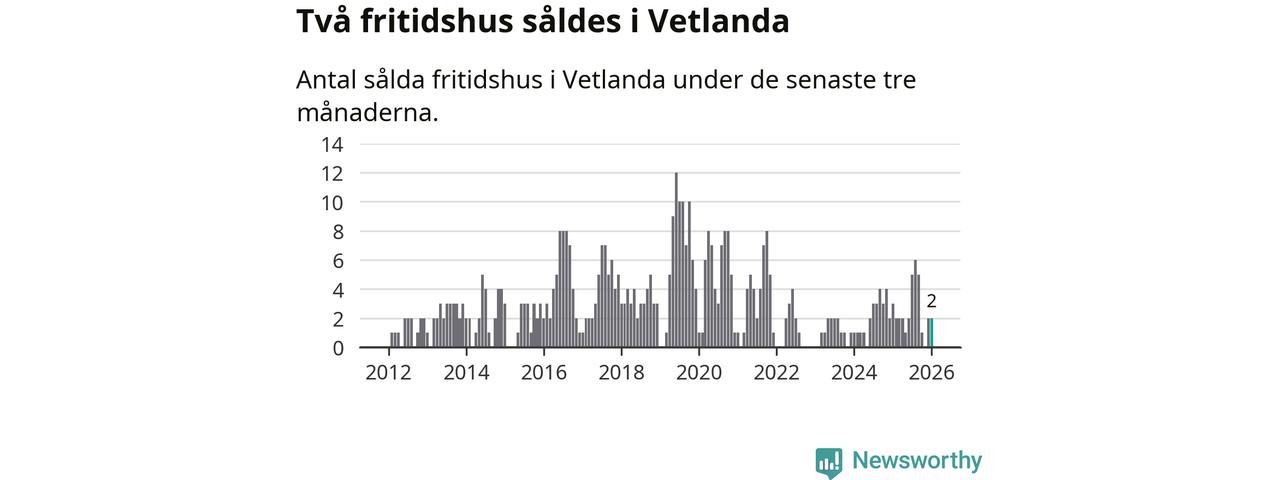 Mellan november och januari gjordes sammanlagt två affärer med fritidshus i Vetlanda kommun. Det kan jämföras med tre vid motsvarande tid i fjol.