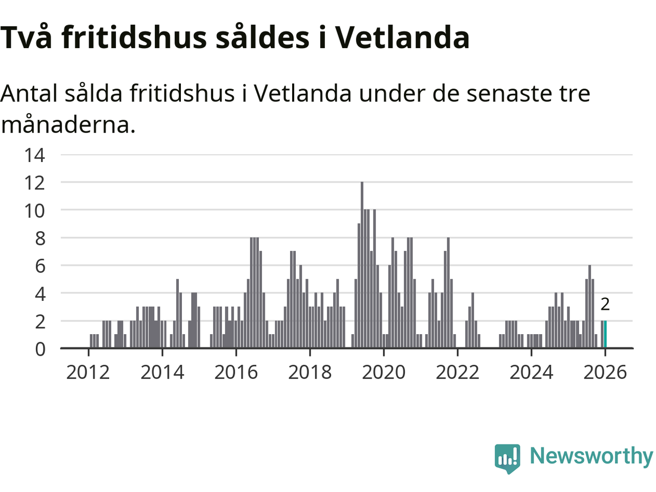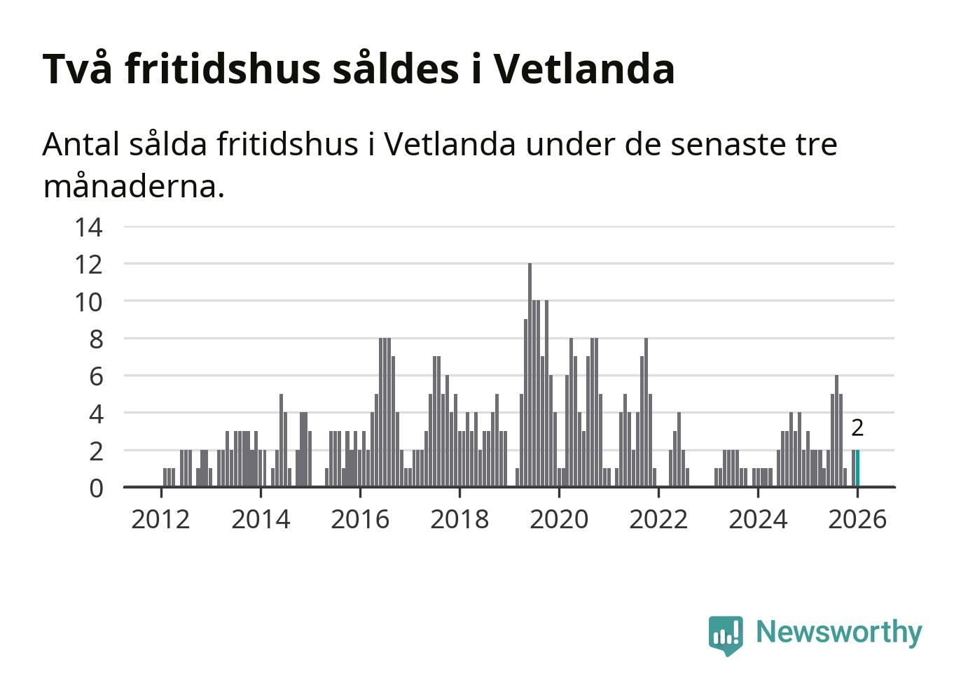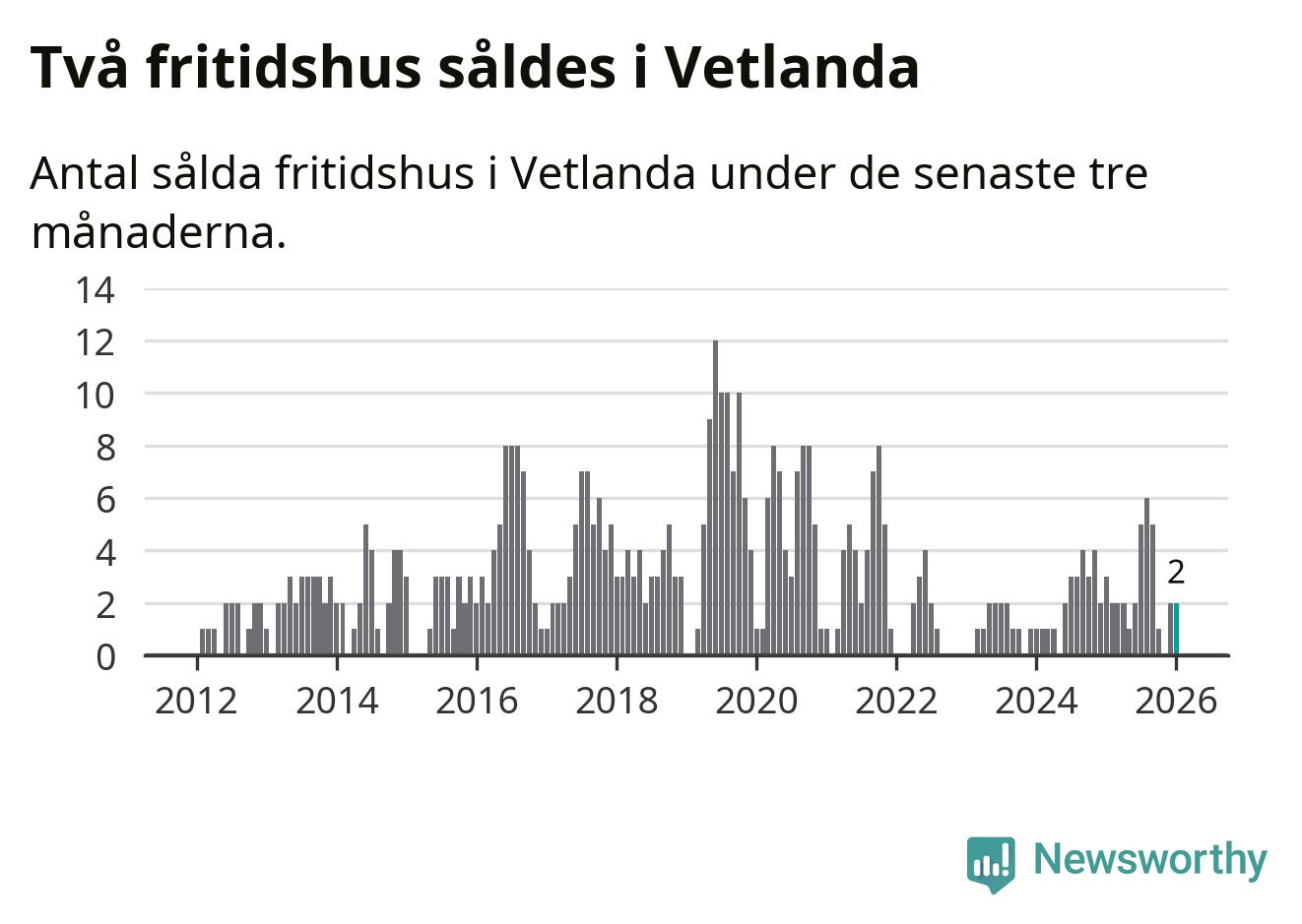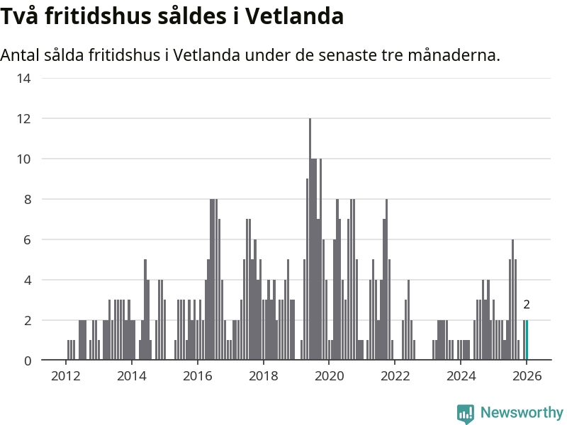Mellan november och januari gjordes sammanlagt två affärer med fritidshus i Vetlanda kommun. Det kan jämföras med tre vid motsvarande tid i fjol.