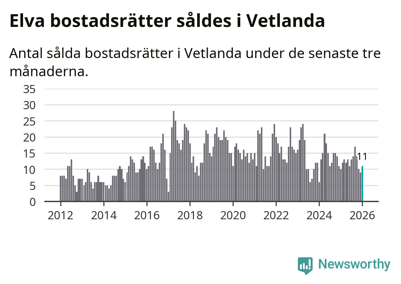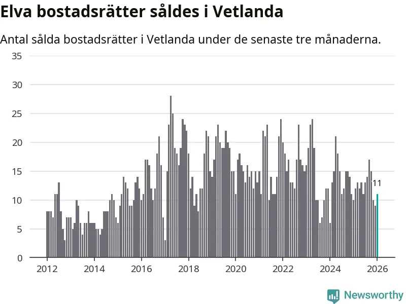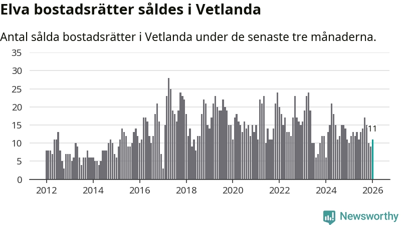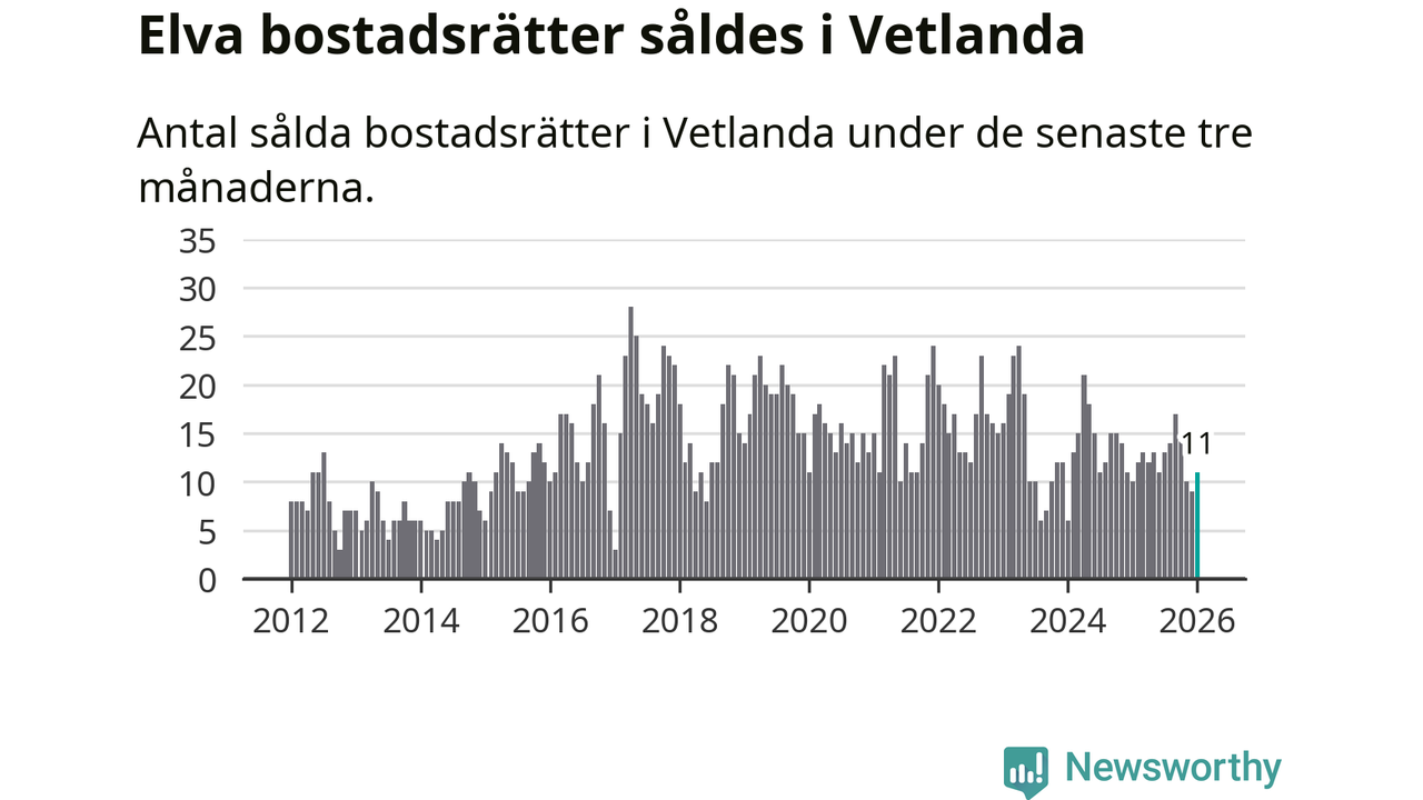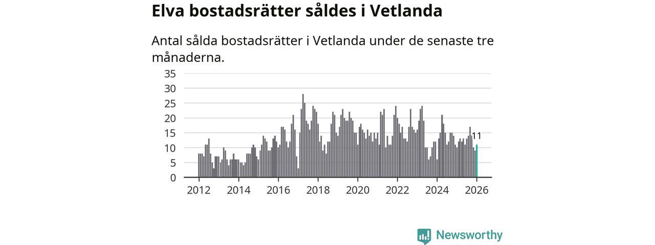 Mellan november och januari gjordes sammanlagt elva affärer med bostadsrätter i Vetlanda kommun. Det kan jämföras med tio vid motsvarande tid i fjol.