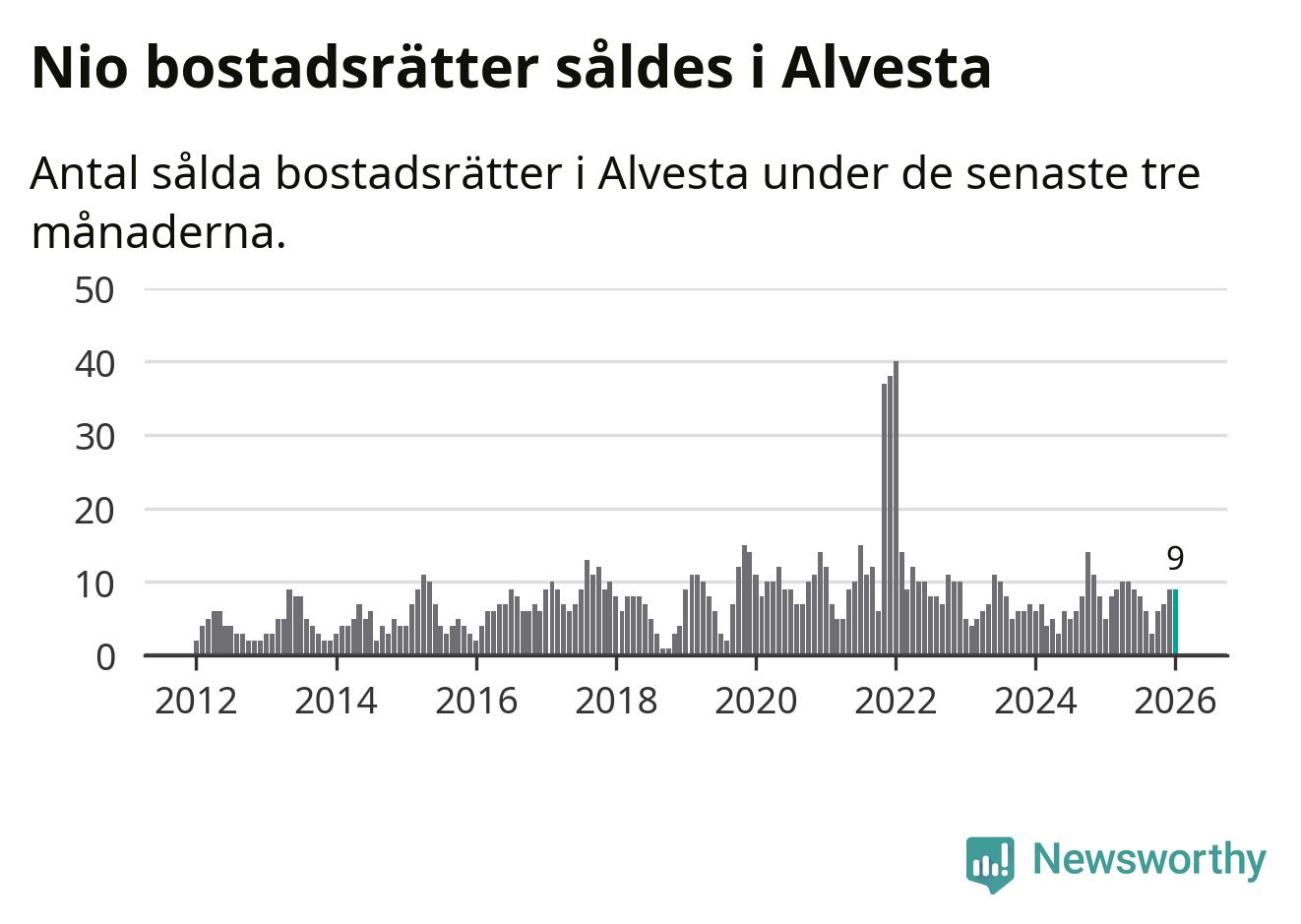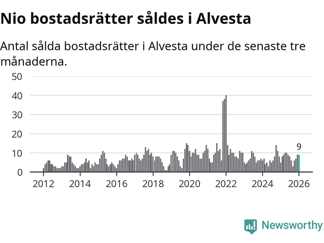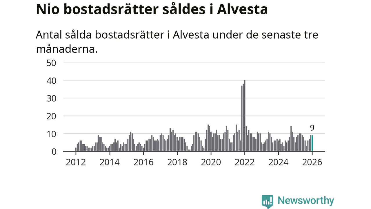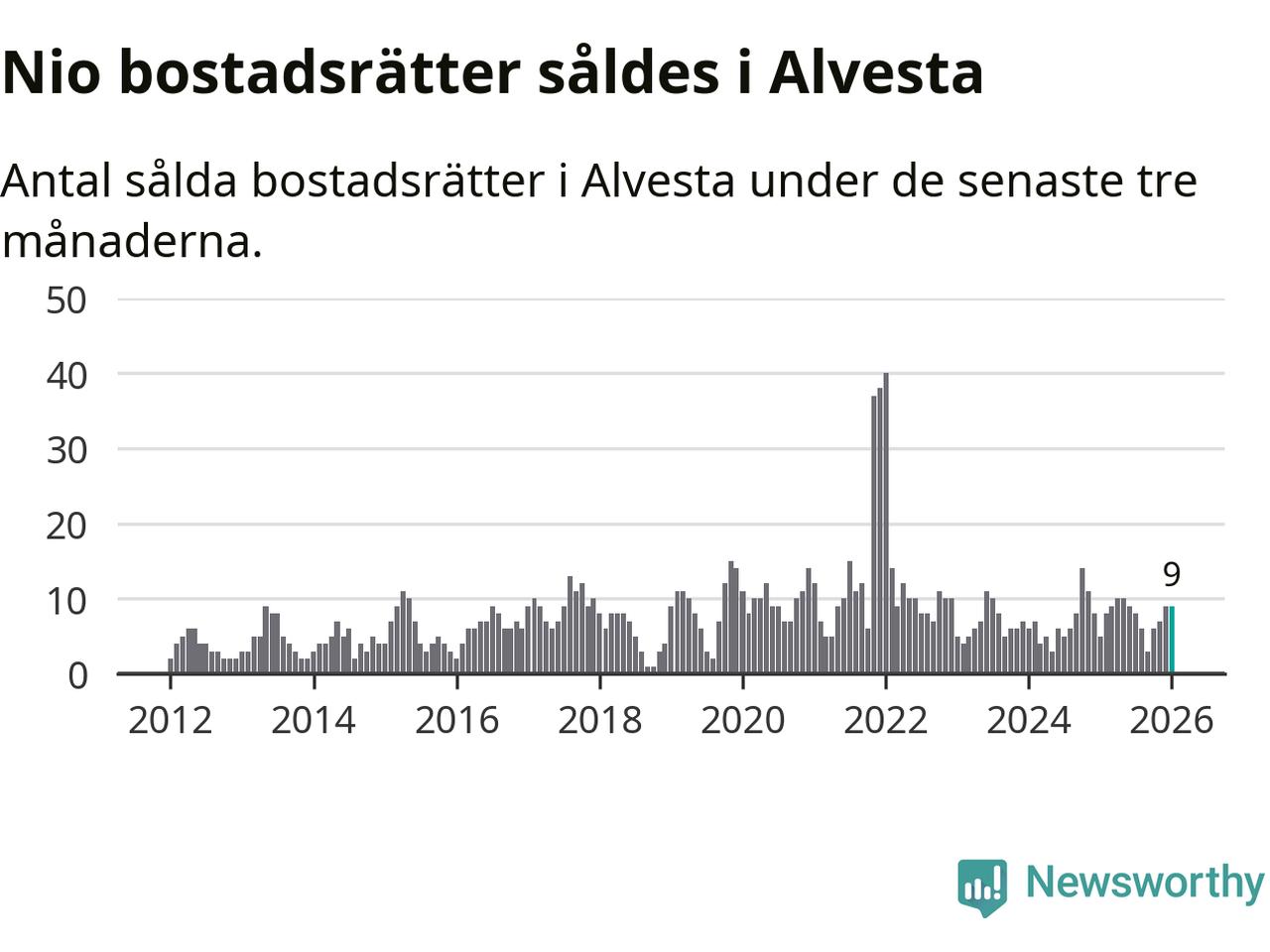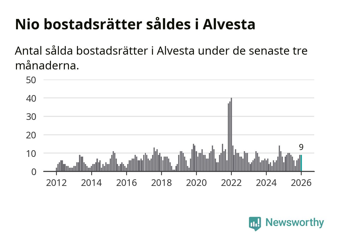 Mellan november och januari gjordes sammanlagt nio affärer med bostadsrätter i Alvesta kommun. Det kan jämföras med fem vid motsvarande tid i fjol.