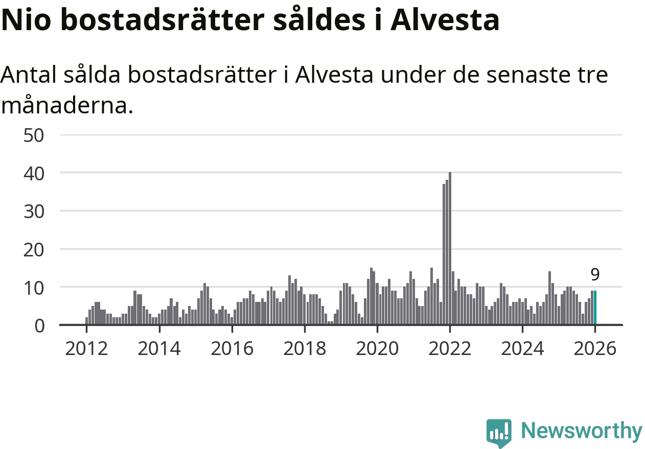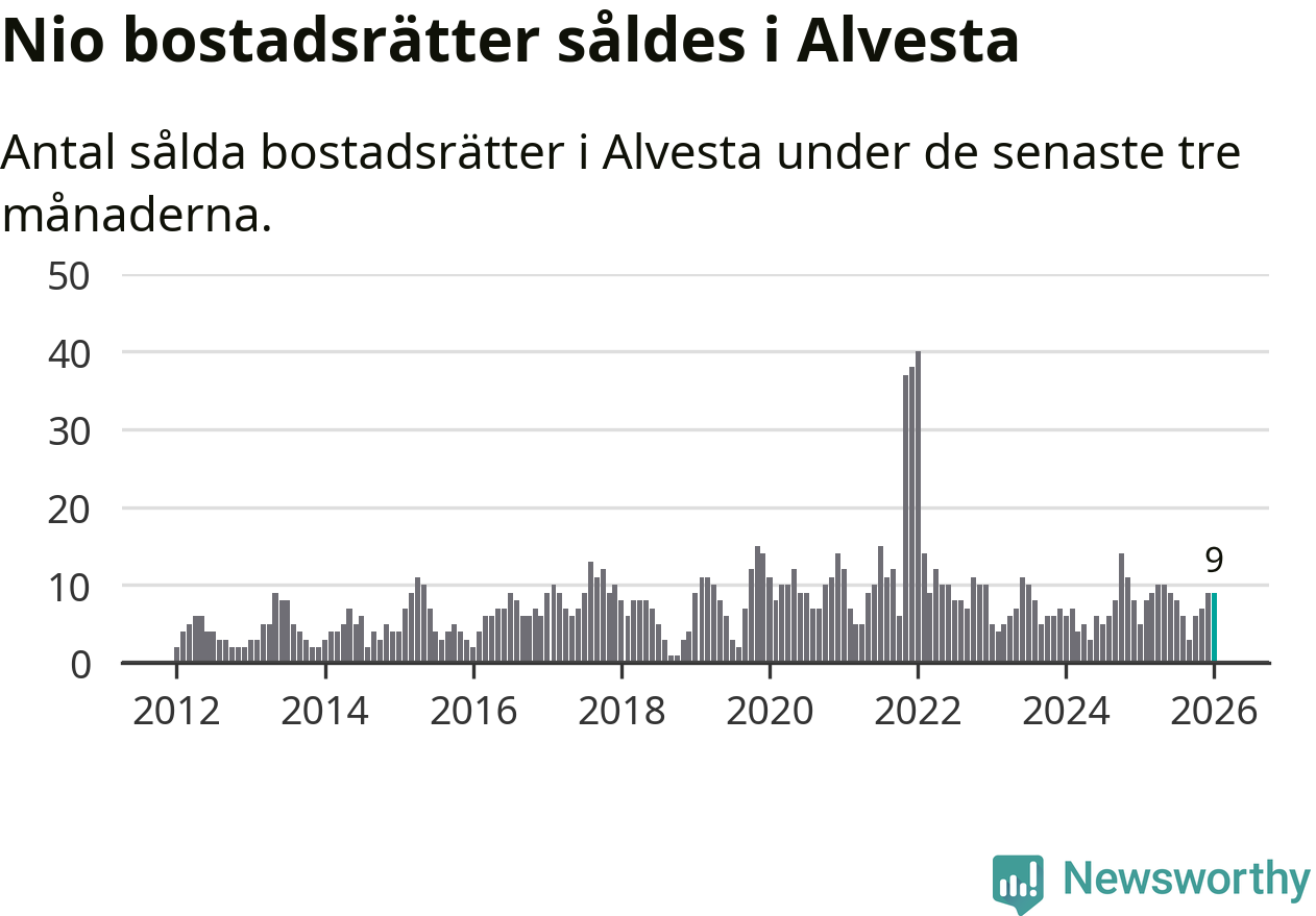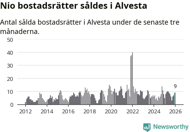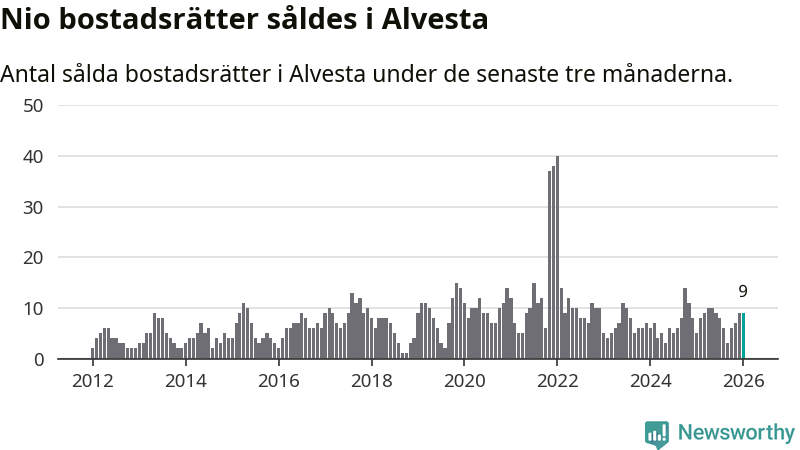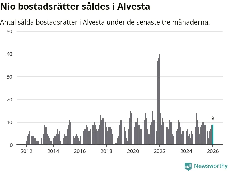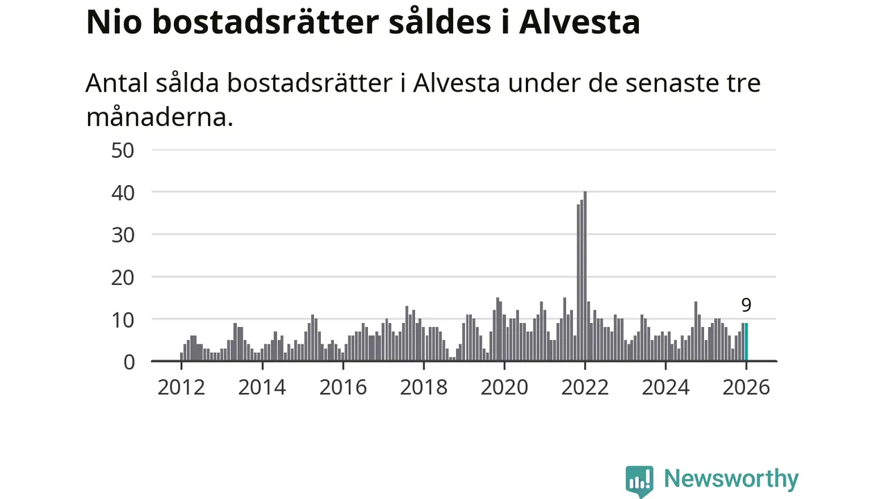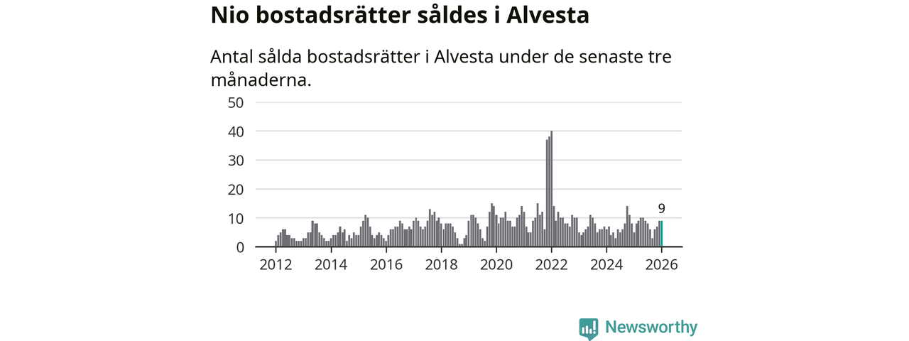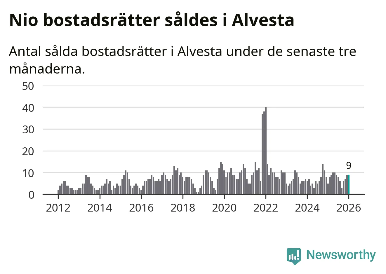 Mellan november och januari gjordes sammanlagt nio affärer med bostadsrätter i Alvesta kommun. Det kan jämföras med fem vid motsvarande tid i fjol.