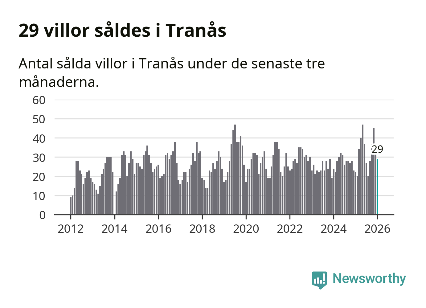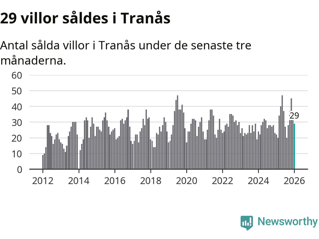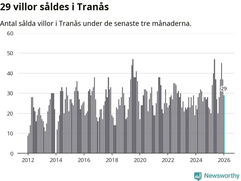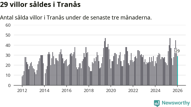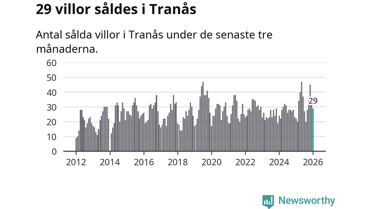Mellan november och januari gjordes sammanlagt 29 affärer med villor i Tranås kommun. Det kan jämföras med 22 vid motsvarande tid i fjol.