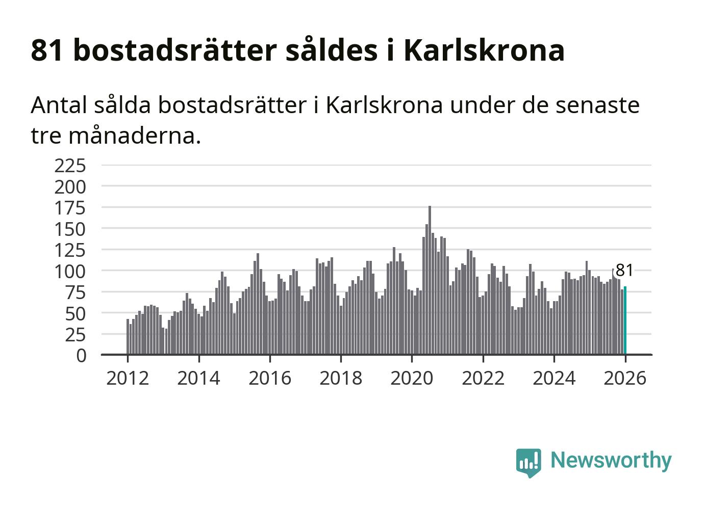 Graf: Antal sålda bostadsrätter i Karlskrona kommun