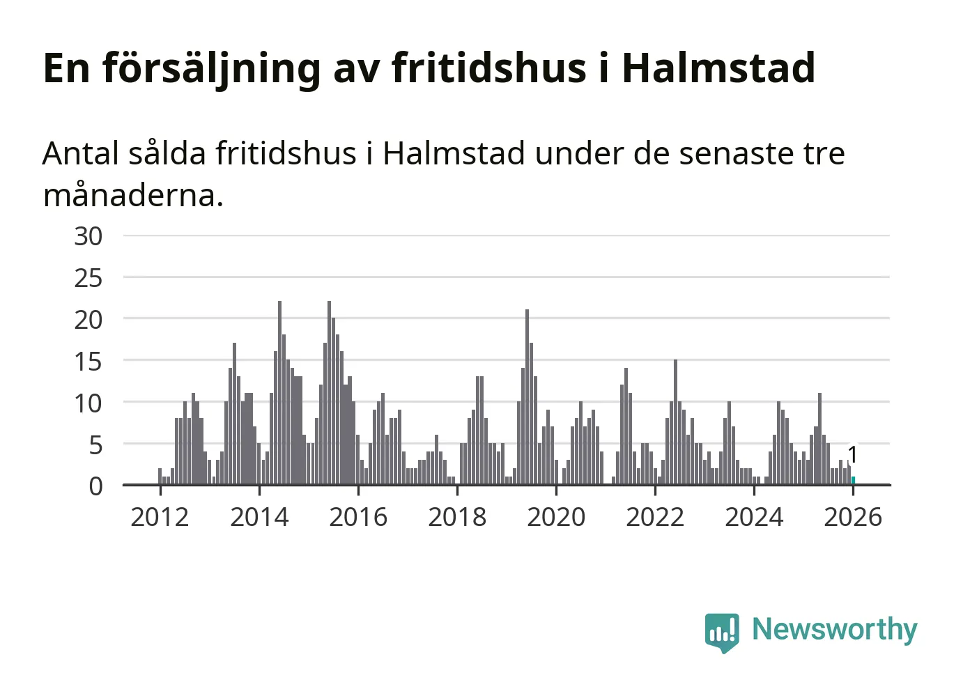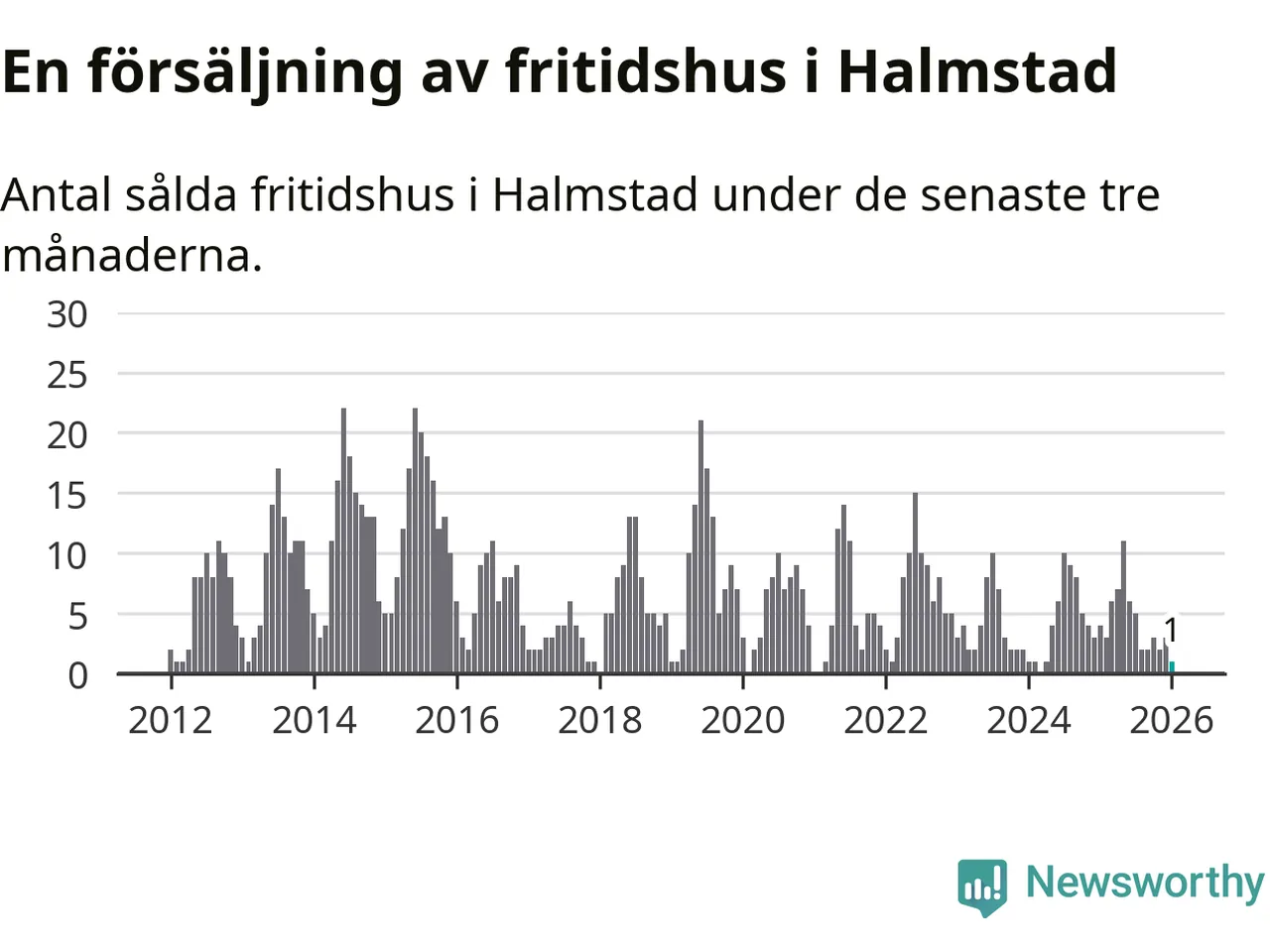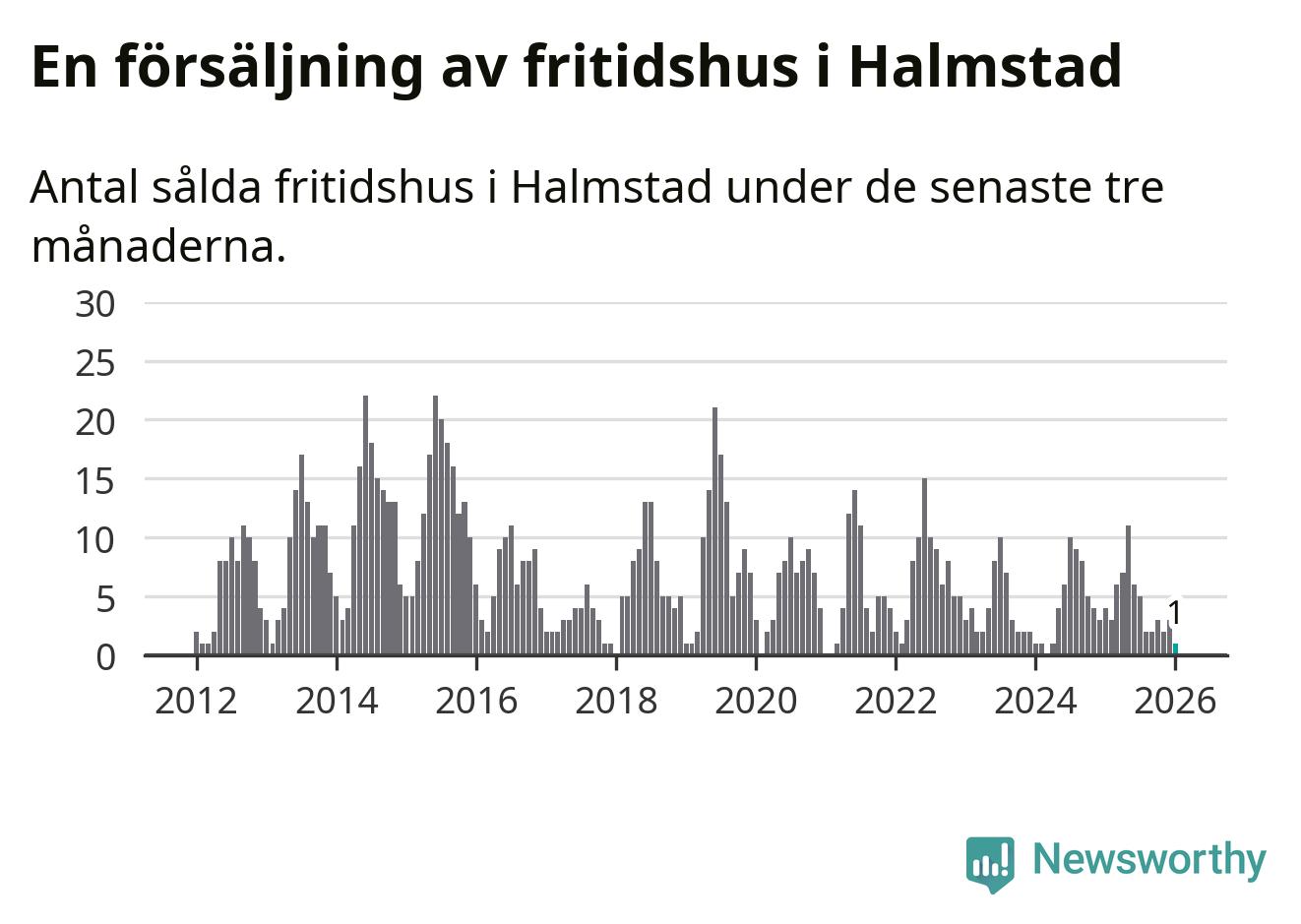 Mellan november och januari gjordes sammanlagt en affär med fritidshus i Halmstads kommun. Det kan jämföras med fyra vid motsvarande tid i fjol.