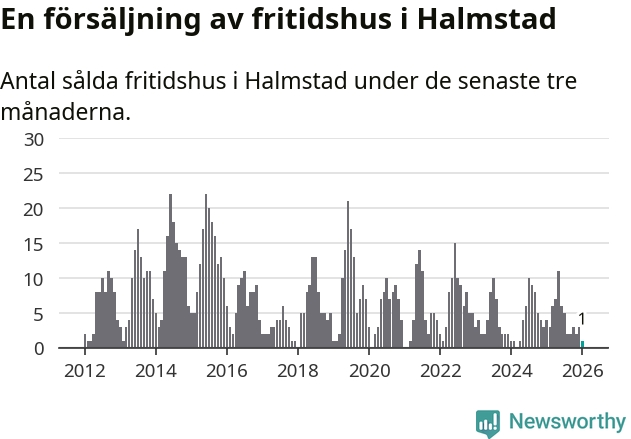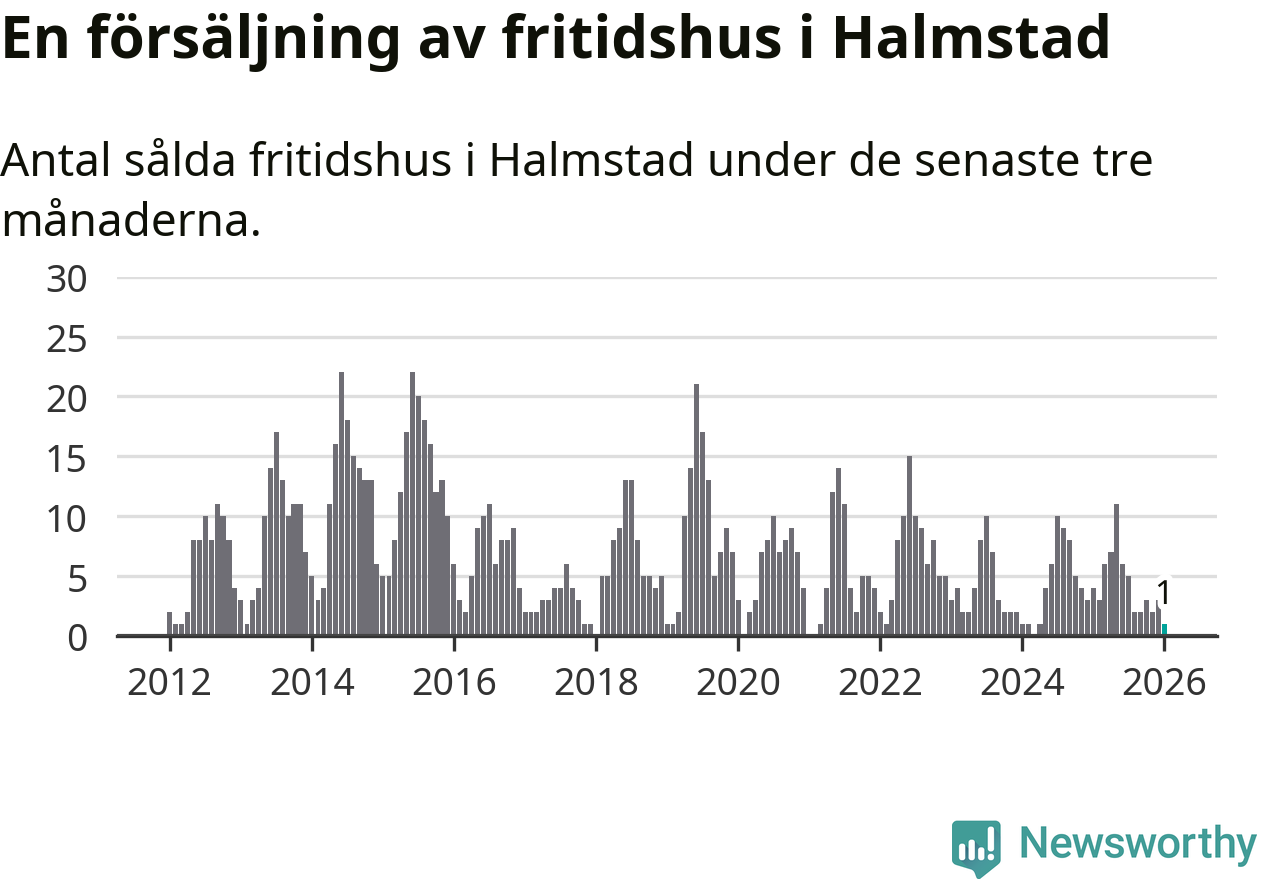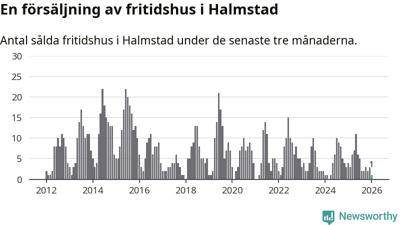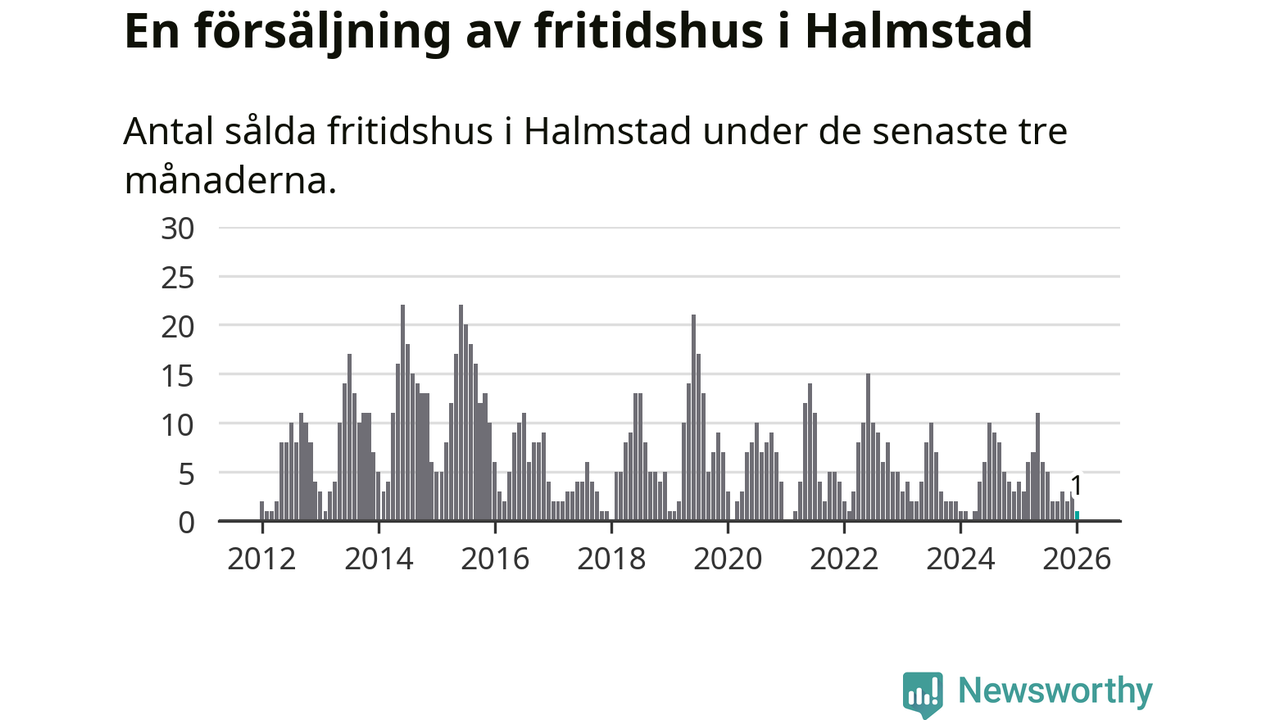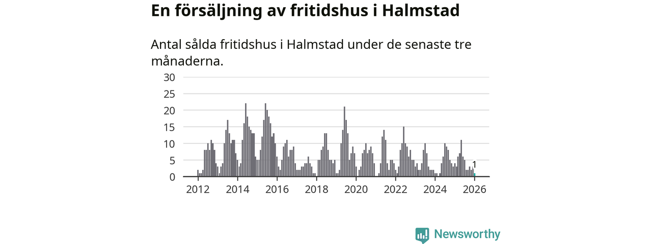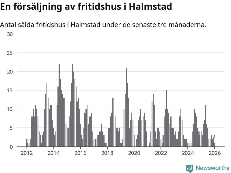 Mellan november och januari gjordes sammanlagt en affär med fritidshus i Halmstads kommun. Det kan jämföras med fyra vid motsvarande tid i fjol.