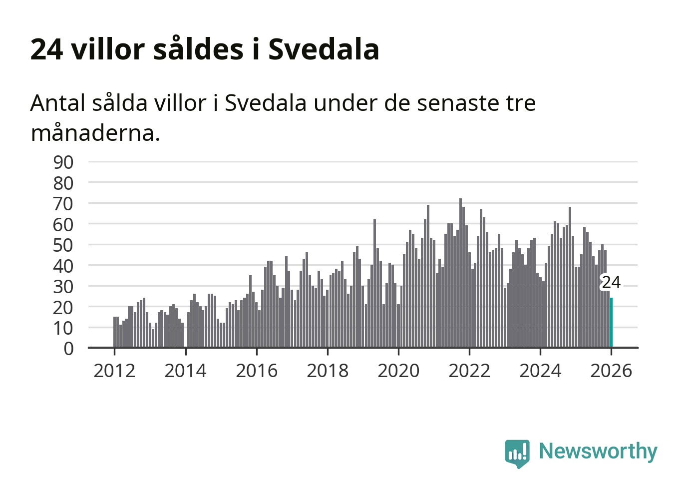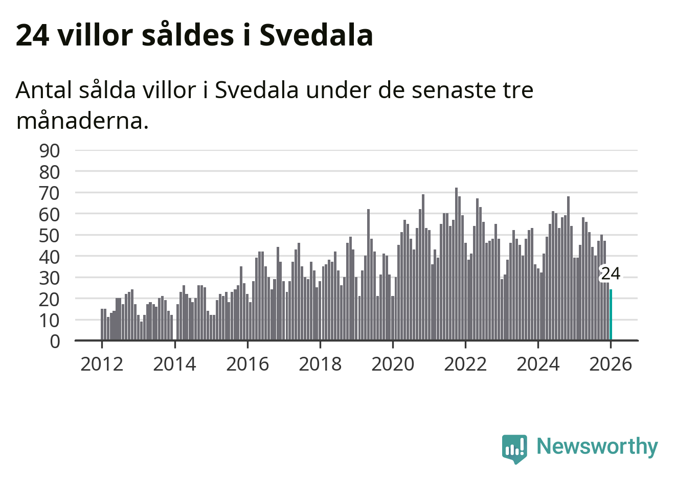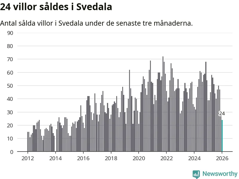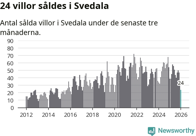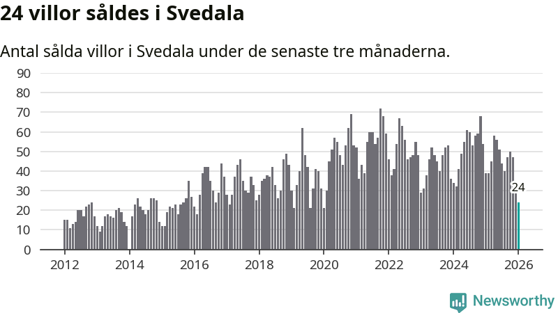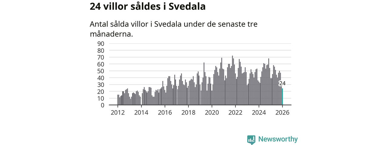 Mellan november och januari såldes 24 villor i Svedala kommun. Det är färre än någon tremånadersperiod sedan 2020.