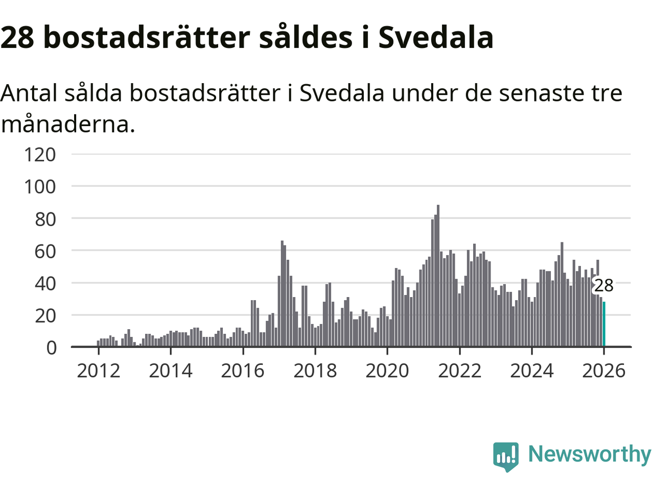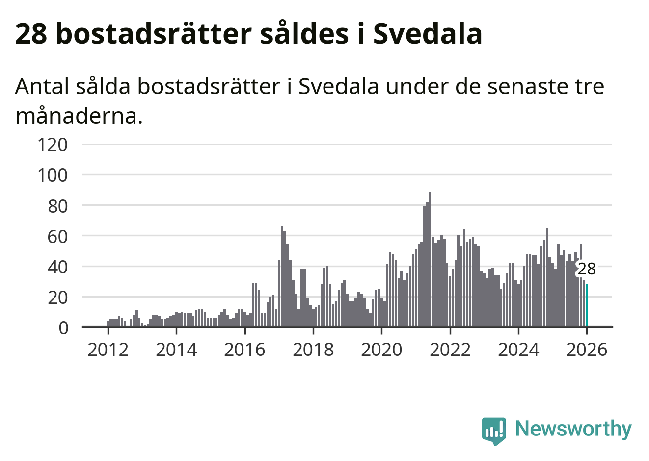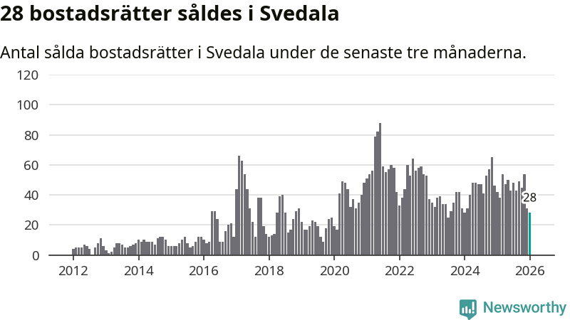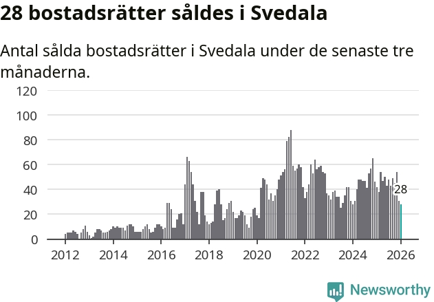 Graf: Antal sålda bostadsrätter i Svedala kommun