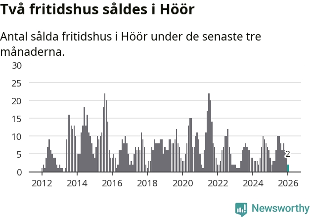 Mellan november och januari gjordes sammanlagt två affärer med fritidshus i Höörs kommun. Det kan jämföras med fyra vid motsvarande tid i fjol.