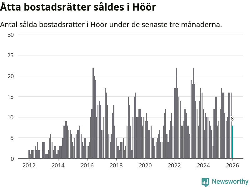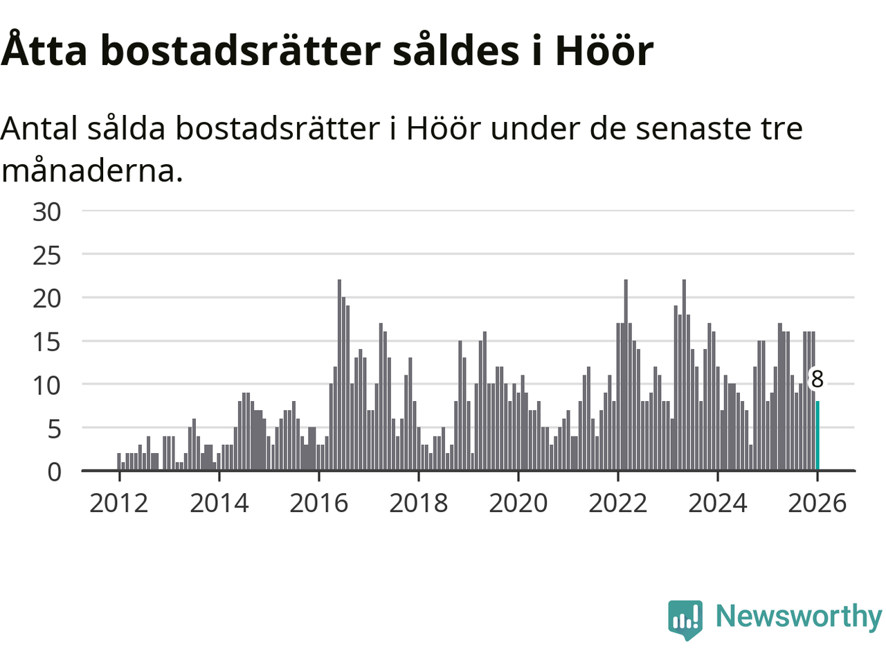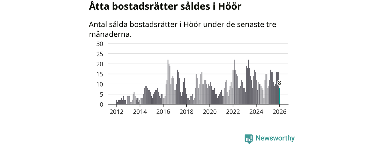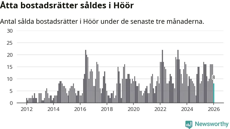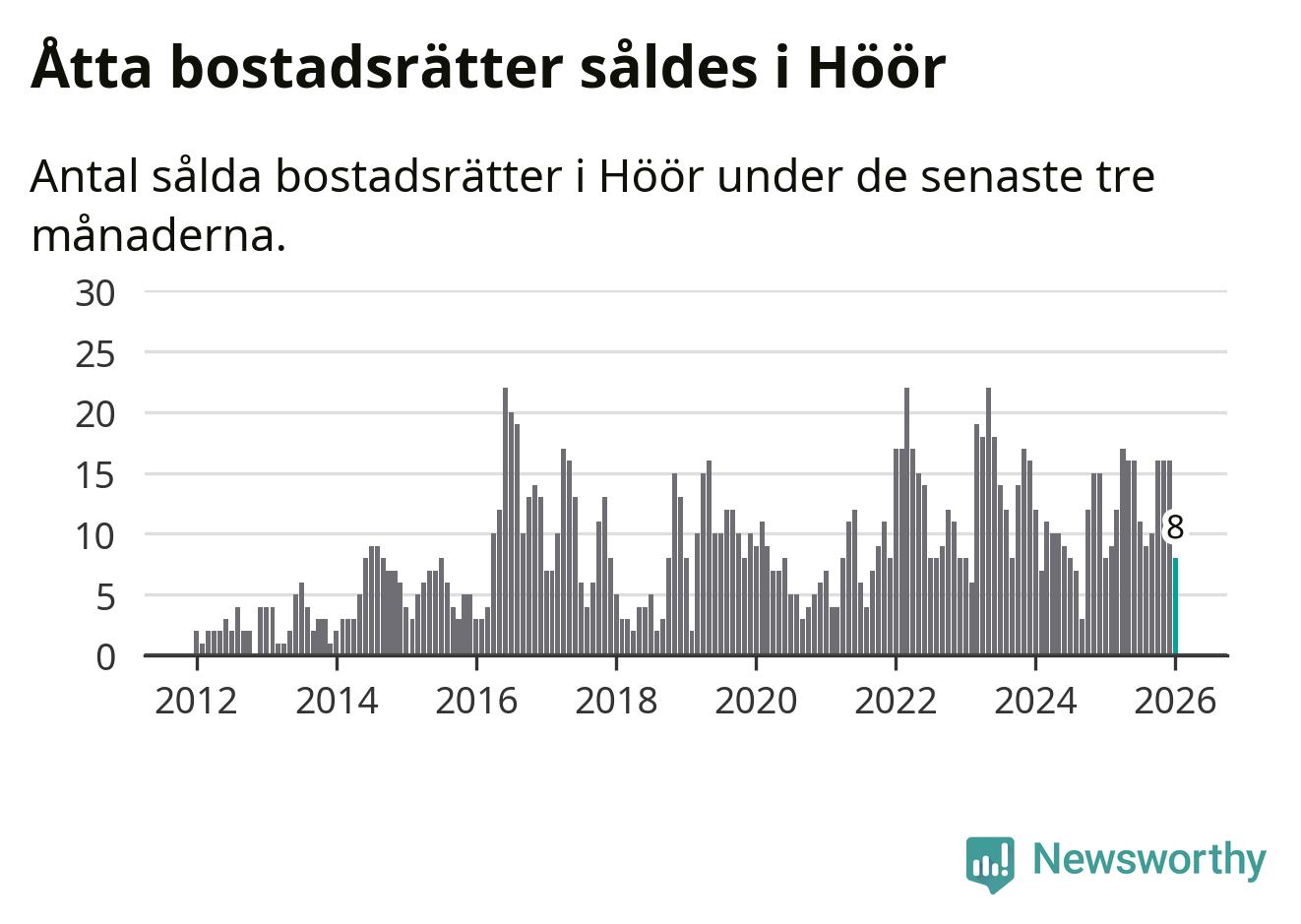Mellan november och januari gjordes sammanlagt åtta affärer med bostadsrätter i Höörs kommun. Det är lika många affärer som vid motsvarande tid i fjol.