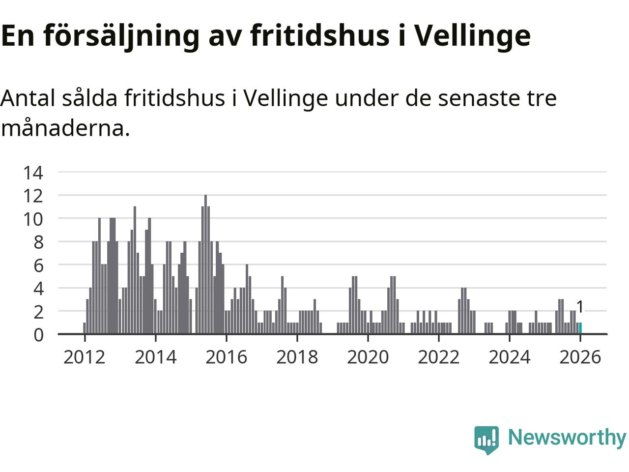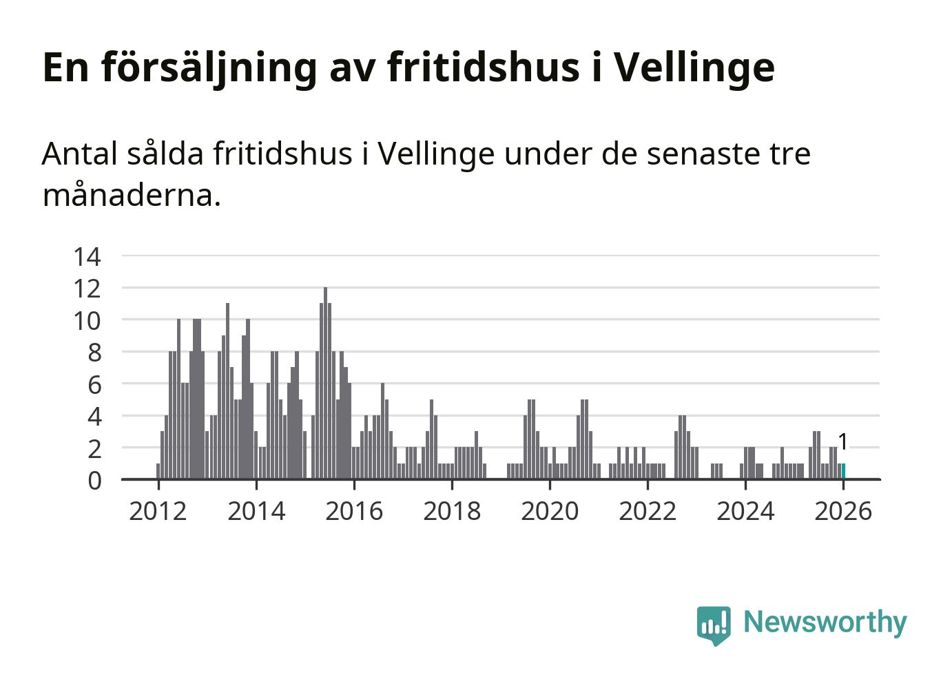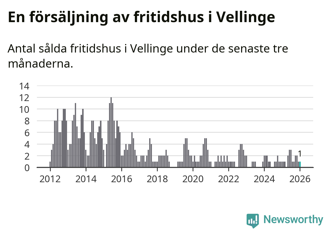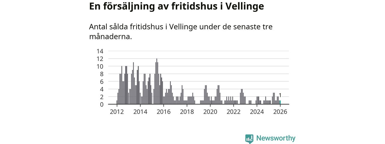Mellan november och januari gjordes sammanlagt en affär med fritidshus i Vellinge kommun. Det är lika många affärer som vid motsvarande tid i fjol.