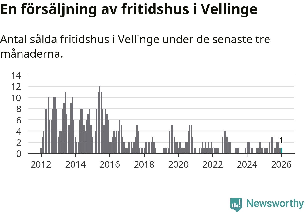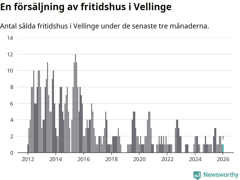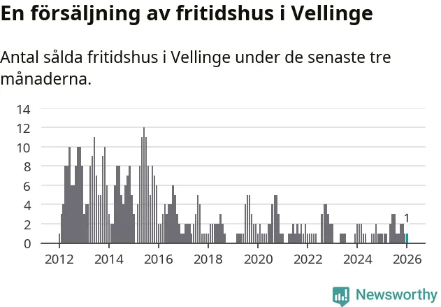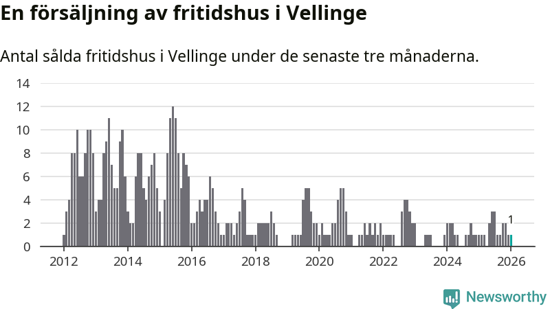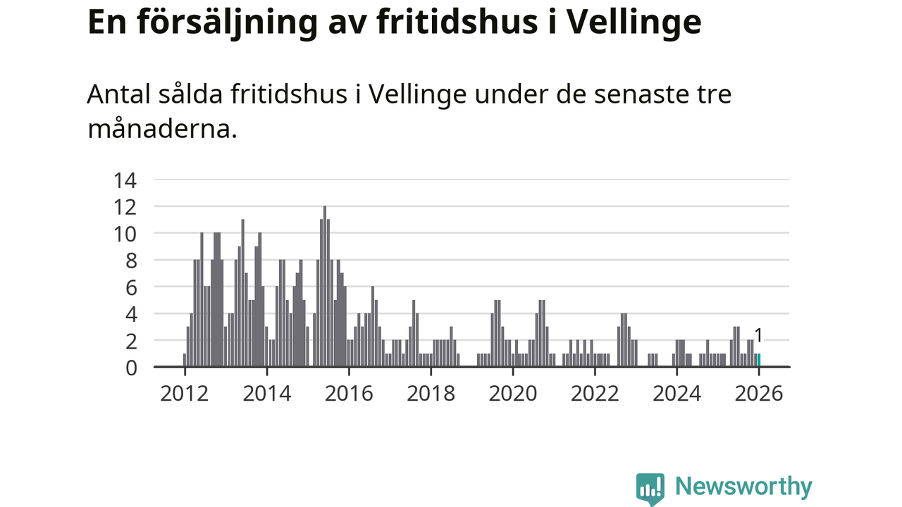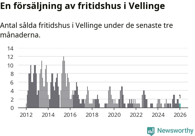 Mellan november och januari gjordes sammanlagt en affär med fritidshus i Vellinge kommun. Det är lika många affärer som vid motsvarande tid i fjol.