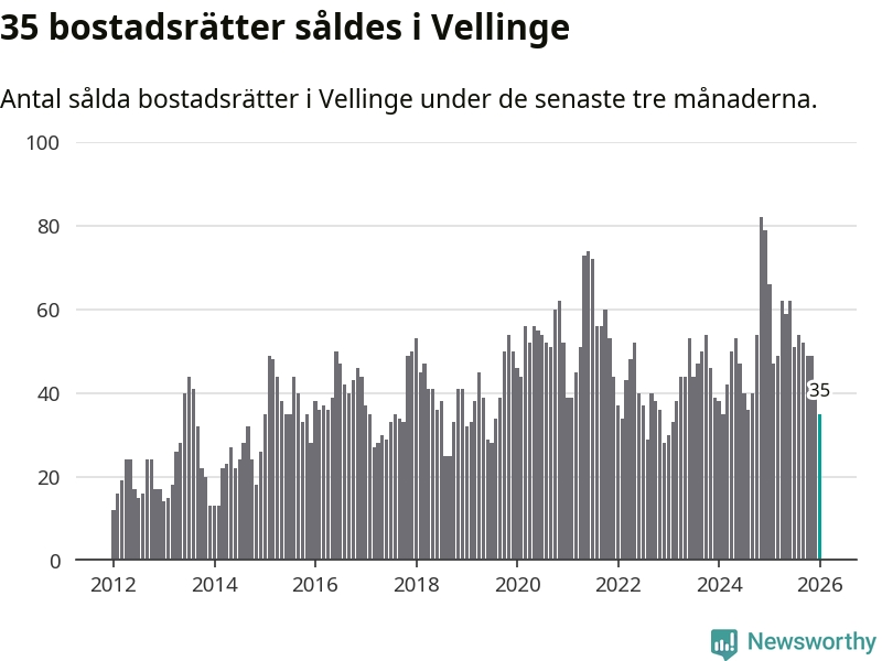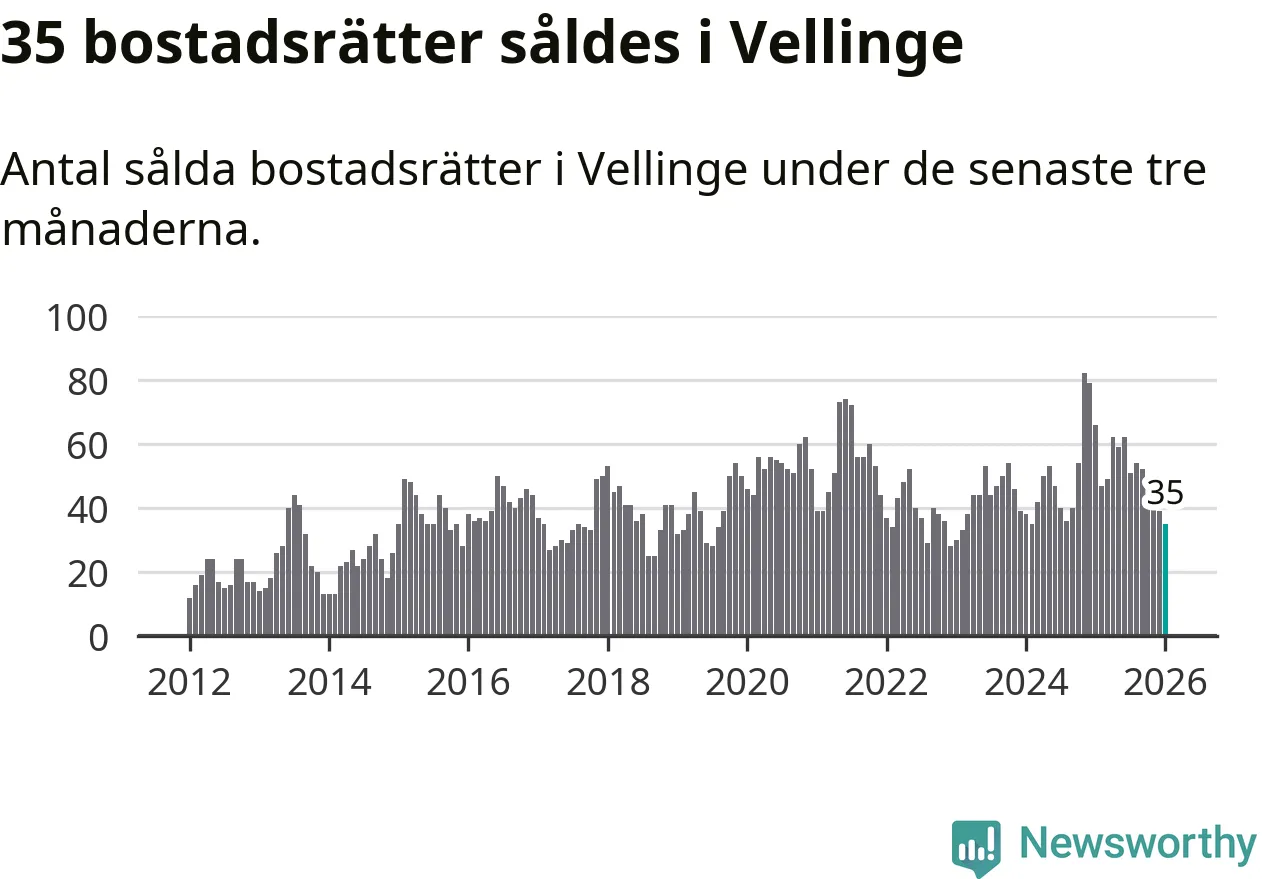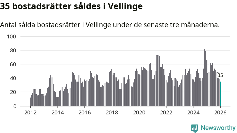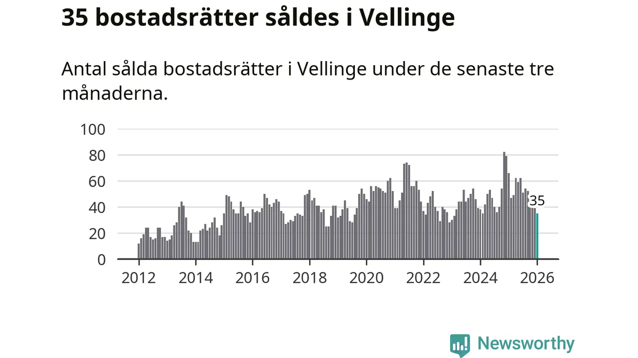 Graf: Antal sålda bostadsrätter i Vellinge kommun