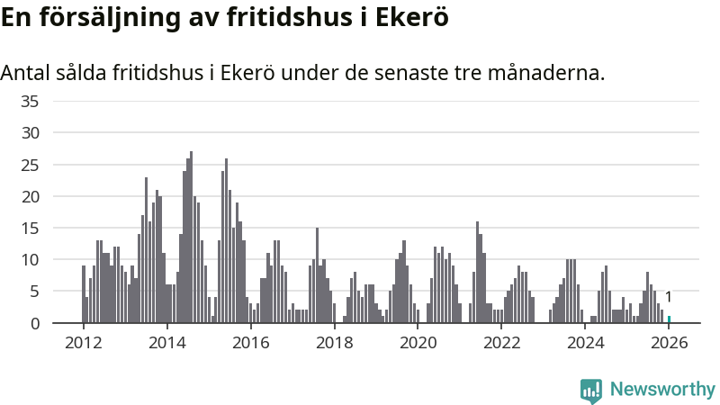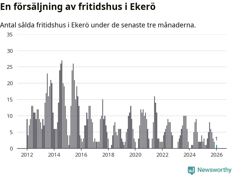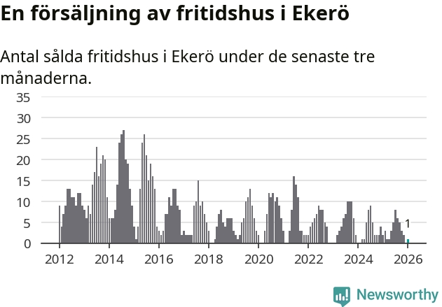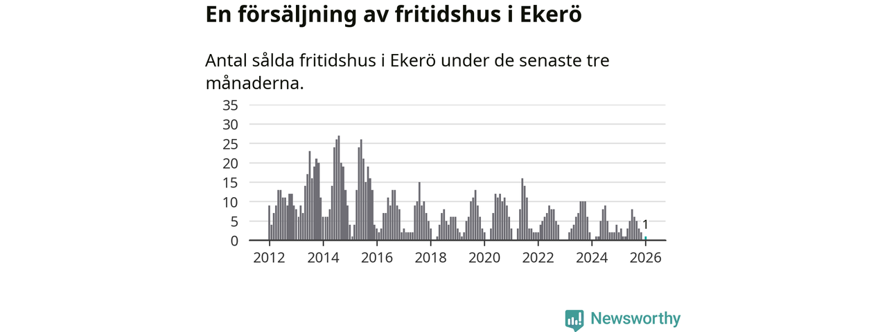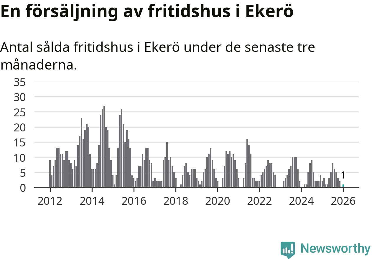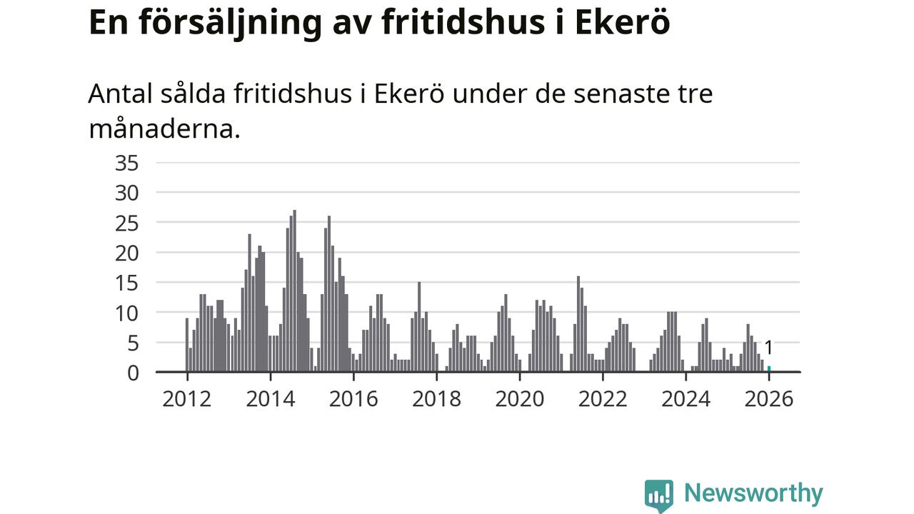 Mellan november och januari gjordes sammanlagt en affär med fritidshus i Ekerö kommun. Det kan jämföras med två vid motsvarande tid i fjol.