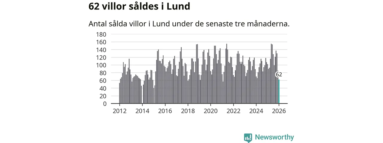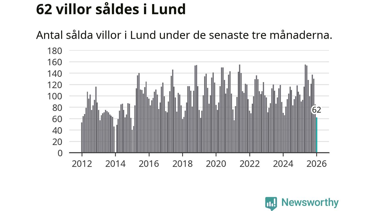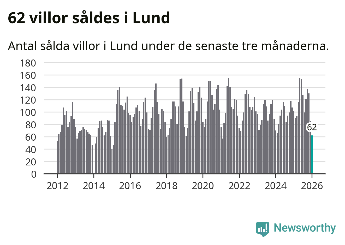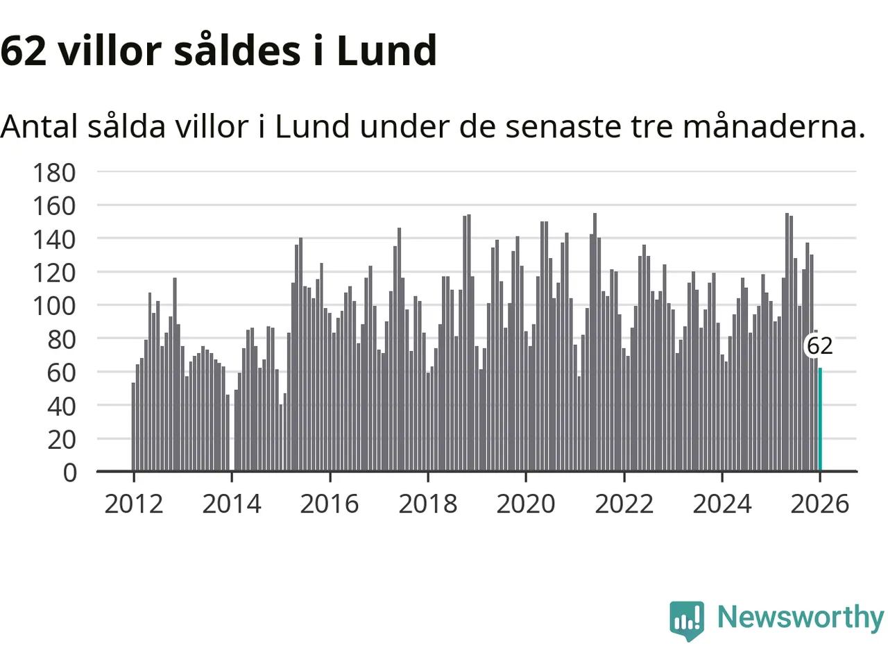 Mellan november och januari såldes 62 villor i Lunds kommun. Det är färre än någon tremånadersperiod sedan 2021.