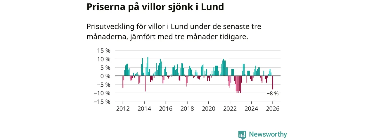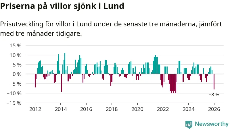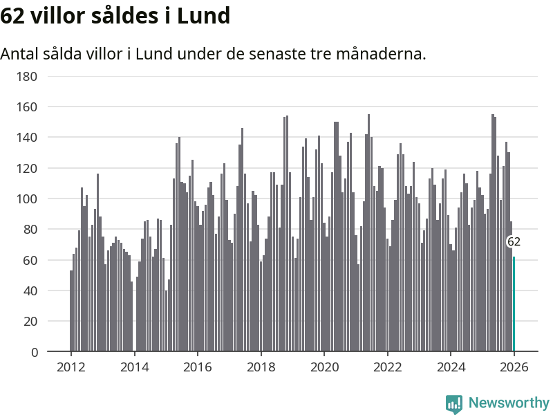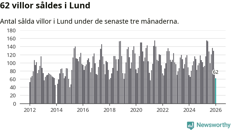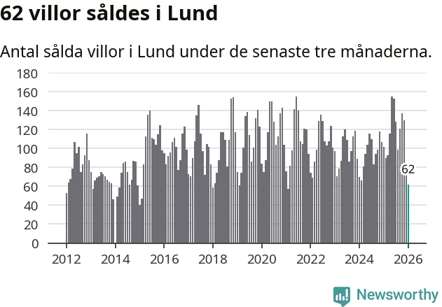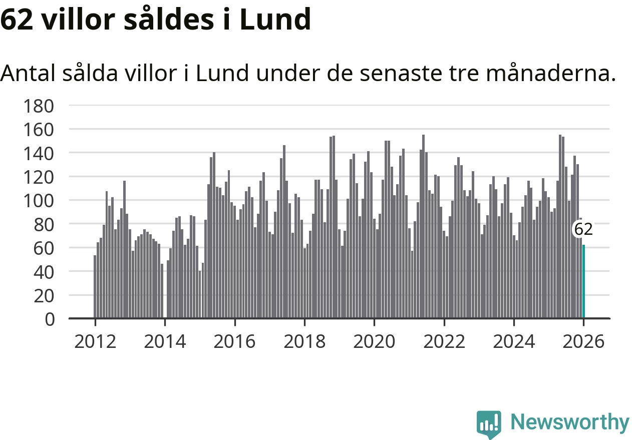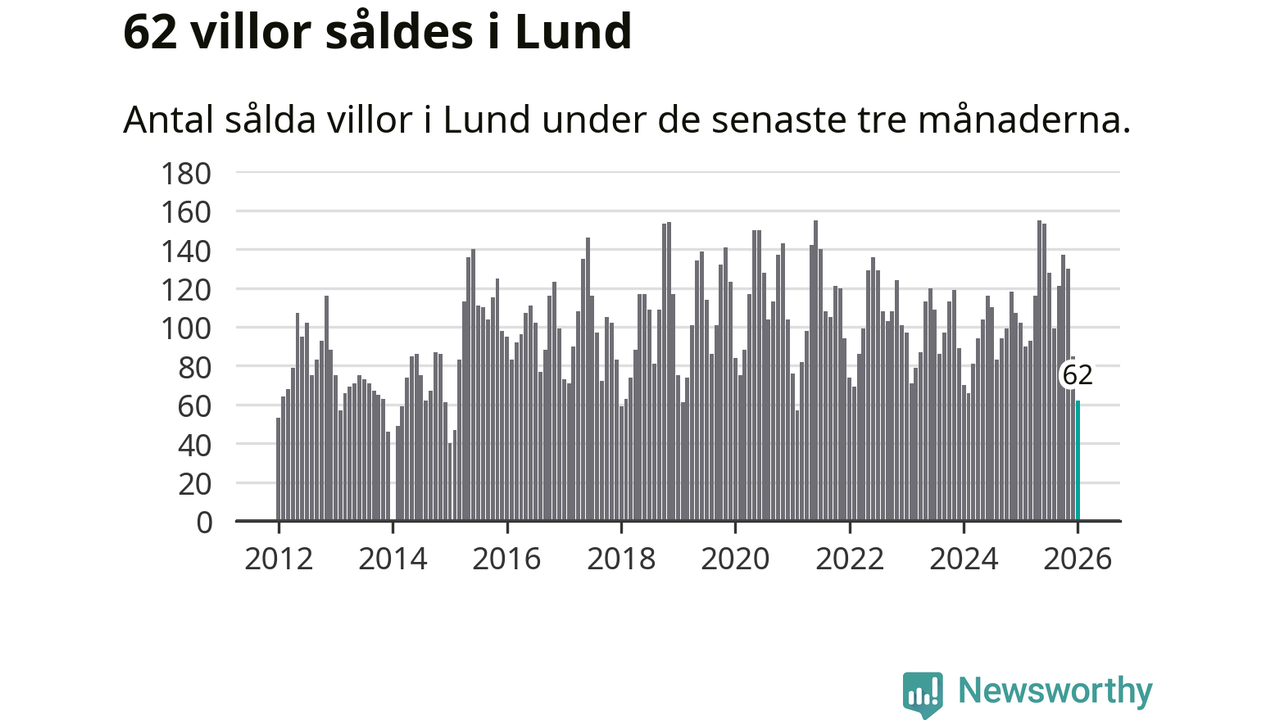 Mellan november och januari såldes 62 villor i Lunds kommun. Det är färre än någon tremånadersperiod sedan 2021.