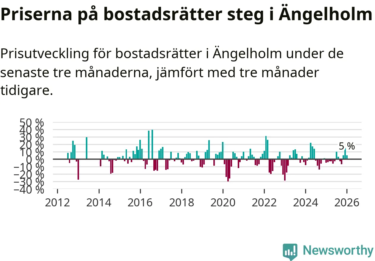 | Ängelholm | +5 % ▲ | 62 | 2,3 miljoner |