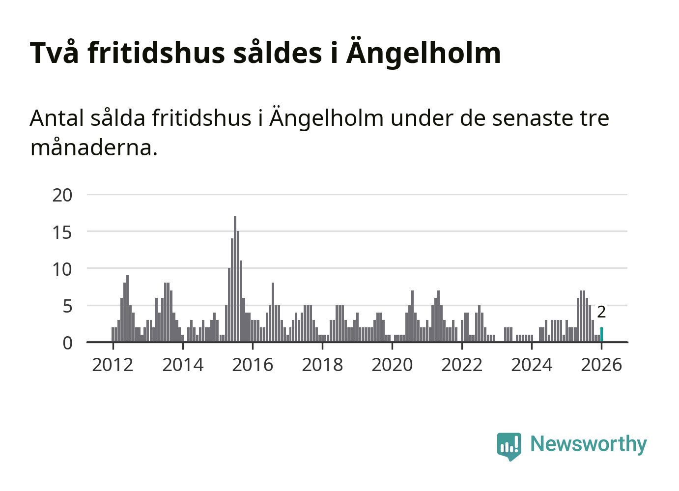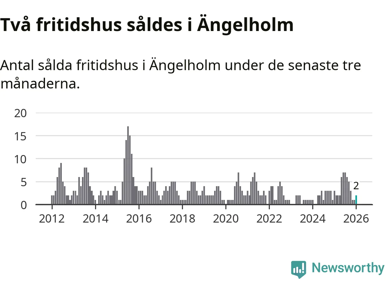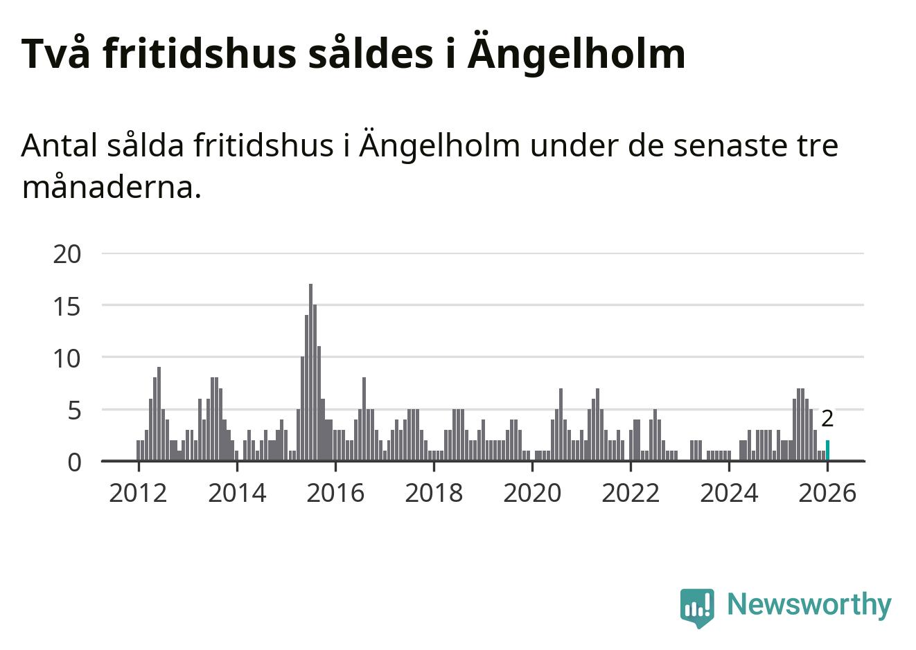 Mellan november och januari gjordes sammanlagt två affärer med fritidshus i Ängelholms kommun. Det kan jämföras med tre vid motsvarande tid i fjol.