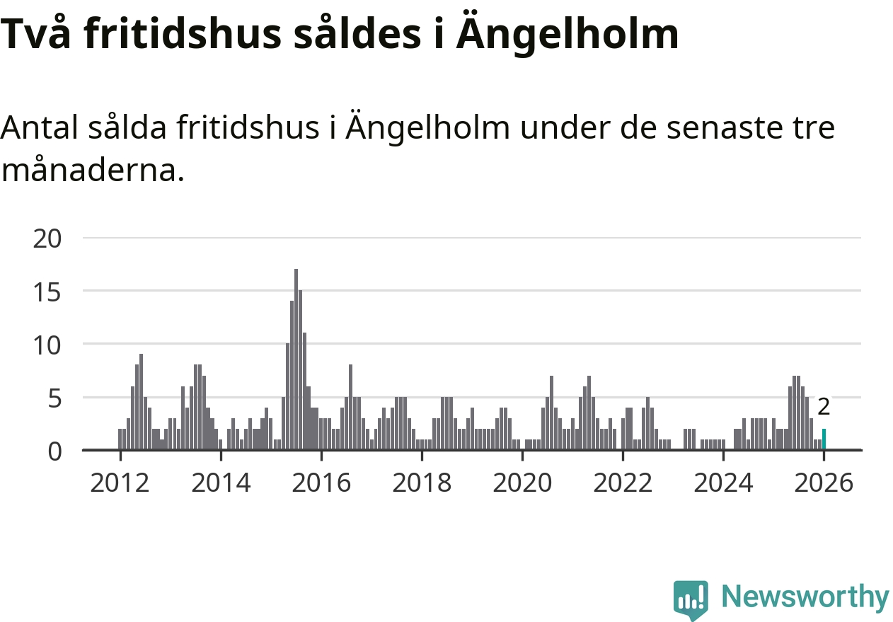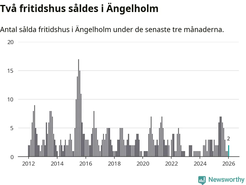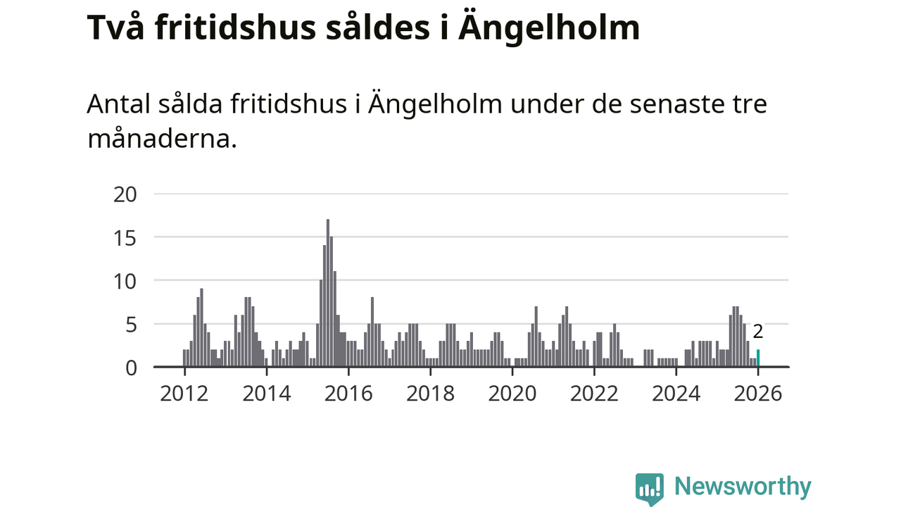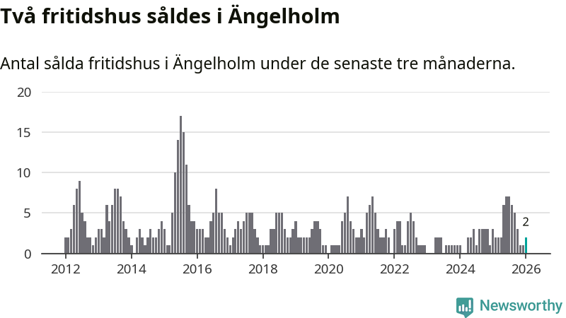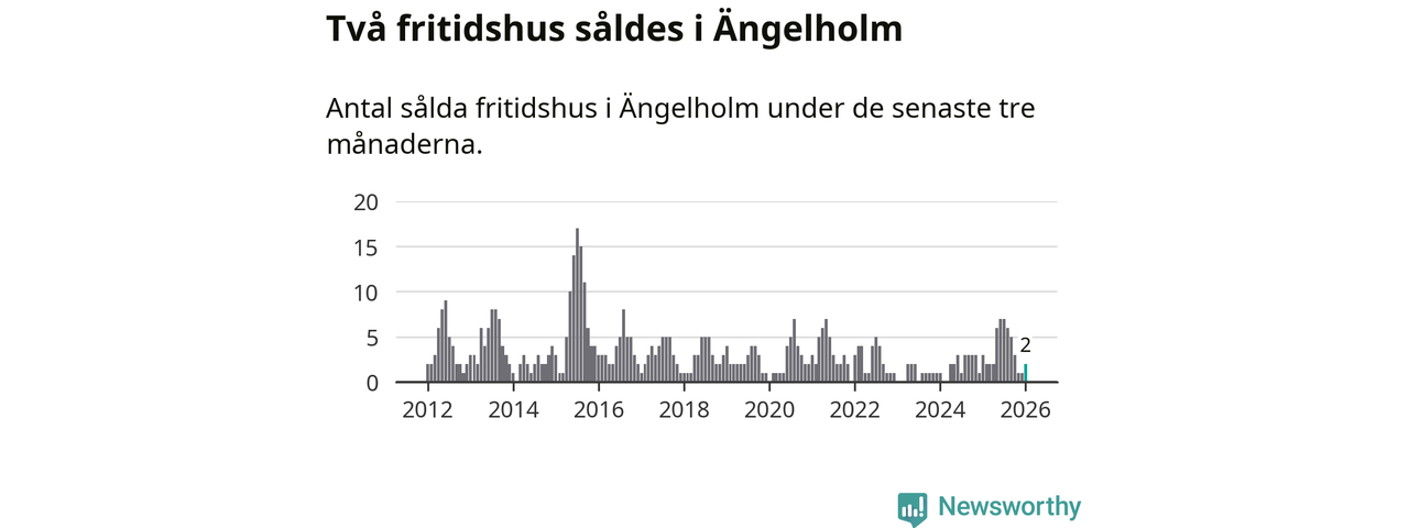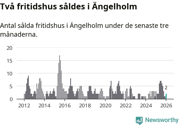 Mellan november och januari gjordes sammanlagt två affärer med fritidshus i Ängelholms kommun. Det kan jämföras med tre vid motsvarande tid i fjol.
