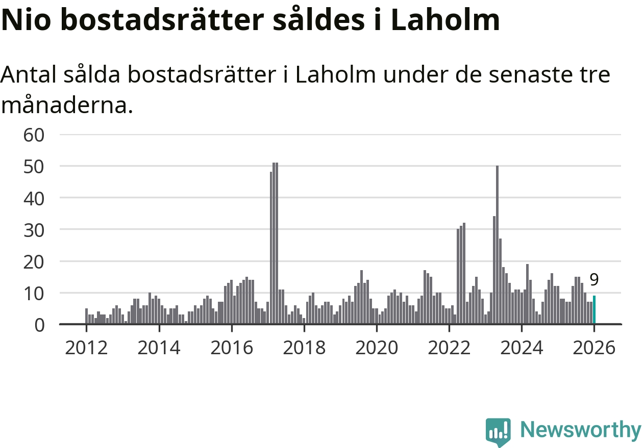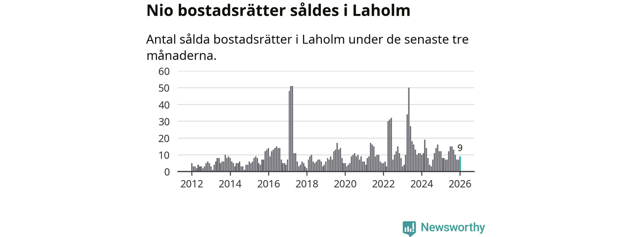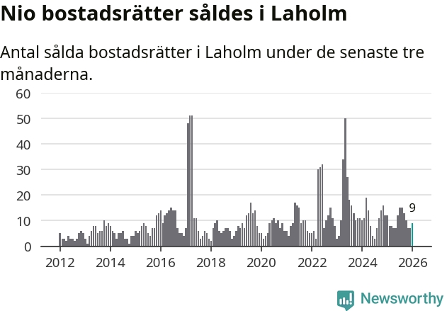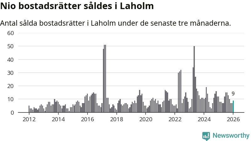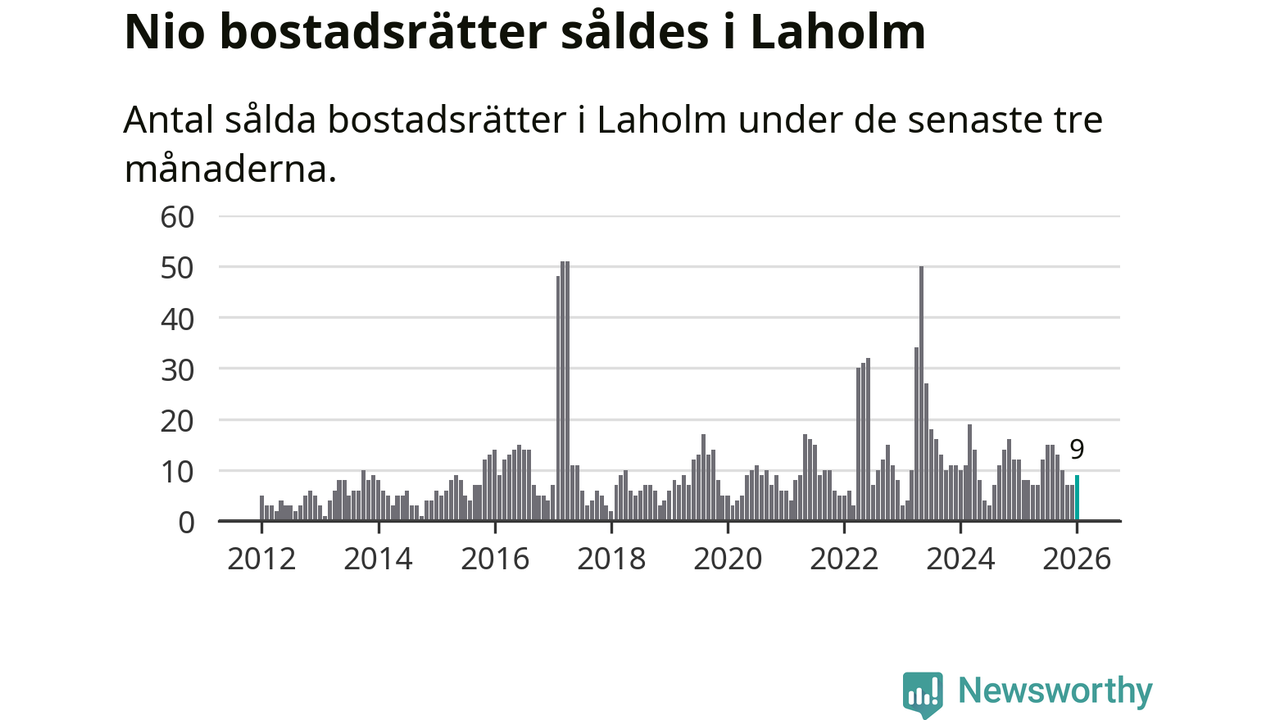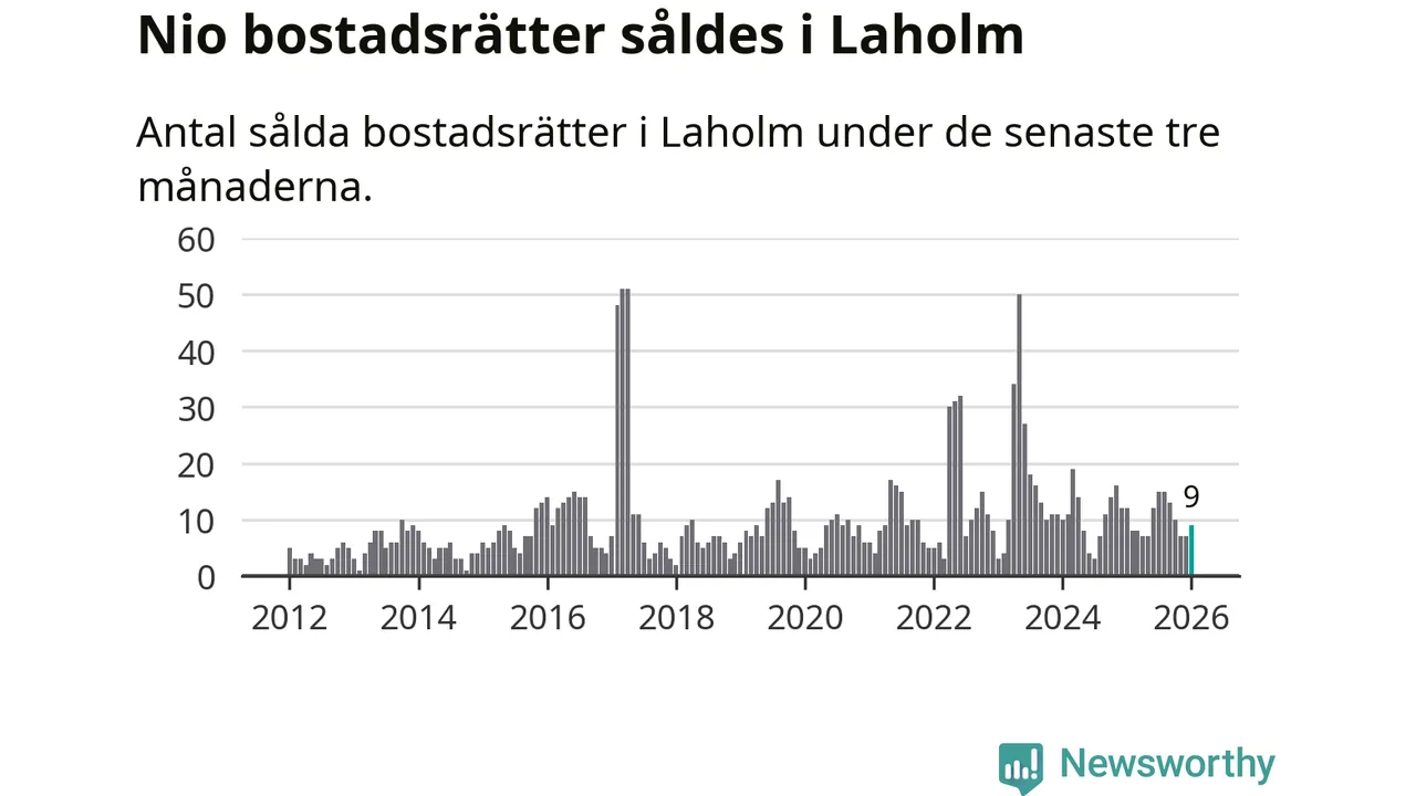 Mellan november och januari gjordes sammanlagt nio affärer med bostadsrätter i Laholms kommun. Det kan jämföras med tolv vid motsvarande tid i fjol.