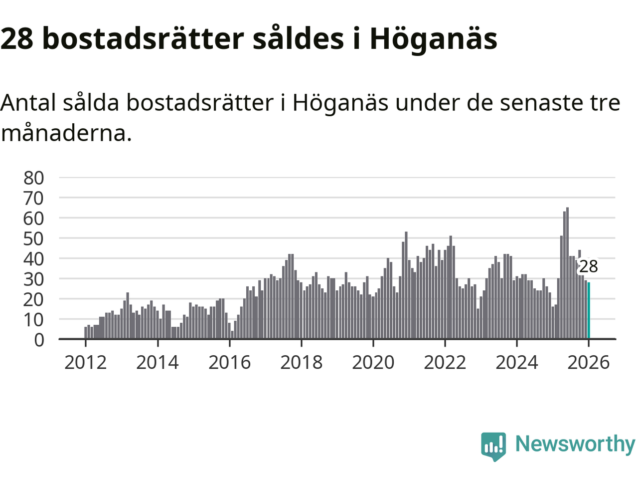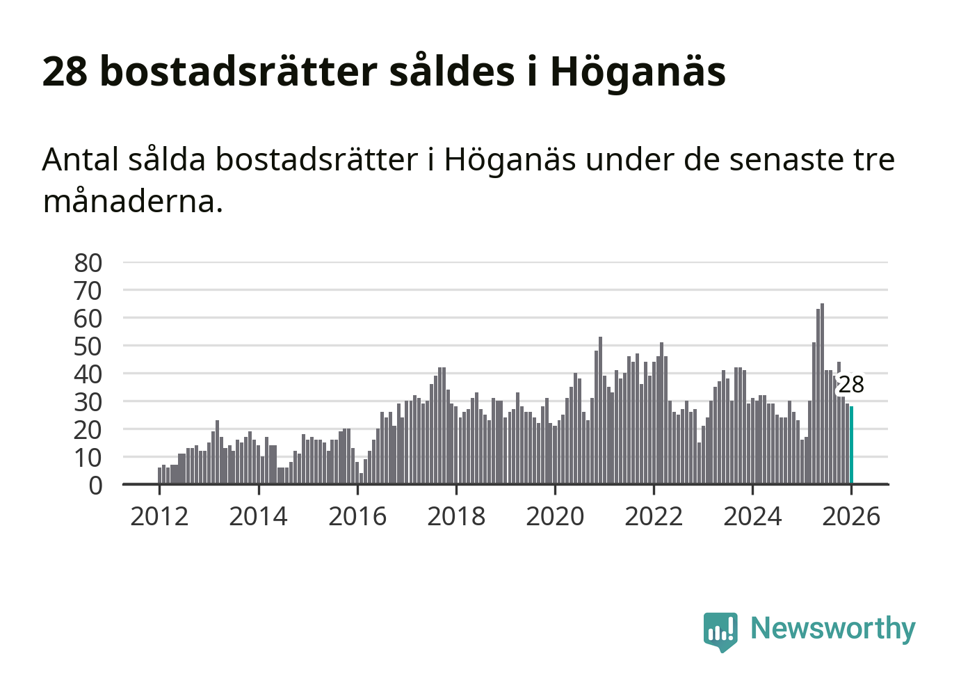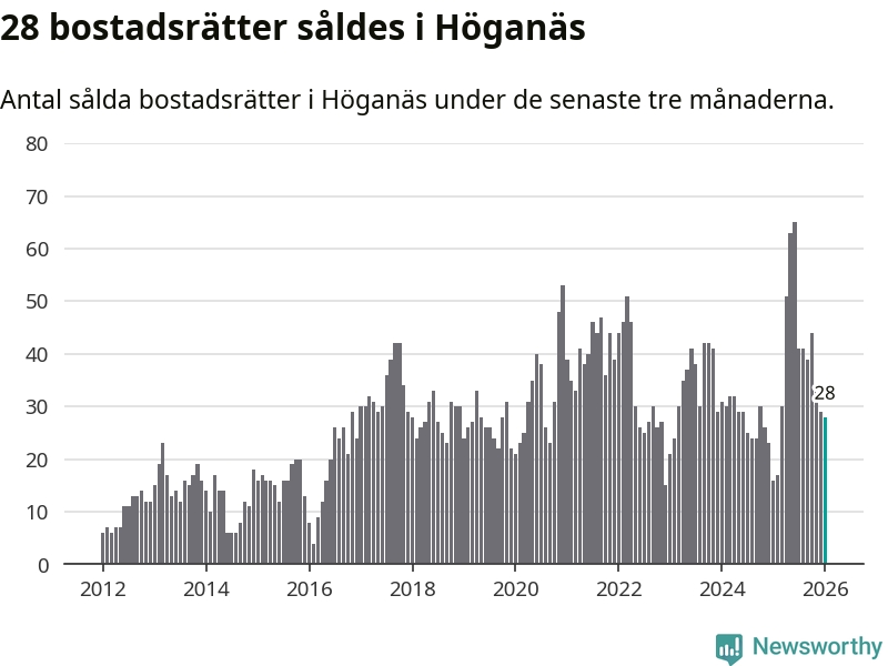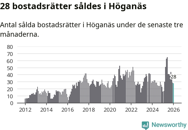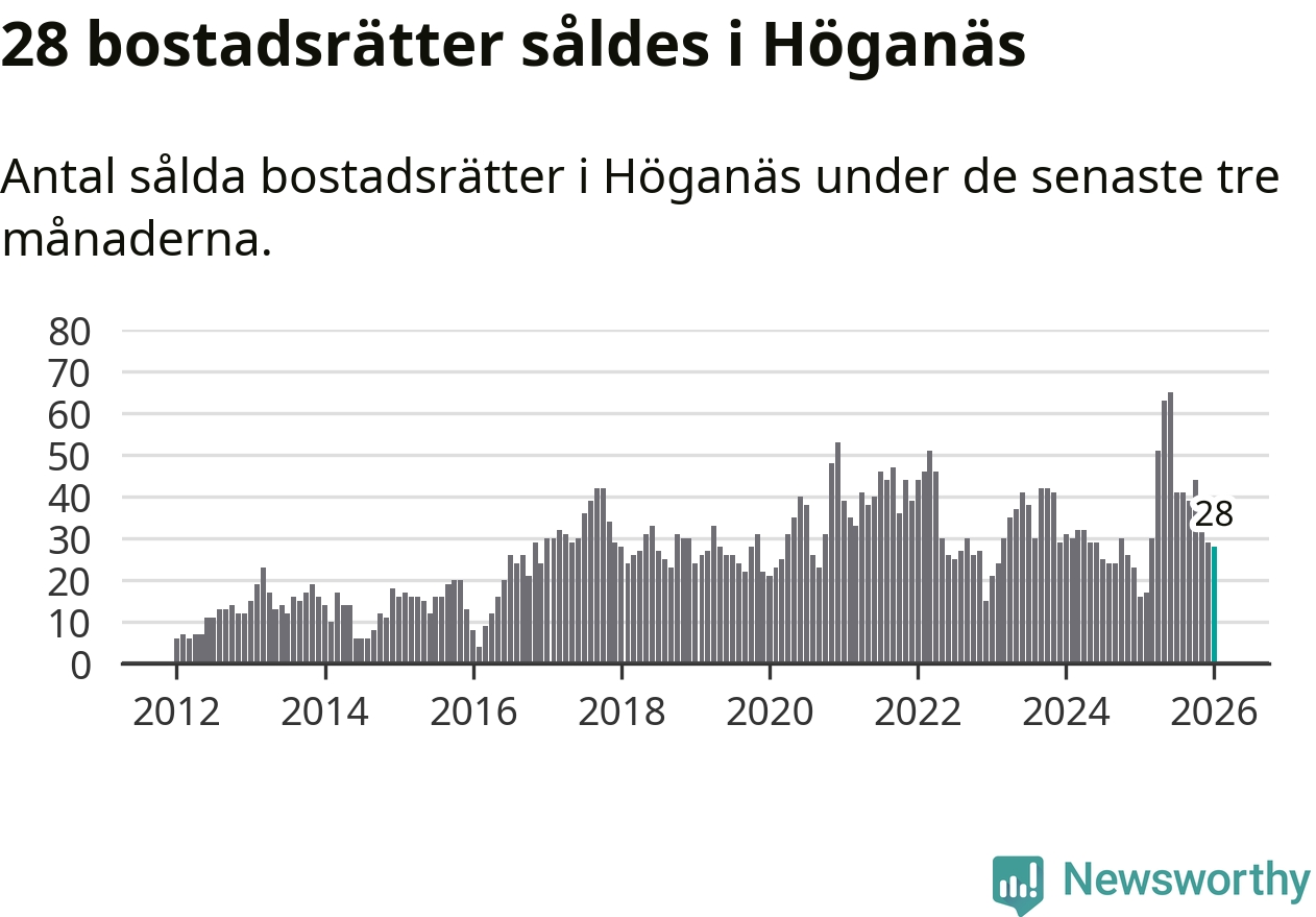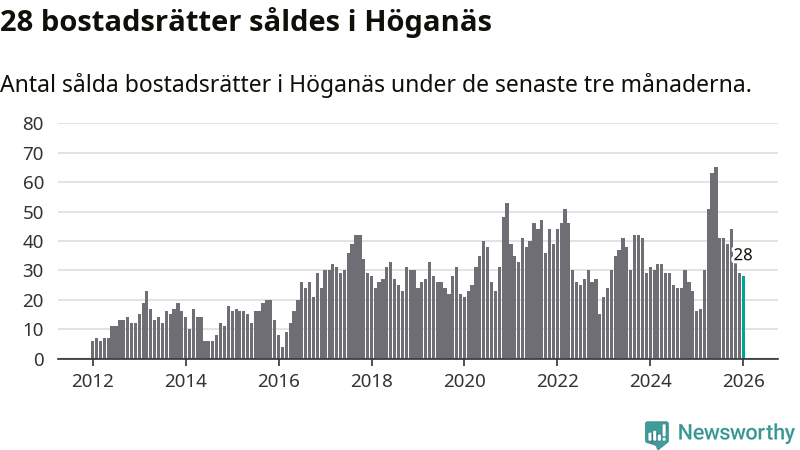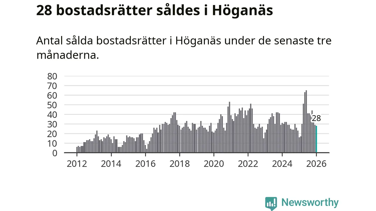 Graf: Antal sålda bostadsrätter i Höganäs kommun