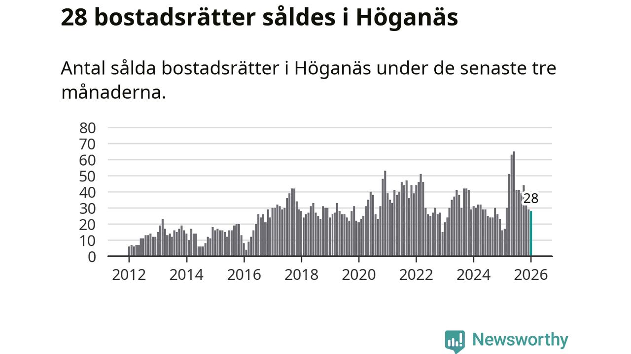 Sammanlagt såldes 28 bostadsrätter i Höganäs kommun mellan november och januari till ett genomsnittligt pris på 2,2 miljoner kronor. I fjol gjordes 16 affärer vid den här tiden på året.