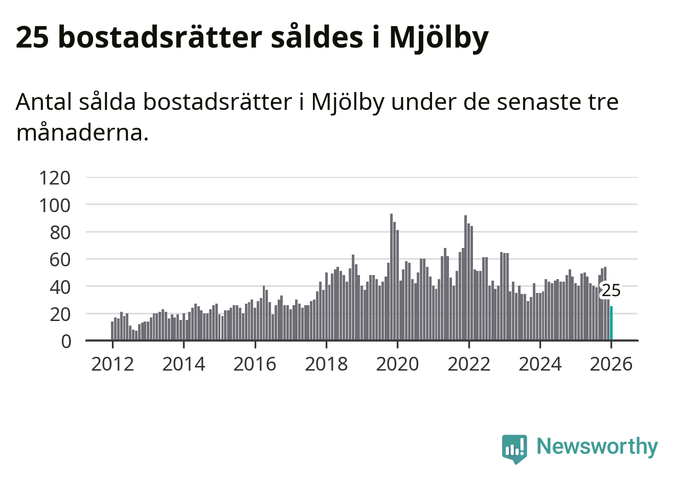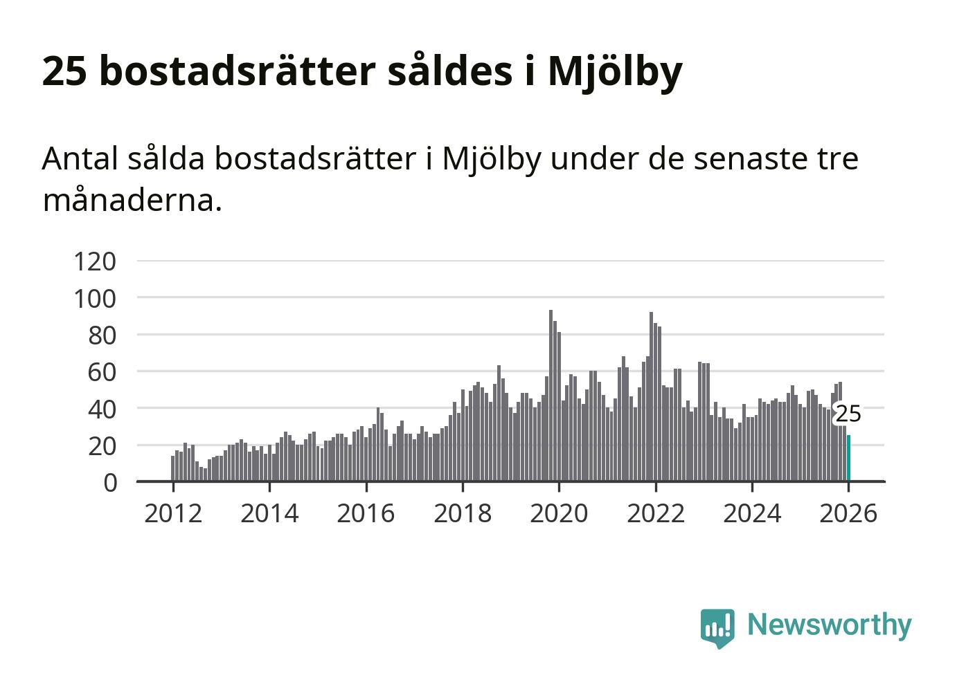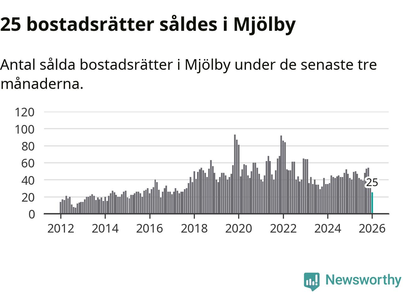Graf: Antal sålda bostadsrätter i Mjölby kommun