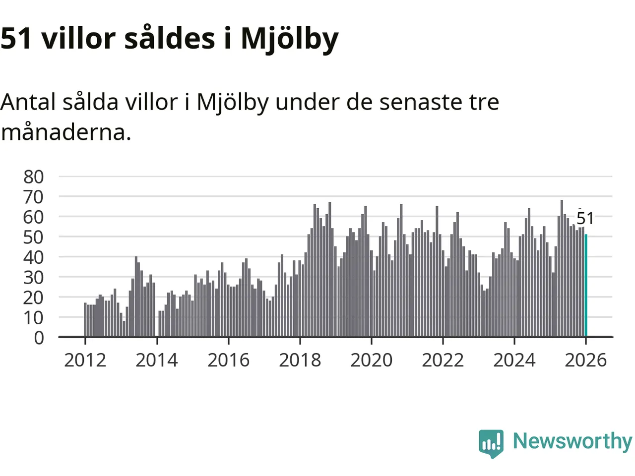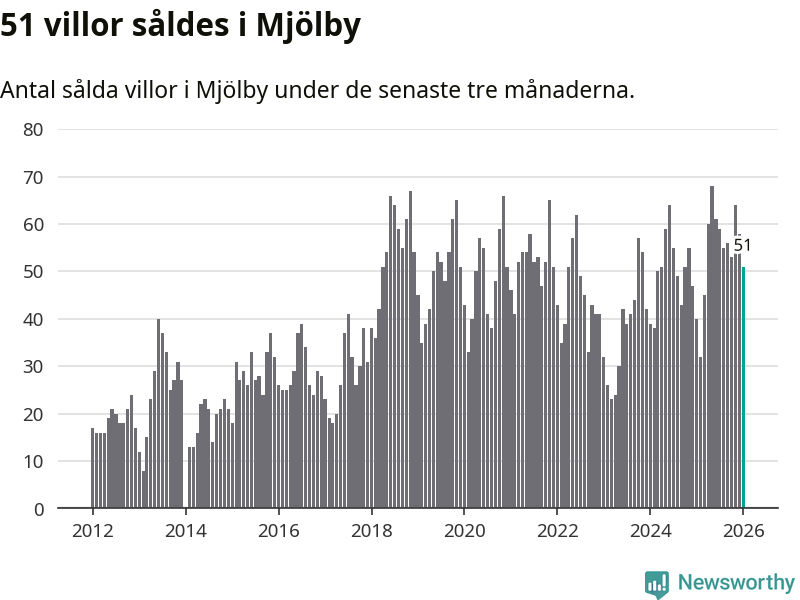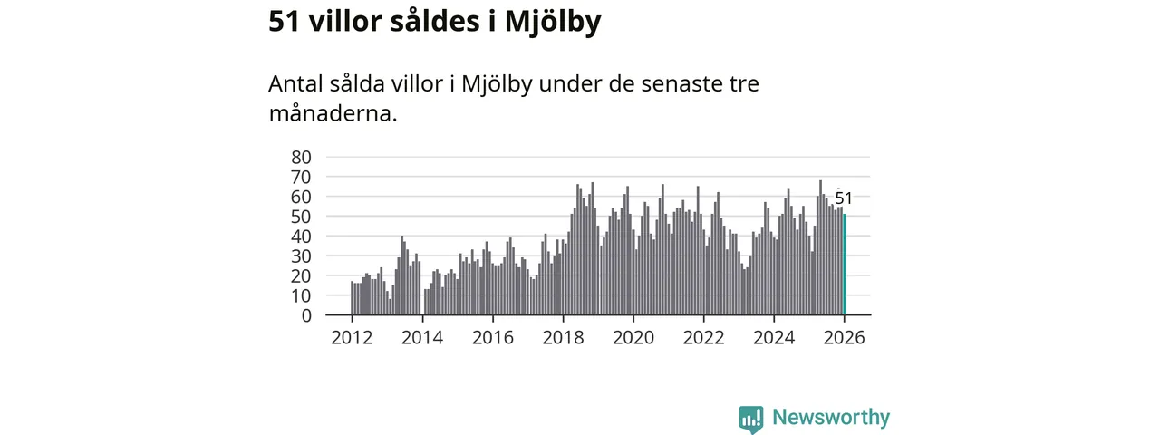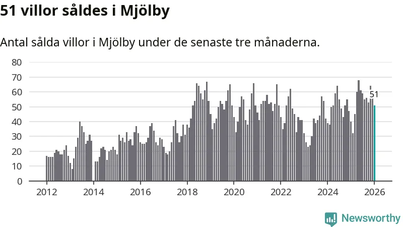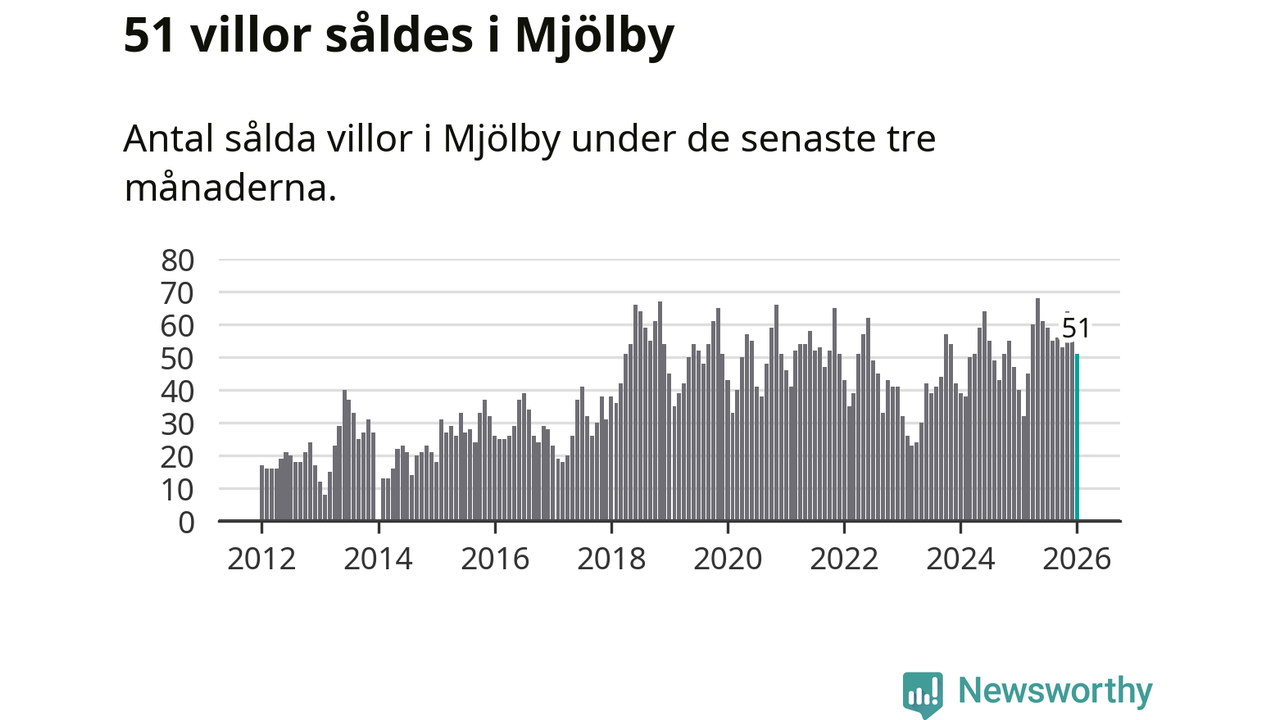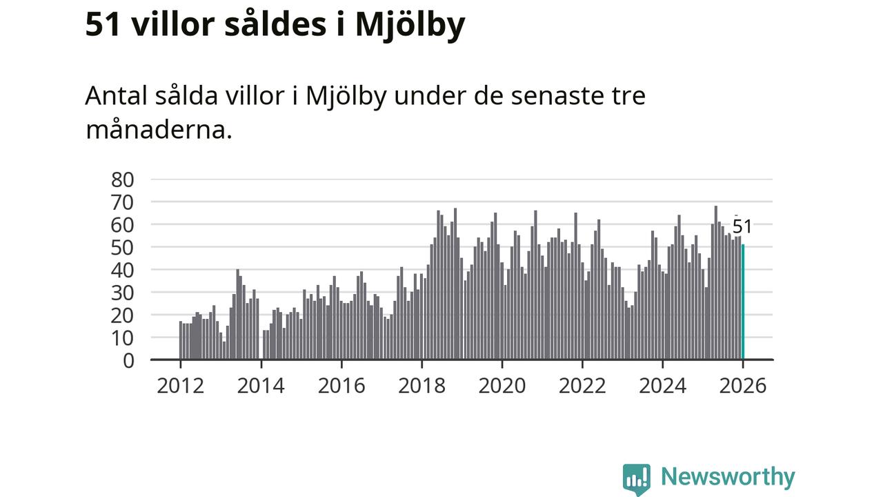 Sammanlagt såldes 51 villor i Mjölby kommun mellan november och januari till ett genomsnittligt pris på 2,8 miljoner kronor. I fjol gjordes 40 affärer vid den här tiden på året.