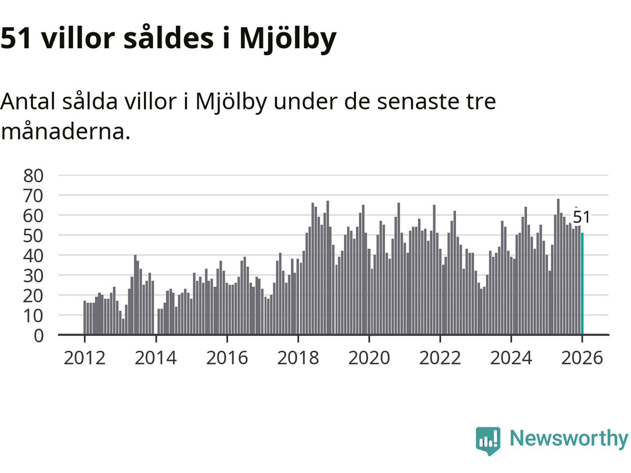 Graf: Antal sålda villor i Mjölby kommun