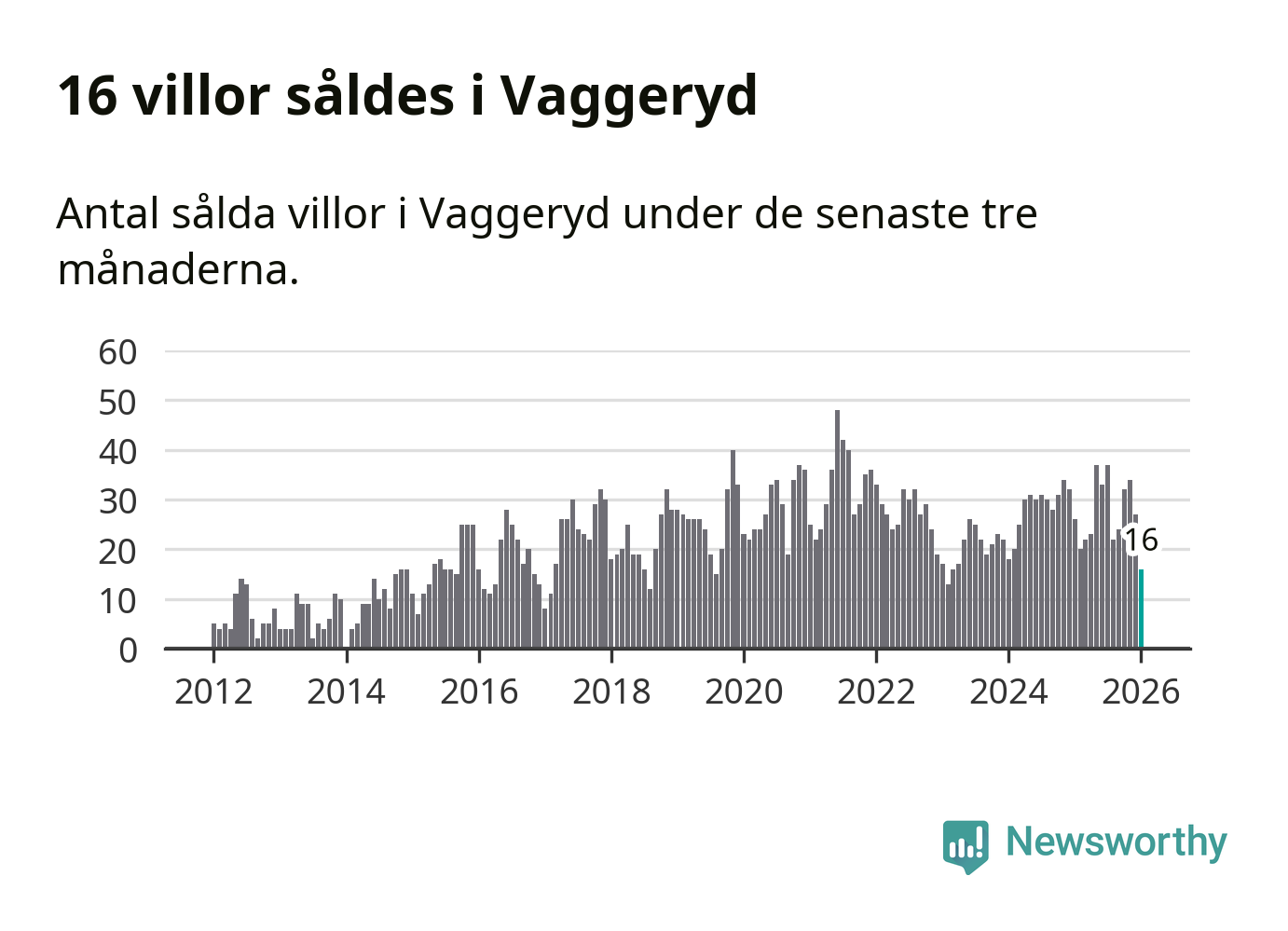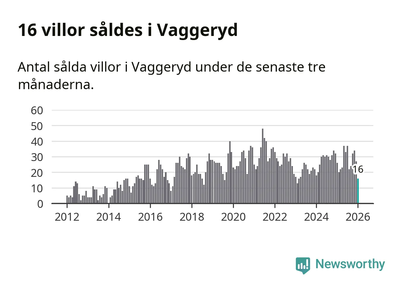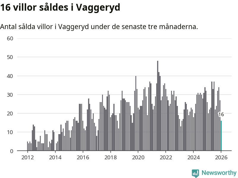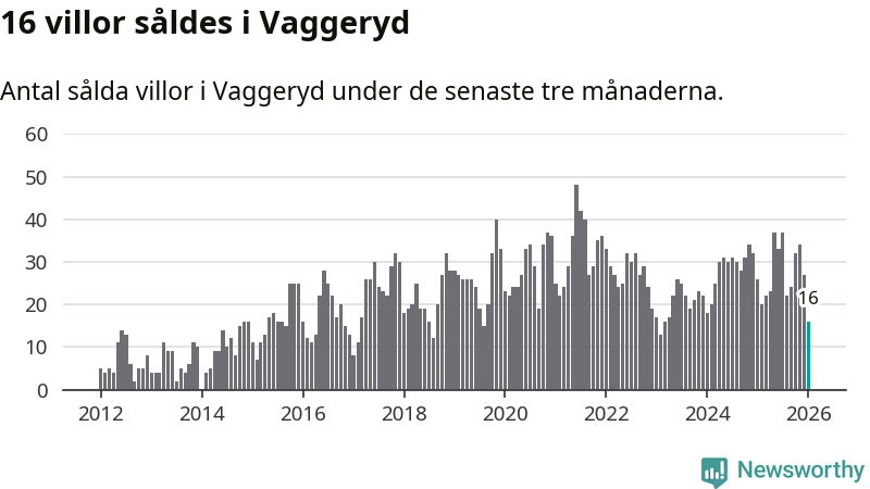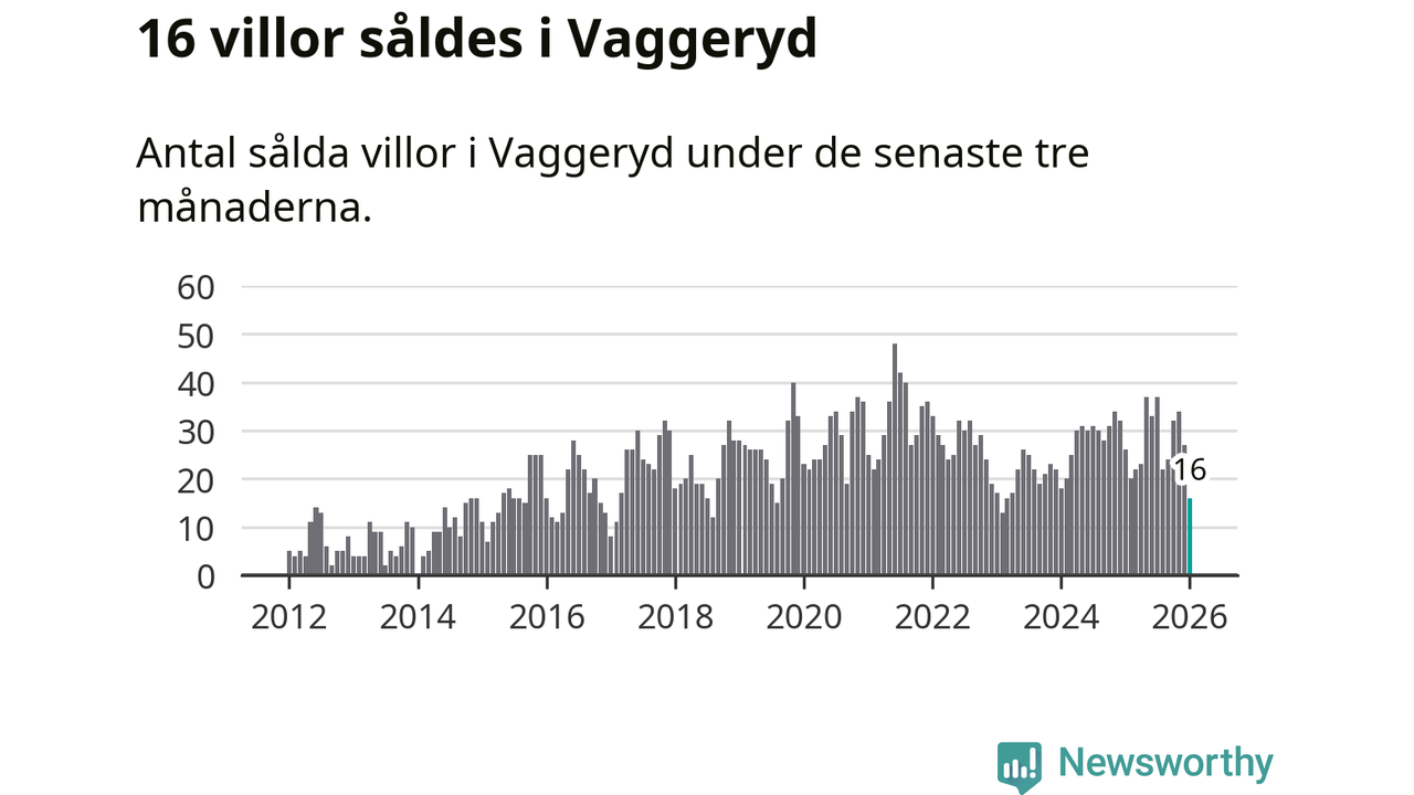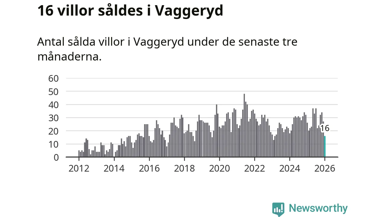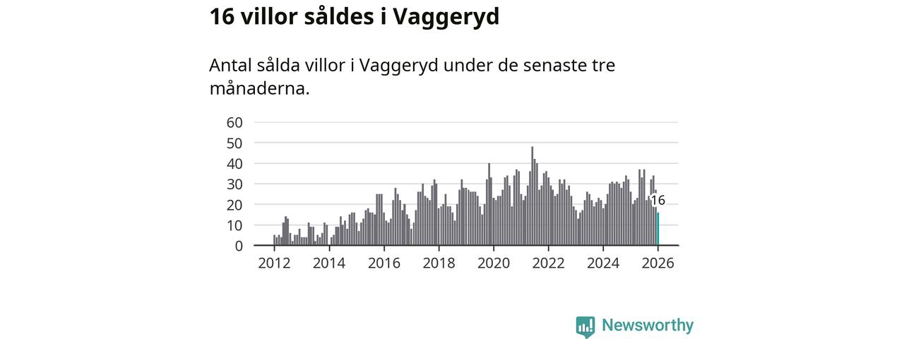 Mellan november och januari gjordes sammanlagt 16 affärer med villor i Vaggeryds kommun. Det kan jämföras med 26 vid motsvarande tid i fjol.