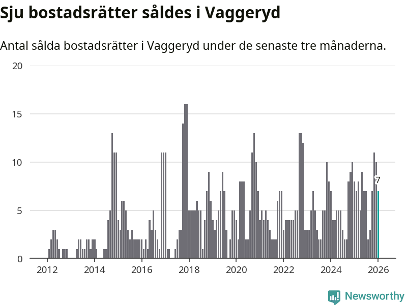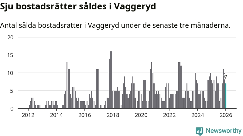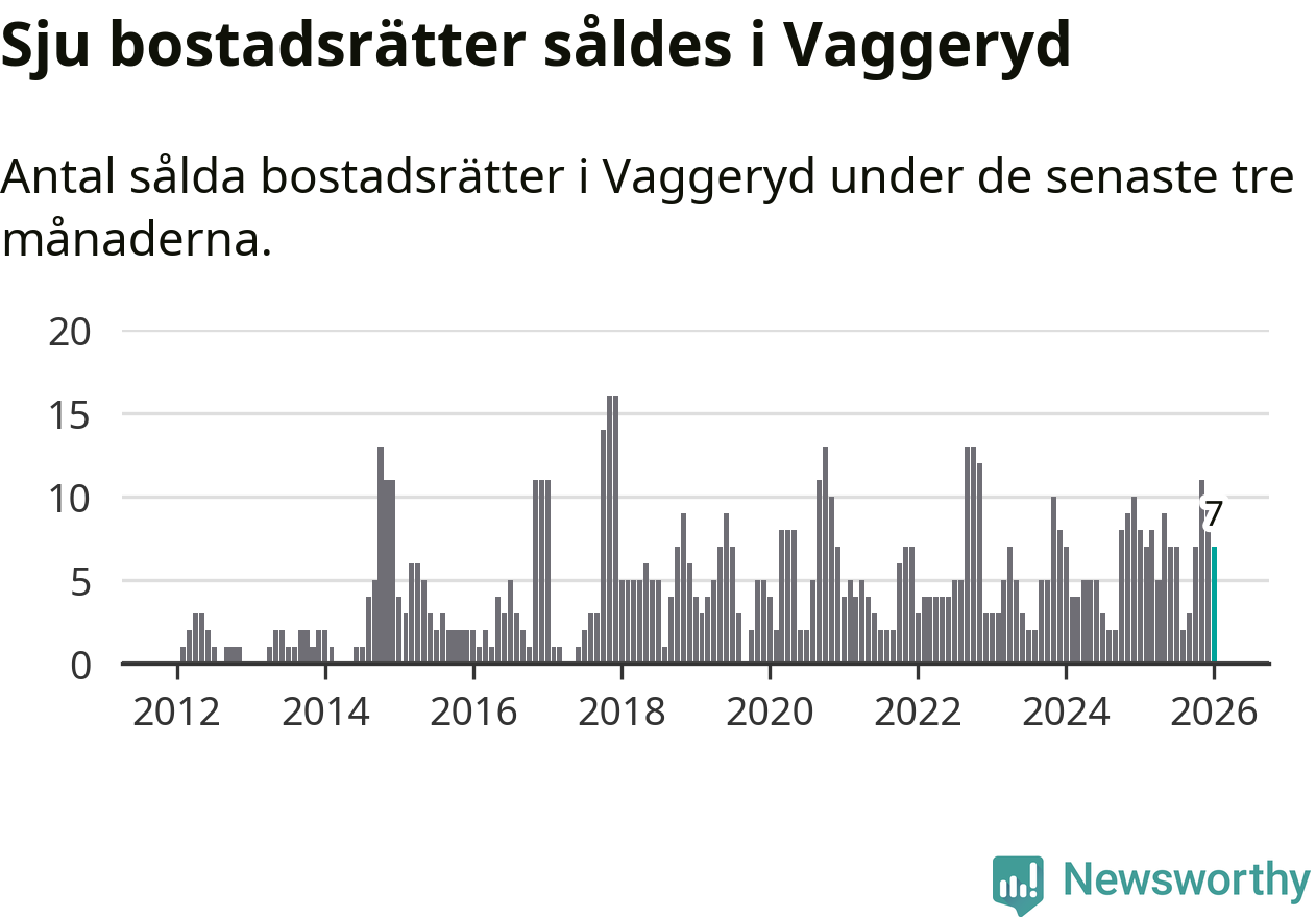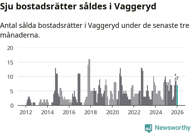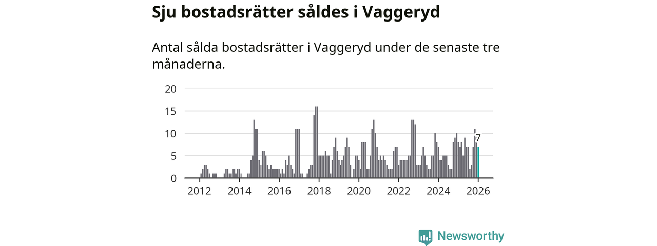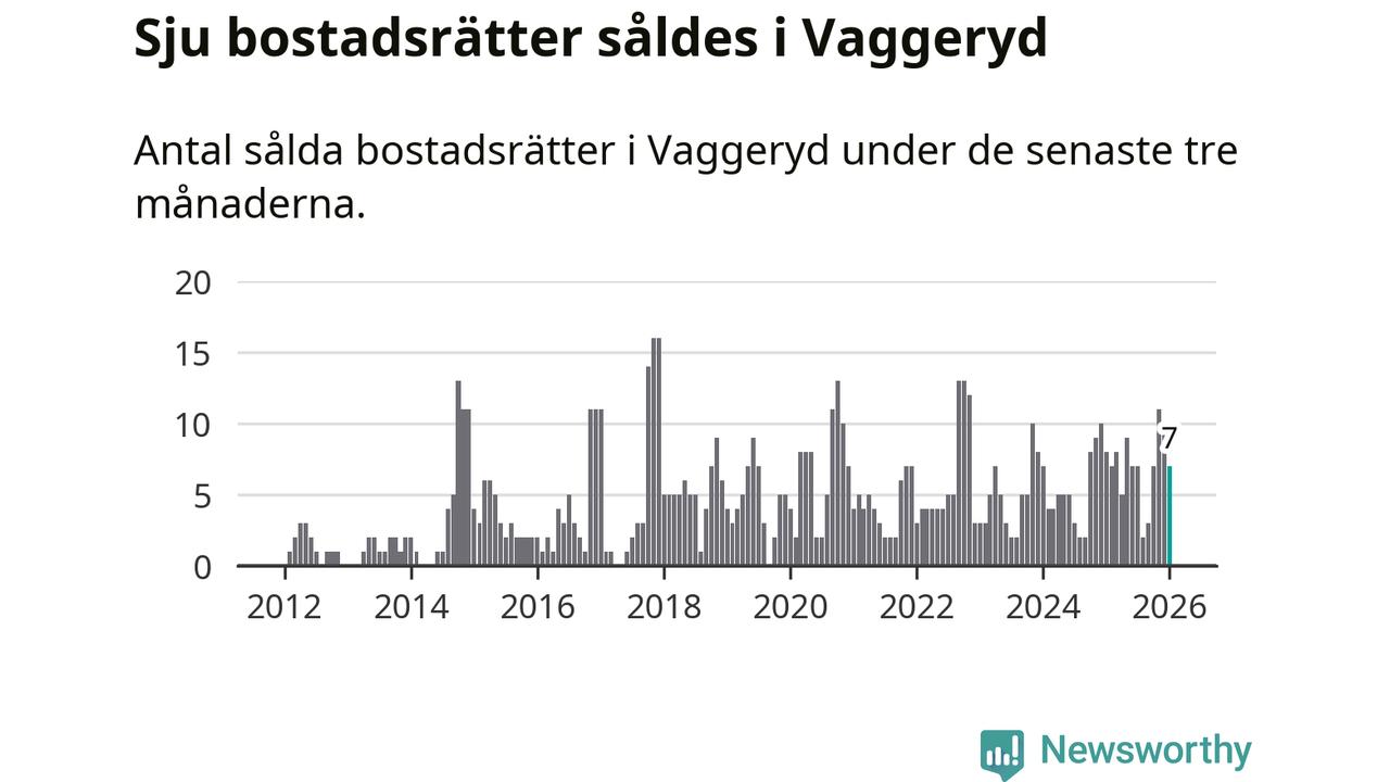 Mellan november och januari gjordes sammanlagt sju affärer med bostadsrätter i Vaggeryds kommun. Det kan jämföras med åtta vid motsvarande tid i fjol.