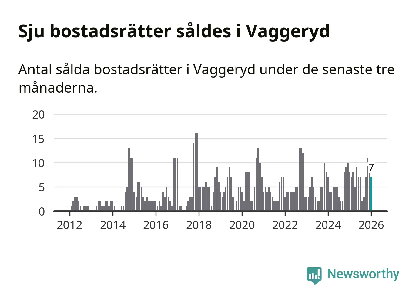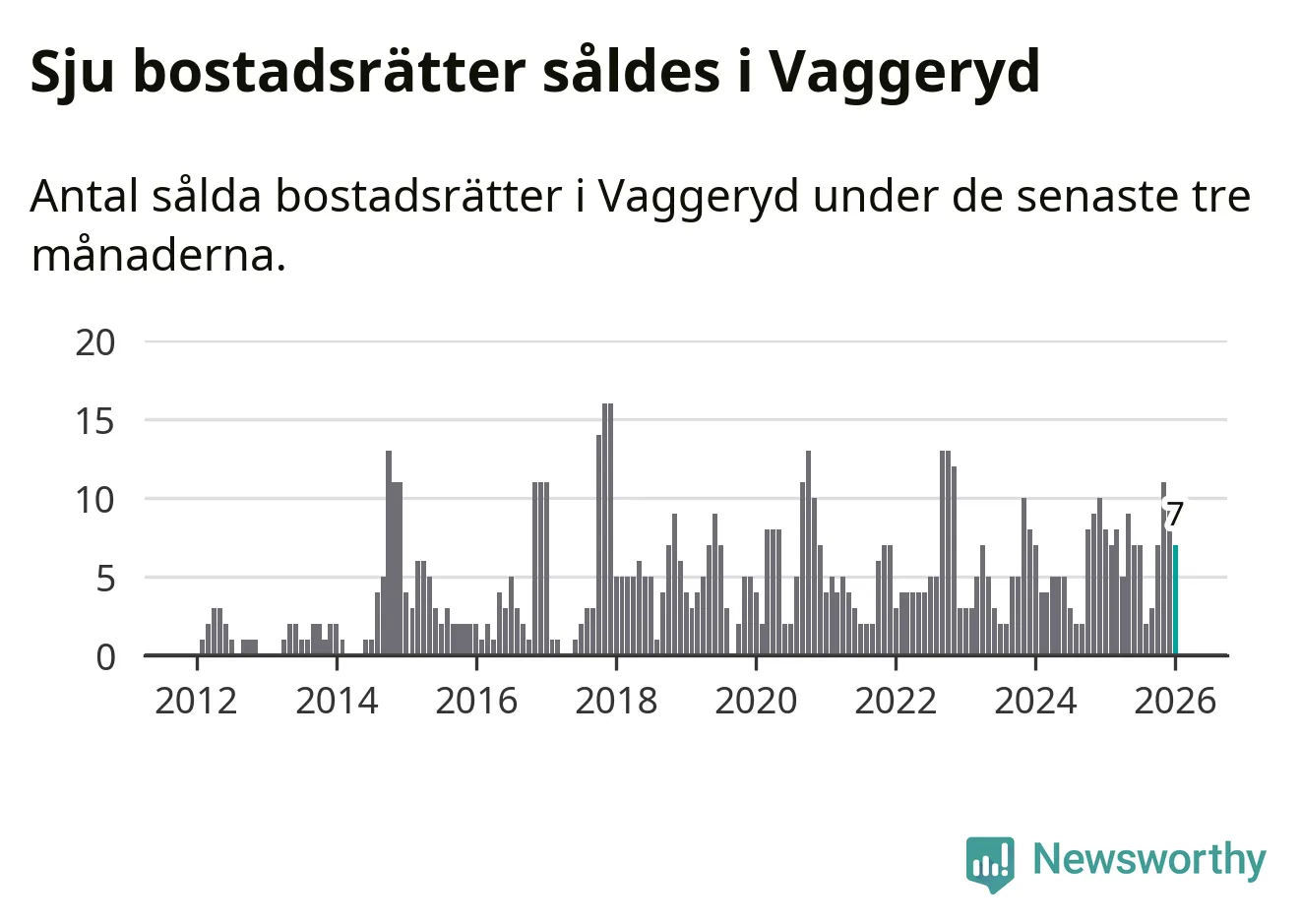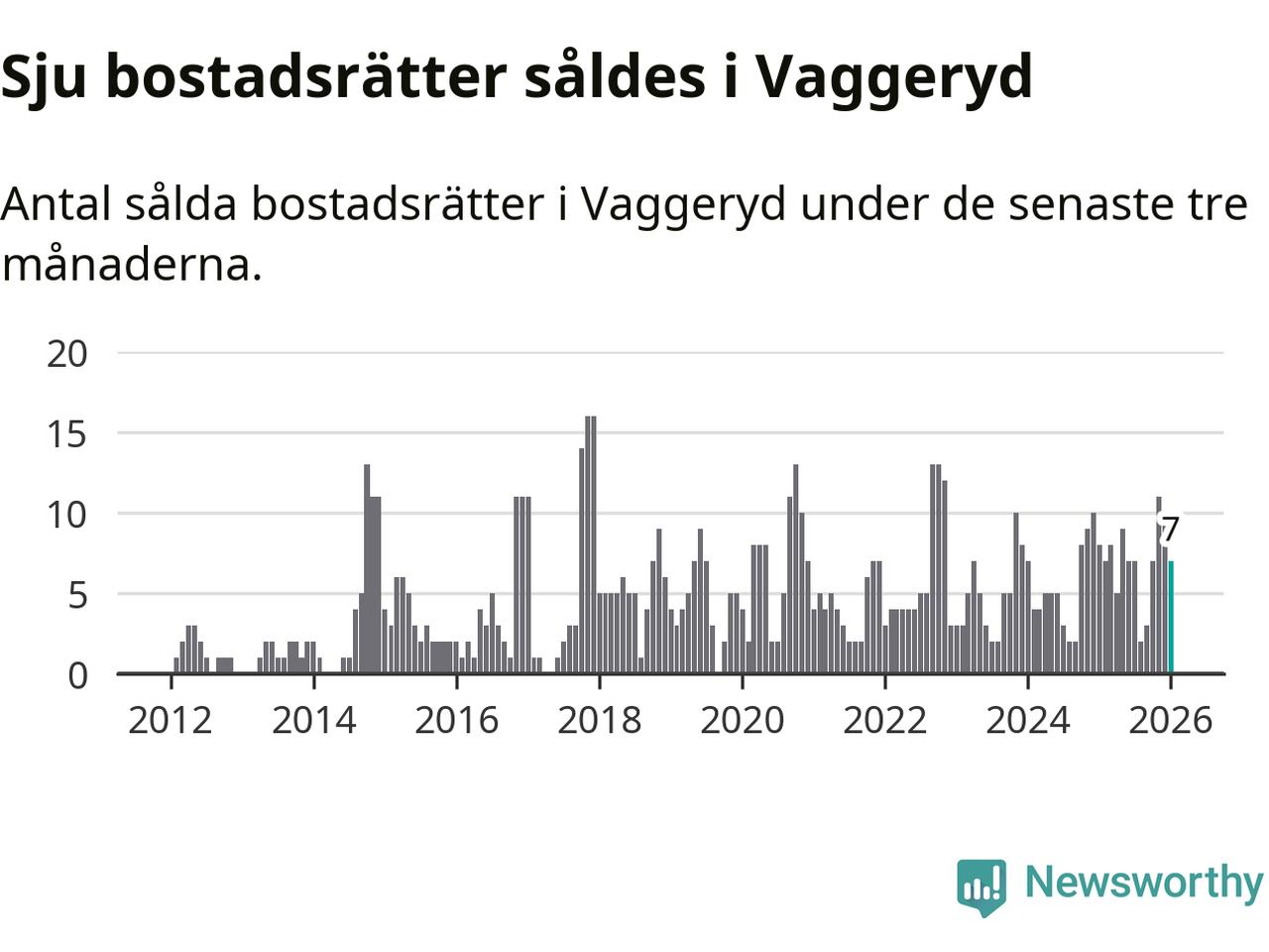 Mellan november och januari gjordes sammanlagt sju affärer med bostadsrätter i Vaggeryds kommun. Det kan jämföras med åtta vid motsvarande tid i fjol.