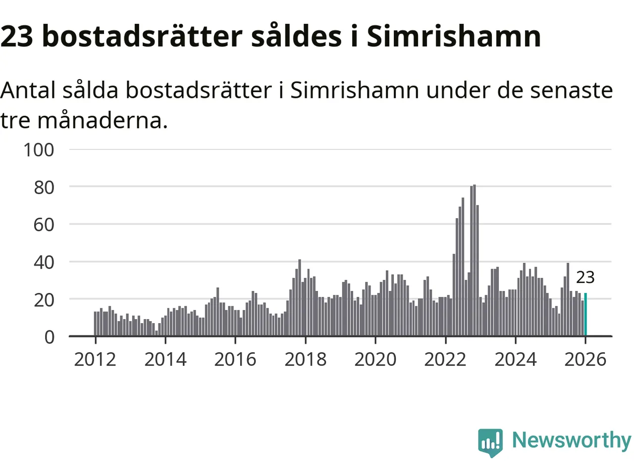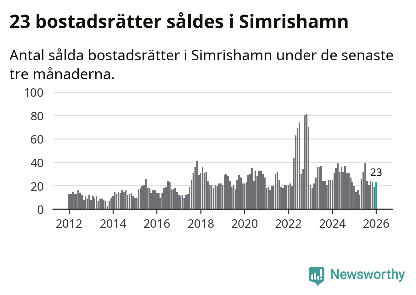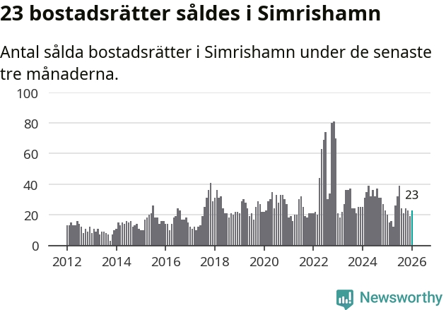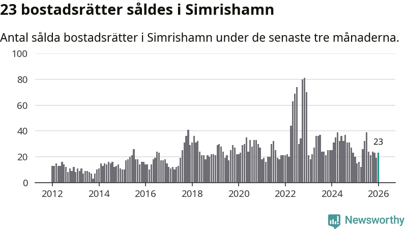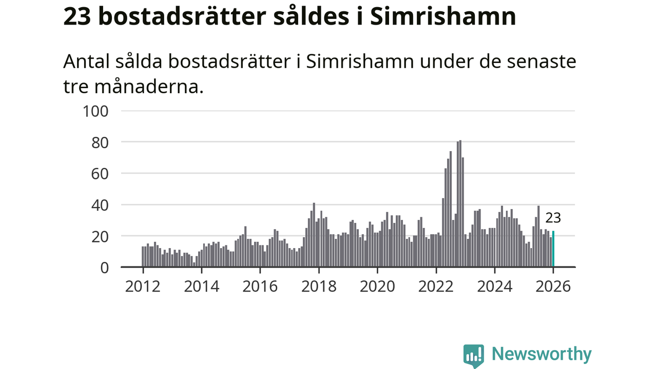 Mellan november och januari gjordes sammanlagt 23 affärer med bostadsrätter i Simrishamns kommun. Det kan jämföras med 20 vid motsvarande tid i fjol.