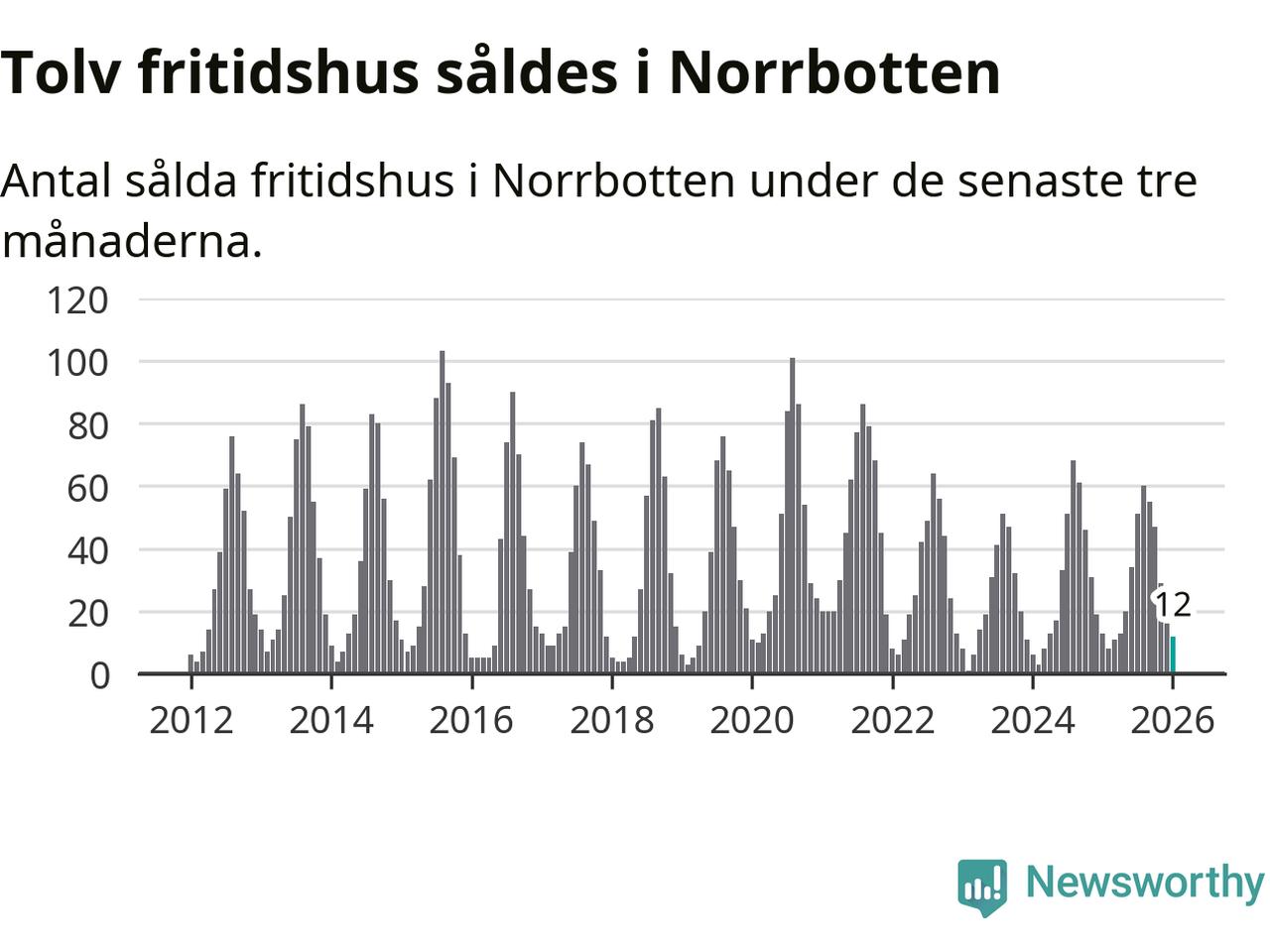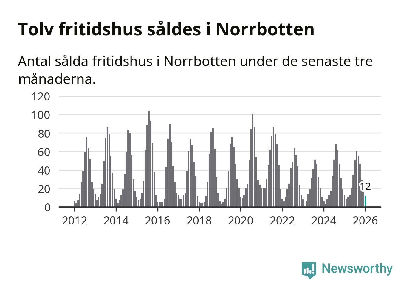 Graf: Antal sålda fritidshus i Norrbottens län
