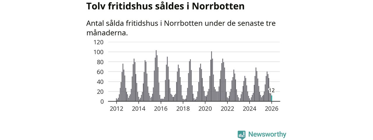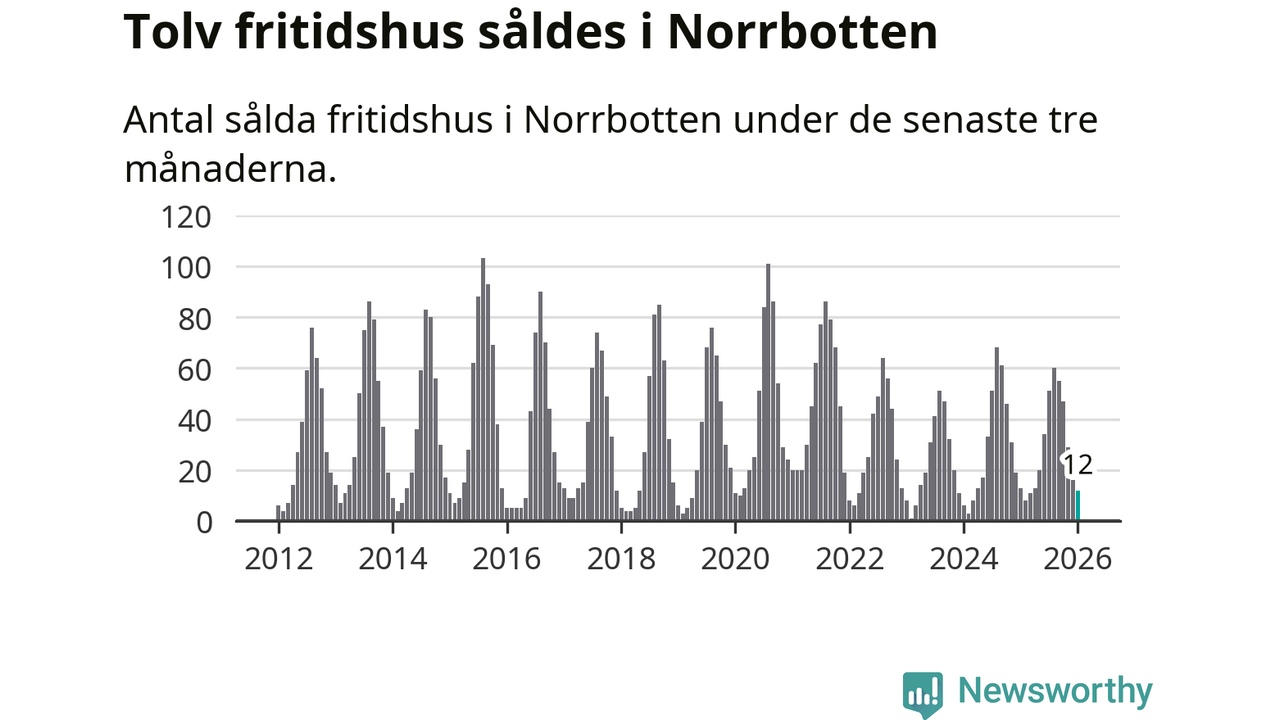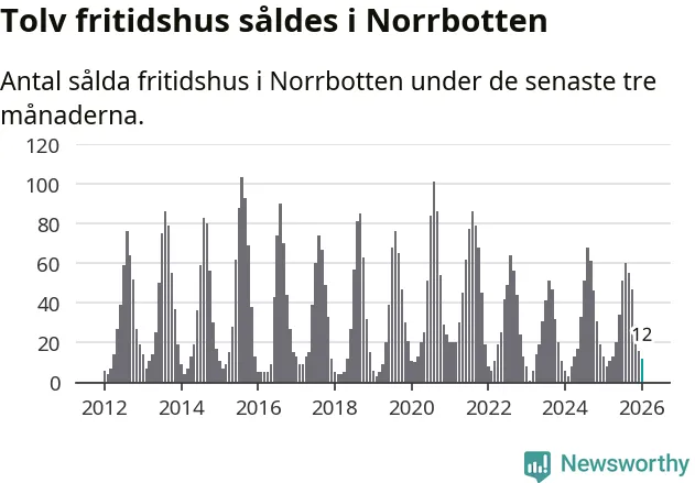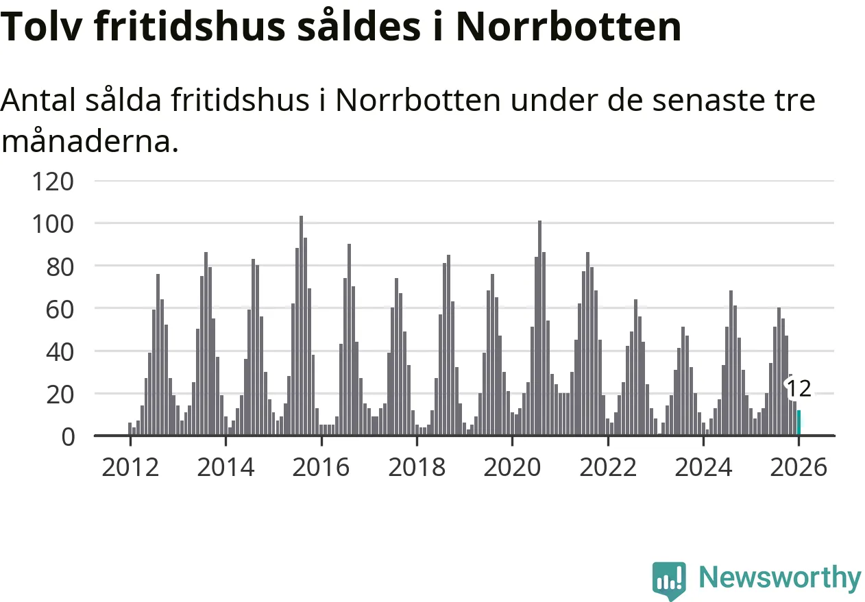 Sammanlagt såldes tolv fritidshus i Norrbottens län mellan november 2025 och januari till ett genomsnittligt pris på 1,3 miljoner kronor. I fjol gjordes 13 affärer vid den här tiden på året.