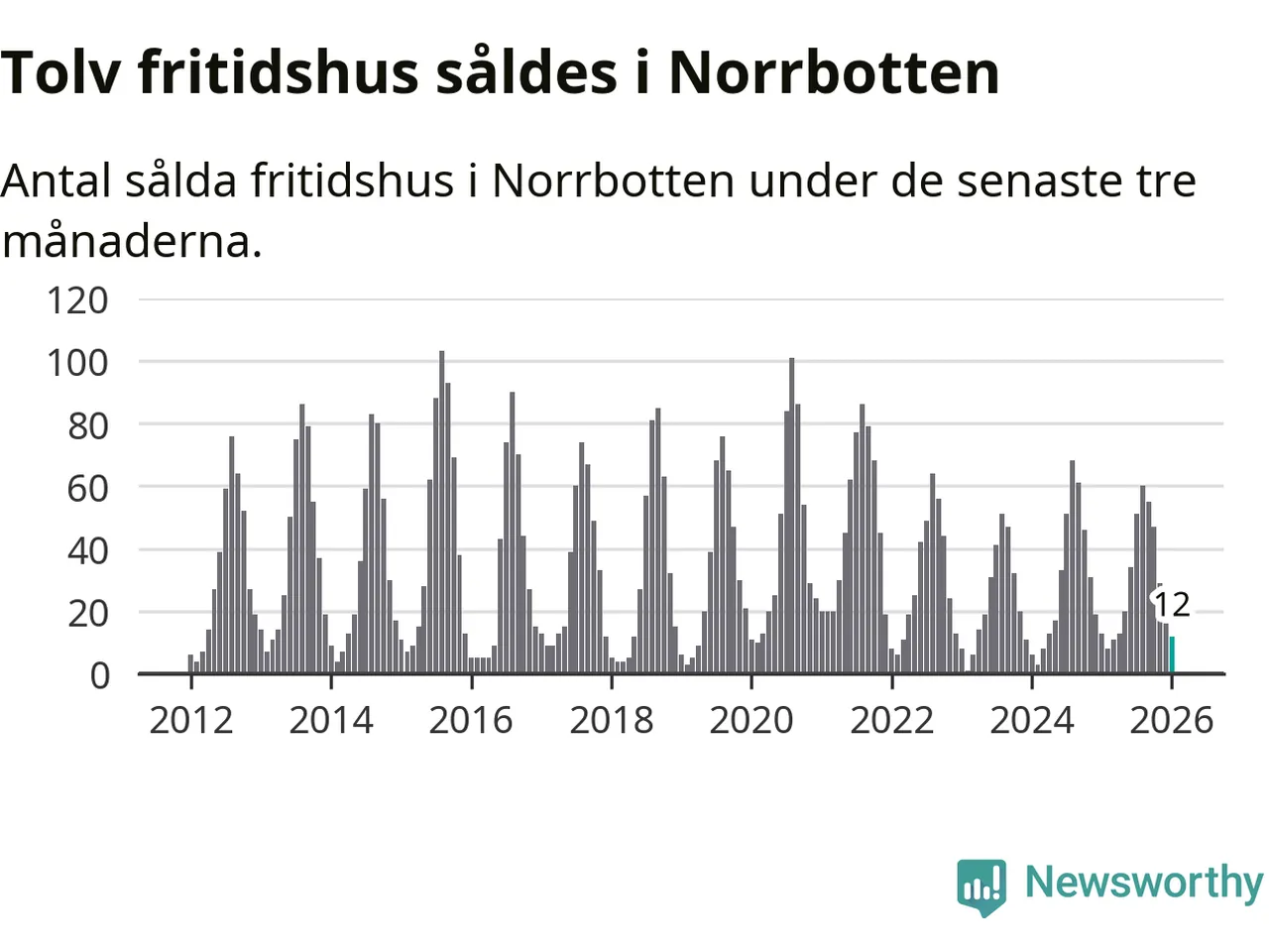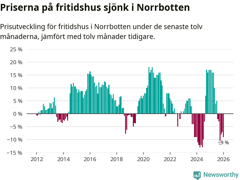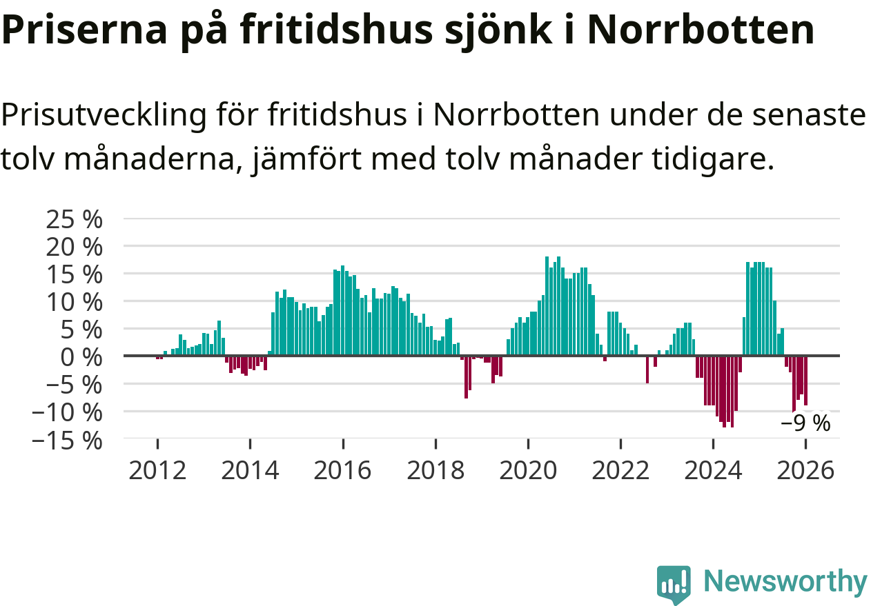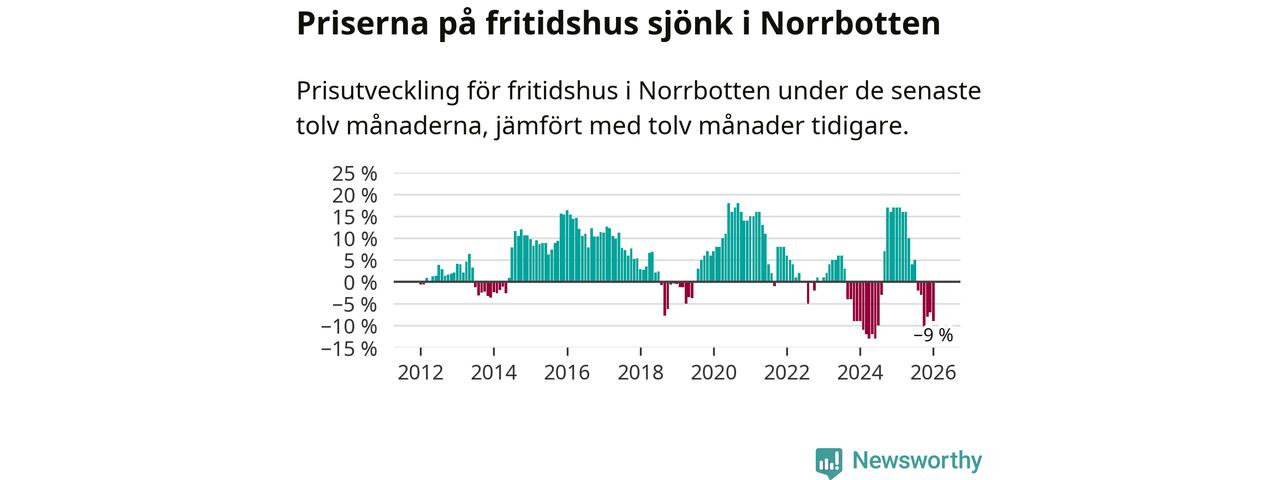 Sammanlagt såldes tolv fritidshus i Norrbottens län mellan november 2025 och januari till ett genomsnittligt pris på 1,3 miljoner kronor. I fjol gjordes 13 affärer vid den här tiden på året.