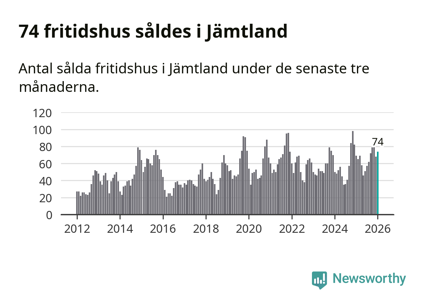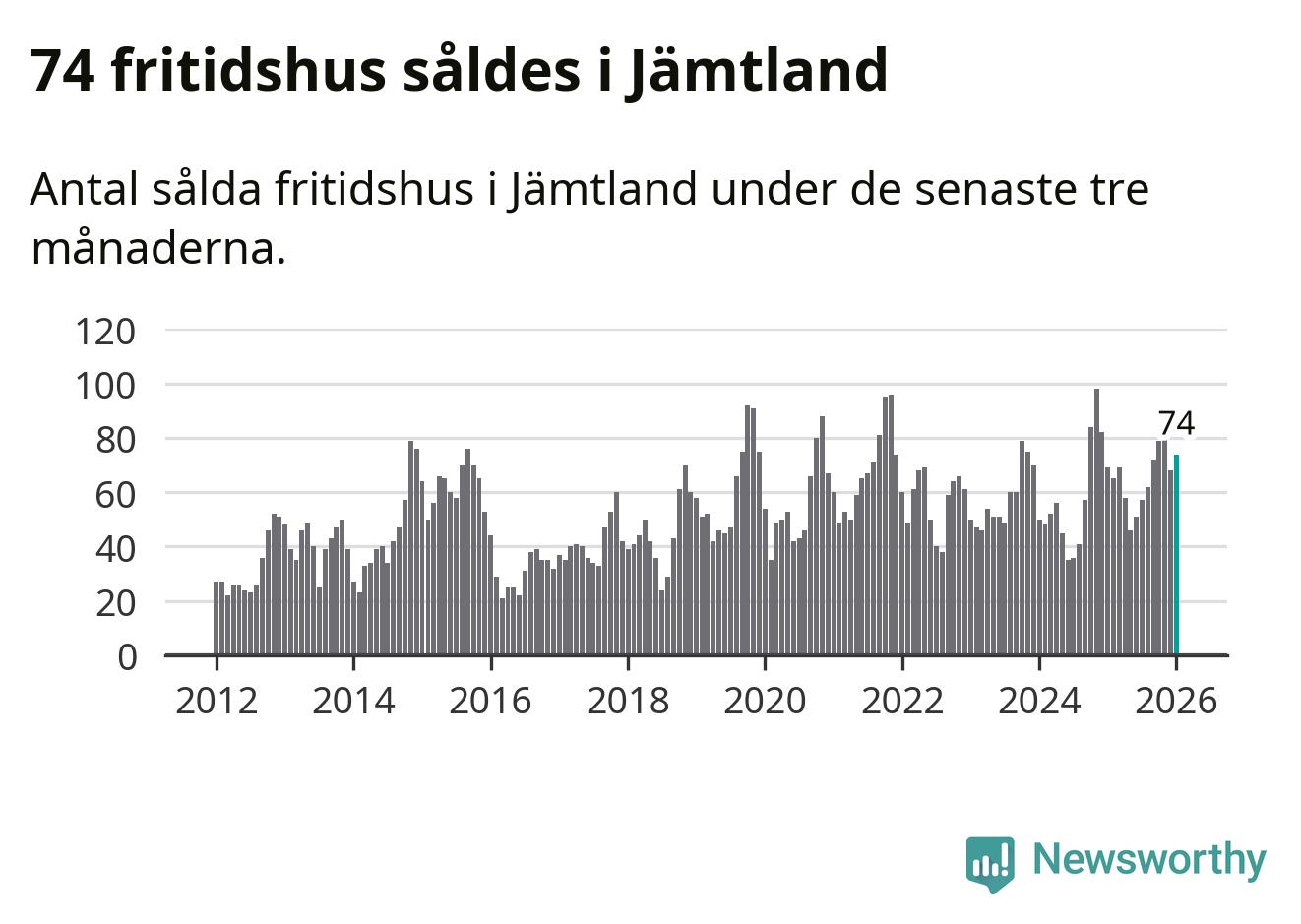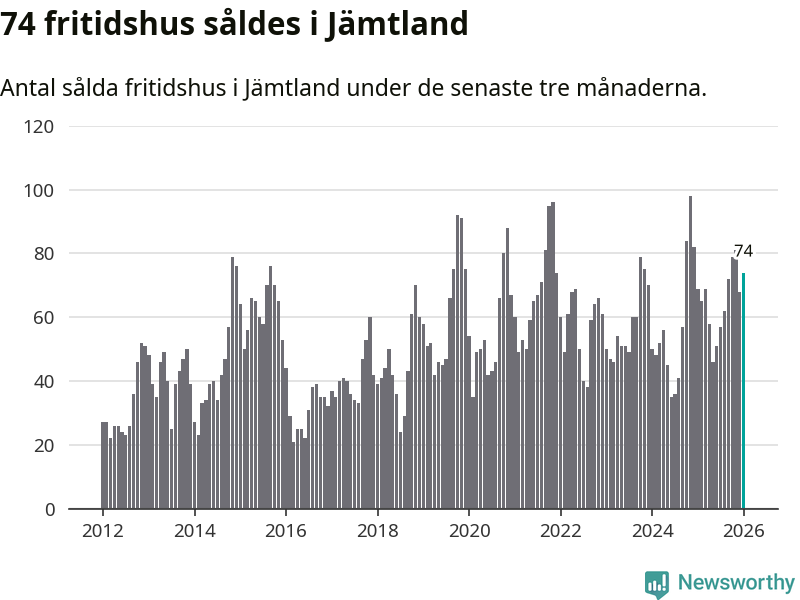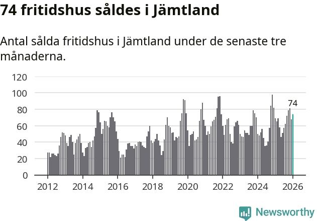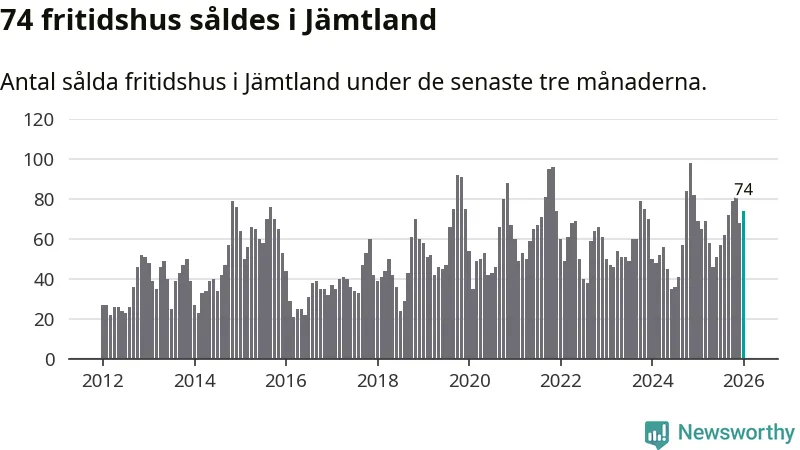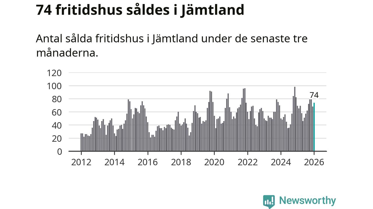 Sammanlagt såldes 74 fritidshus i Jämtlands län mellan november 2025 och januari till ett genomsnittligt pris på 3,1 miljoner kronor. I fjol gjordes 69 affärer vid den här tiden på året.