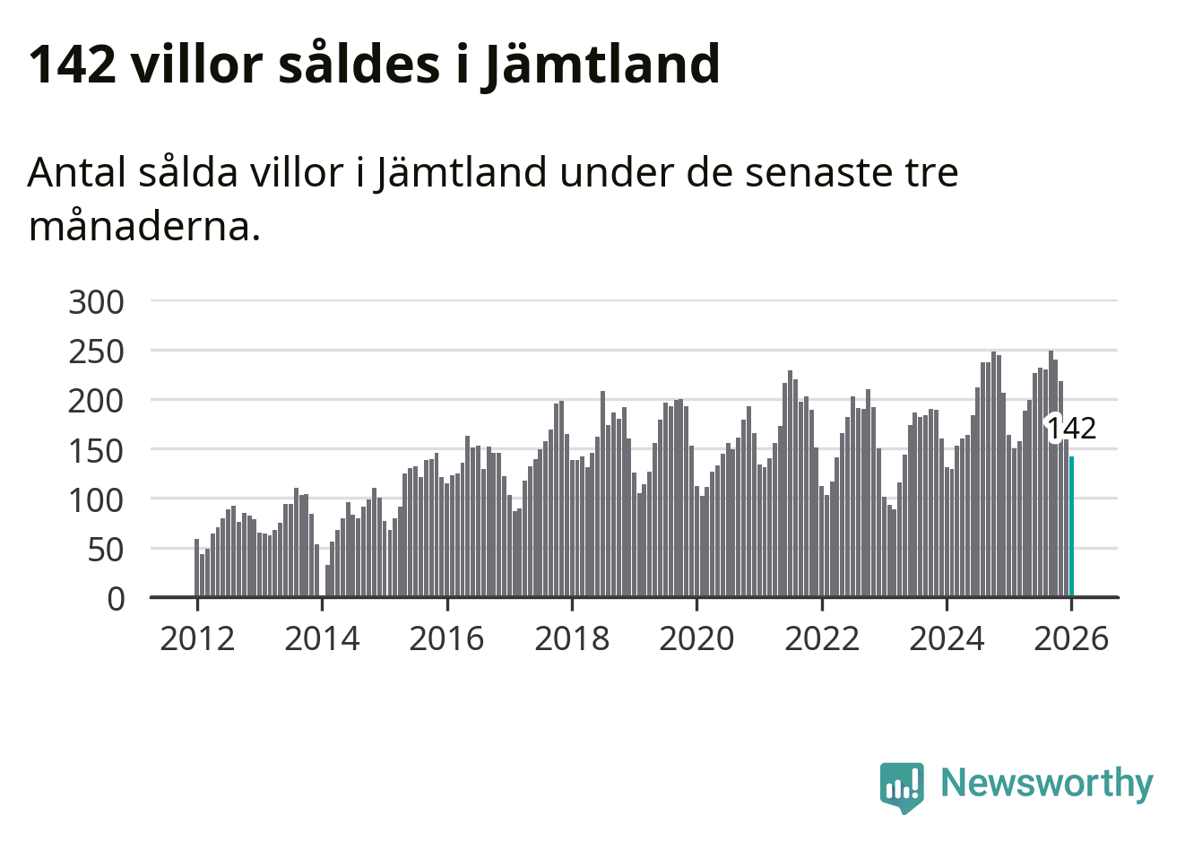 Graf: Antal sålda villor i Jämtlands län