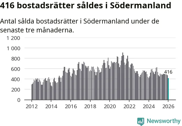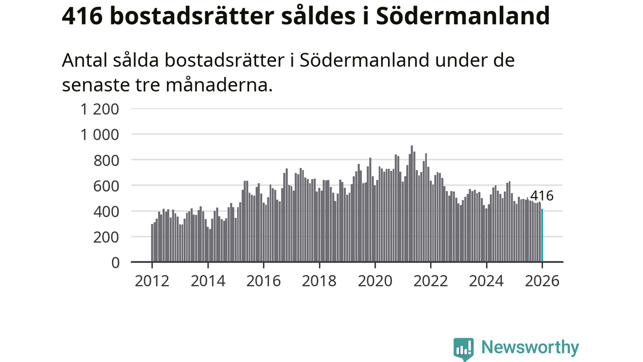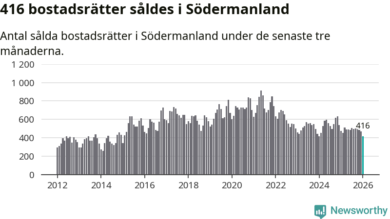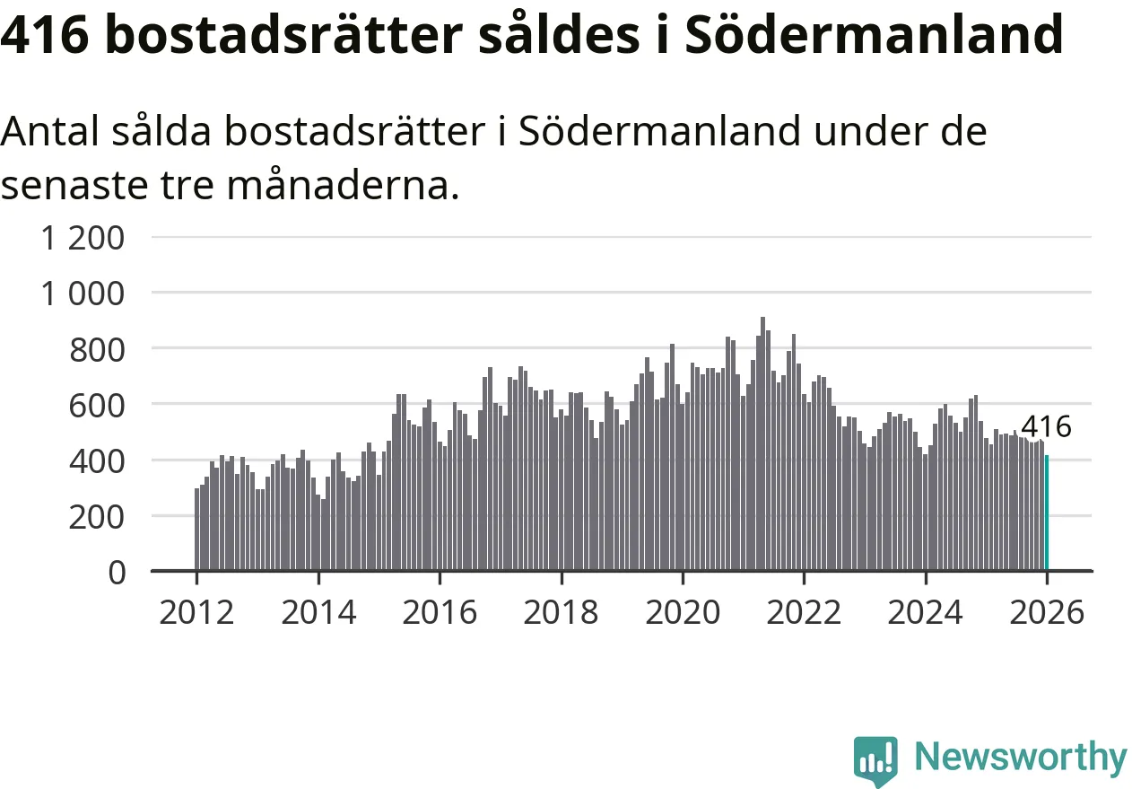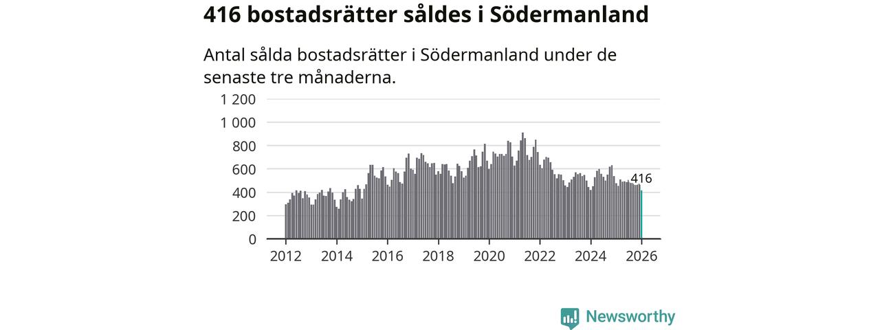 Mellan november och januari såldes 416 bostadsrätter i Södermanlands län. Det är färre än någon tremånadersperiod sedan 2015.