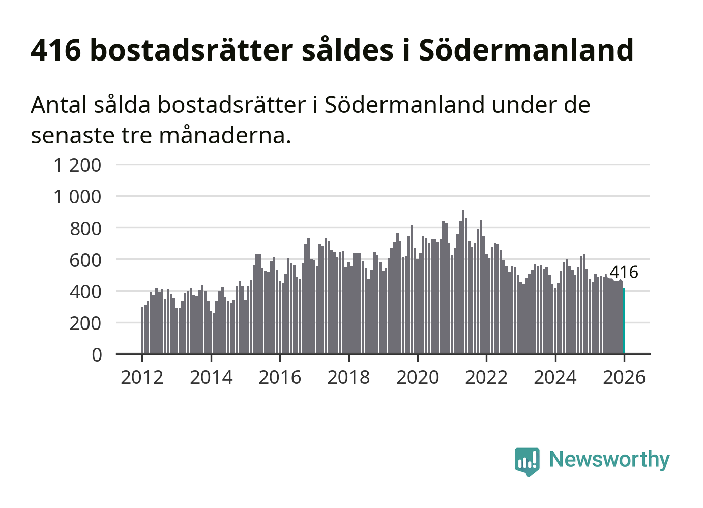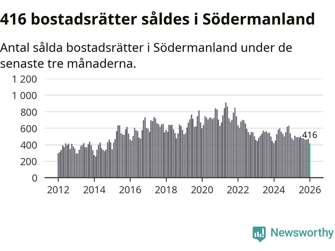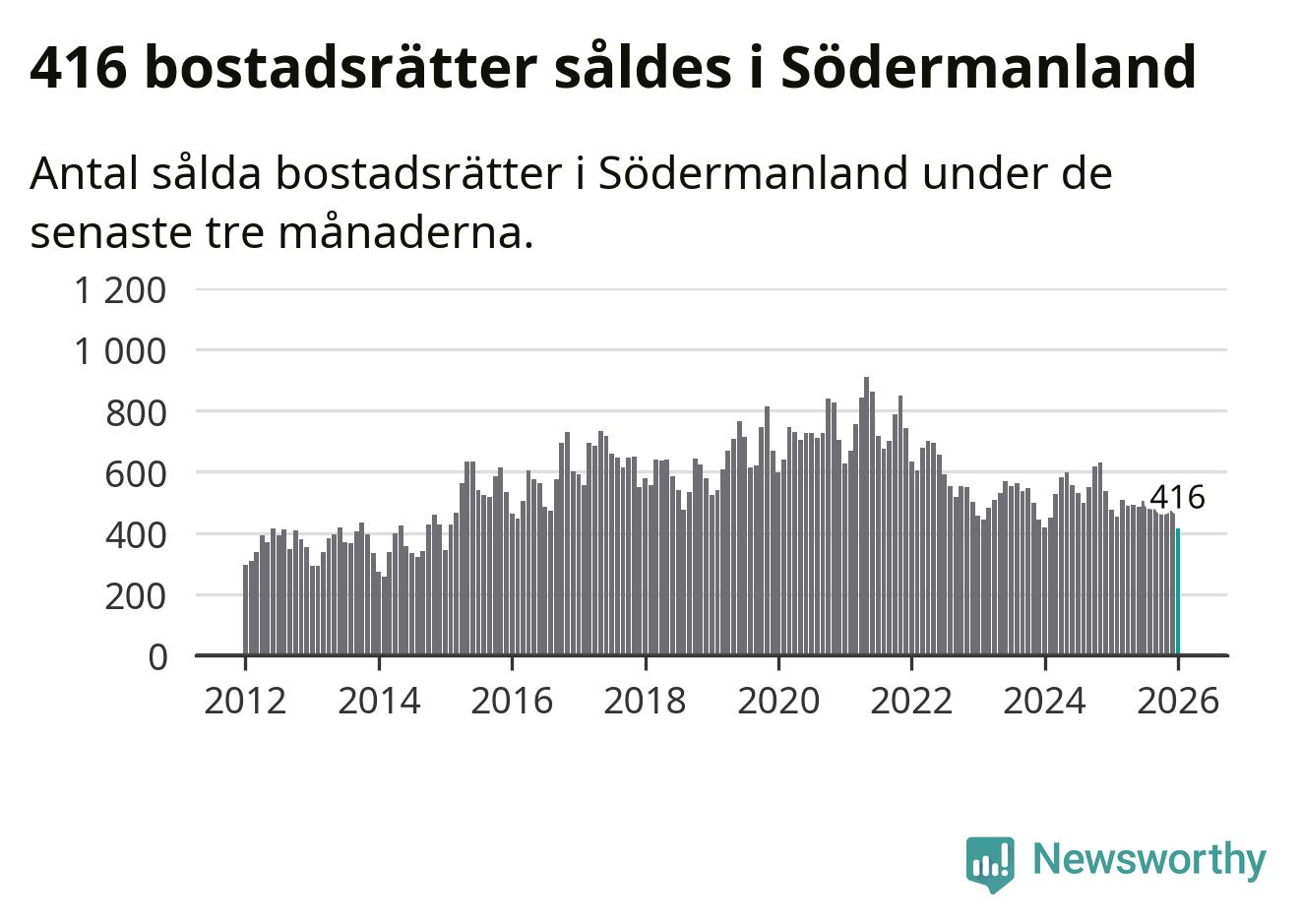 Mellan november och januari såldes 416 bostadsrätter i Södermanlands län. Det är färre än någon tremånadersperiod sedan 2015.