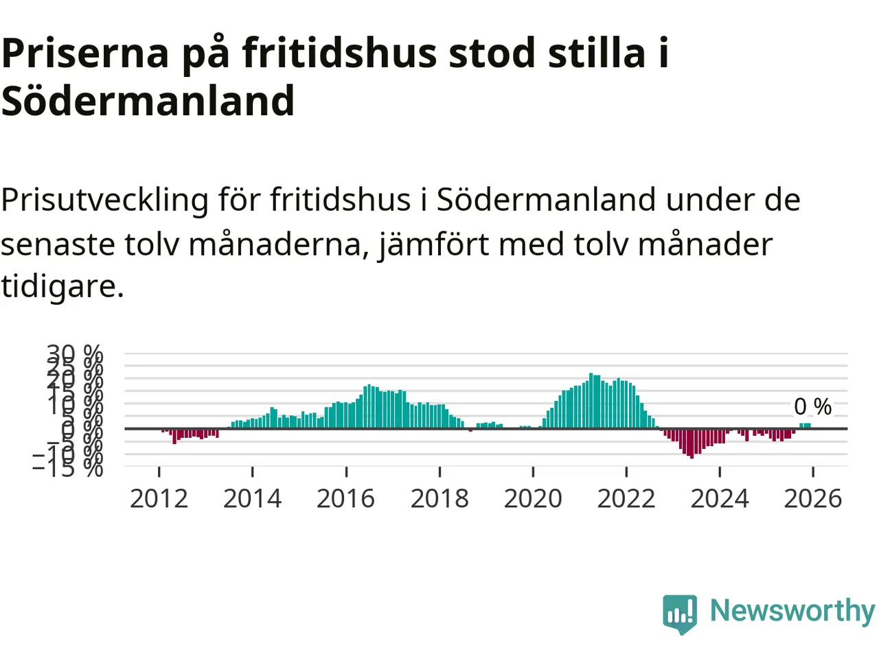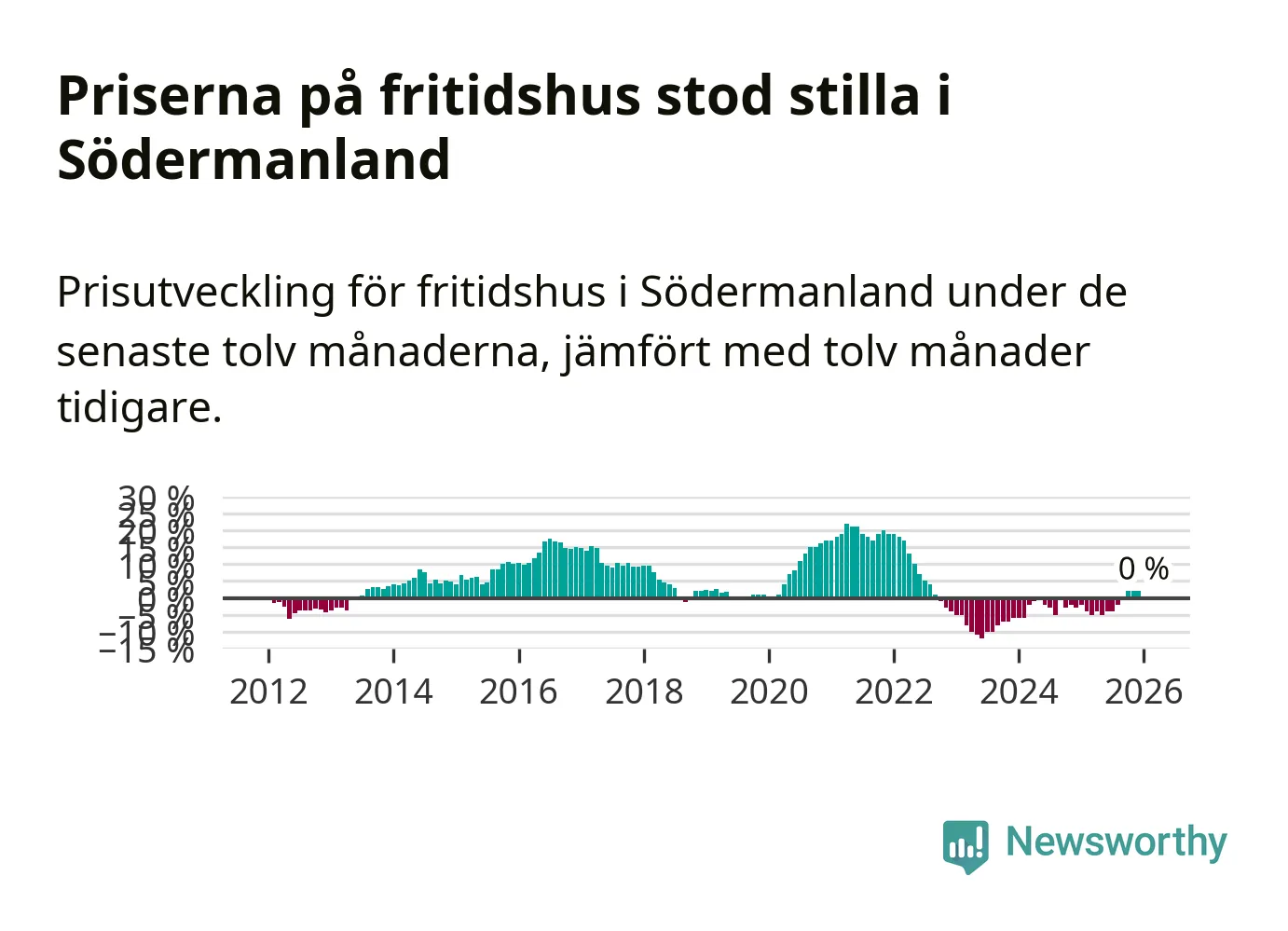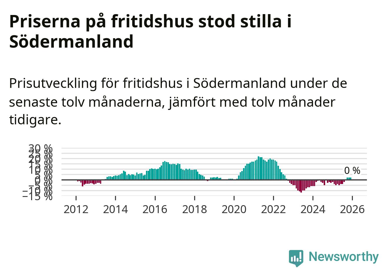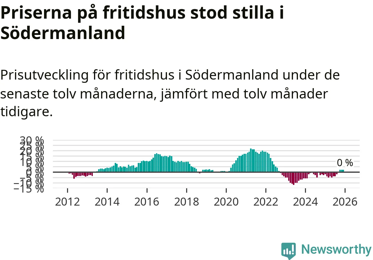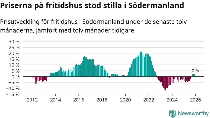 Priserna på fritidshus står i stort sett stilla i Södermanlands län. Medelpriset på de på försäljningarna under de senaste tolv månaderna låg på samma nivå som för ett år sedan.