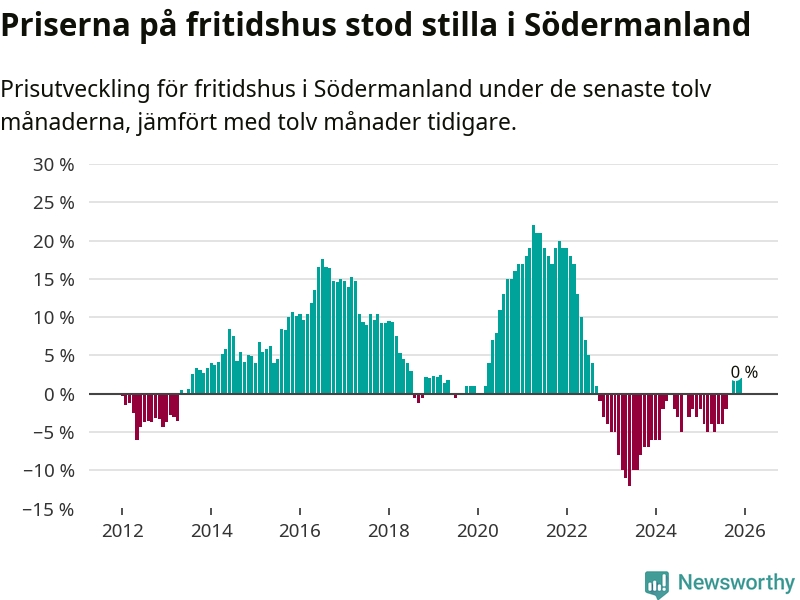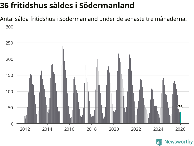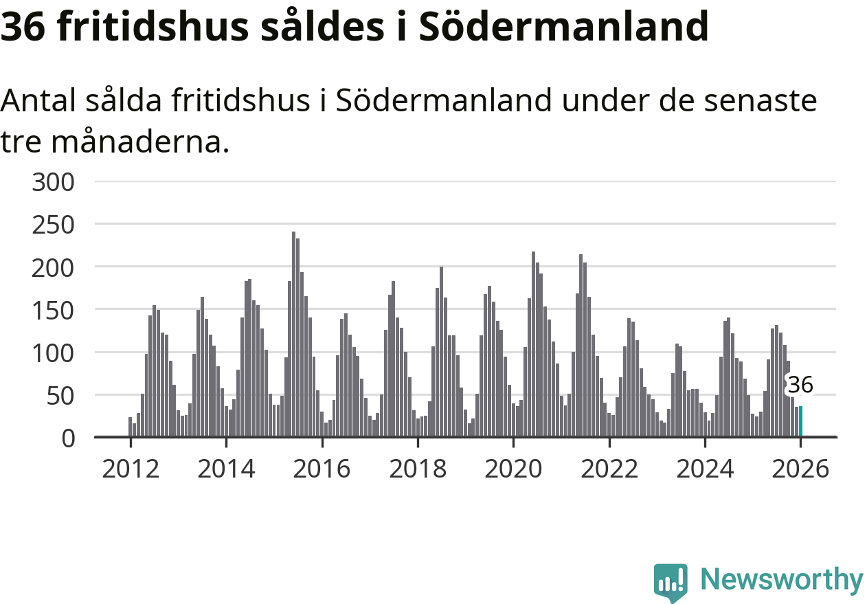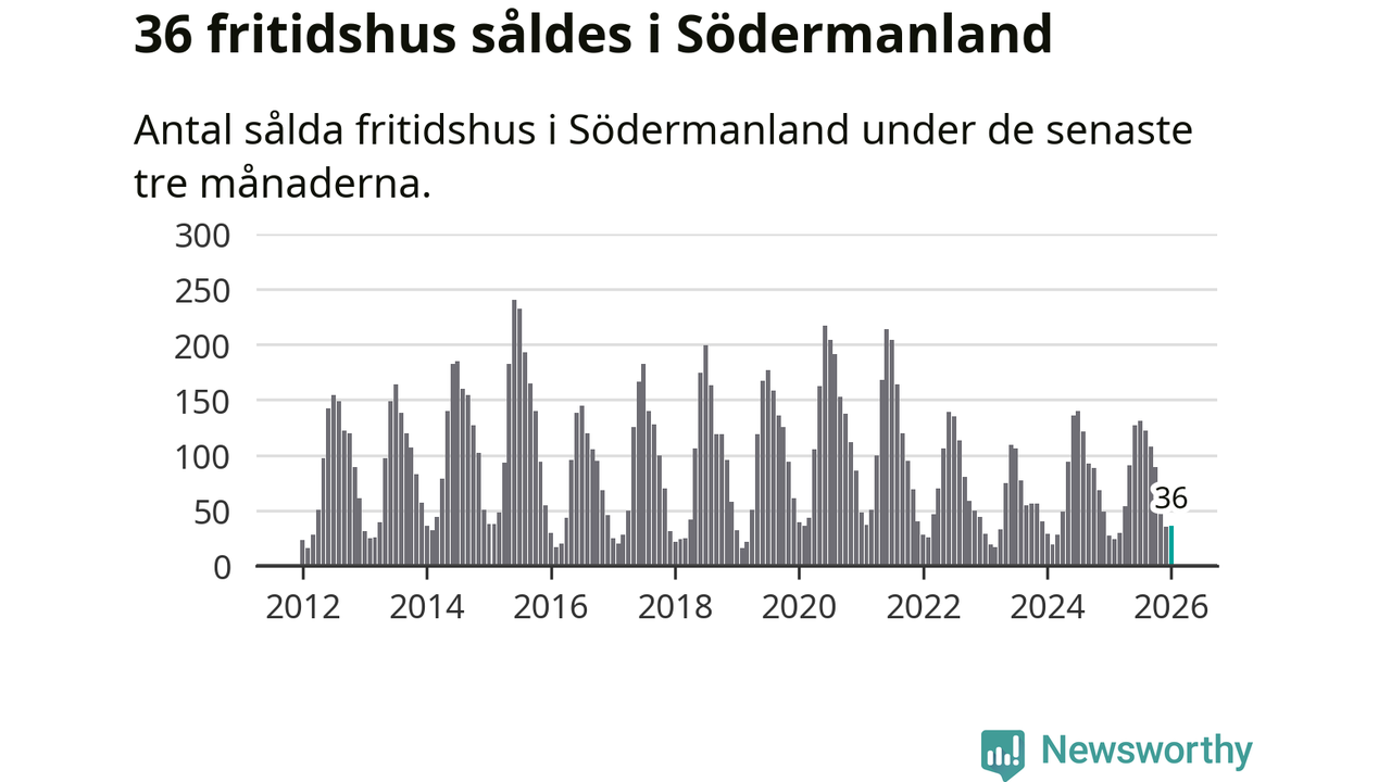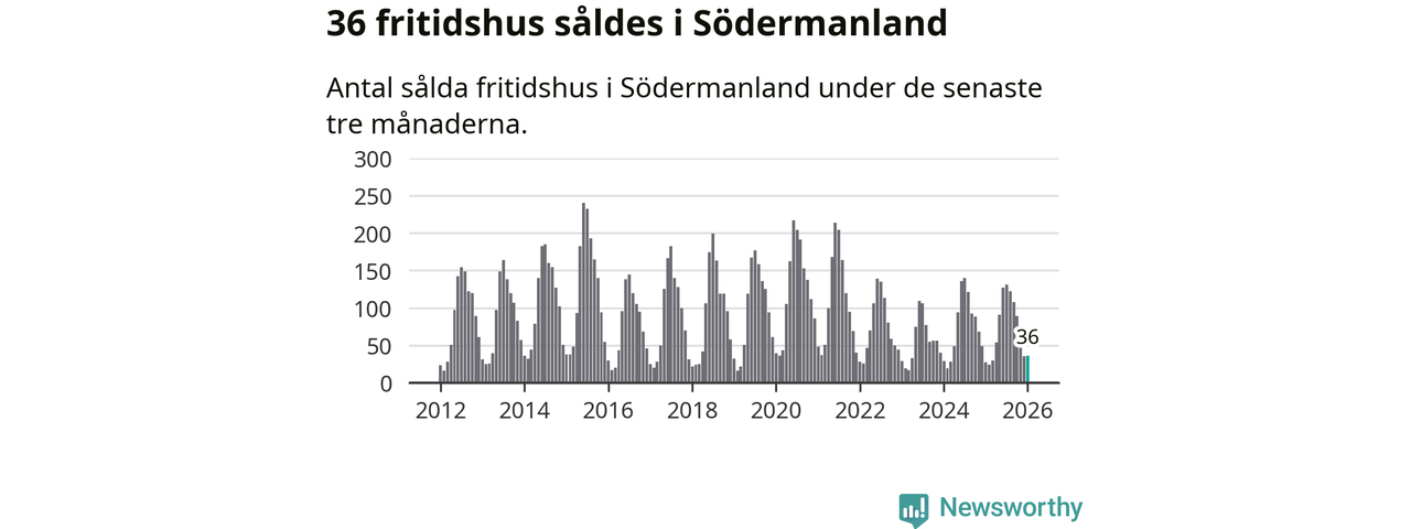 Sammanlagt såldes 36 fritidshus i Södermanlands län mellan november 2025 och januari till ett genomsnittligt pris på 1,9 miljoner kronor. I fjol gjordes 27 affärer vid den här tiden på året.