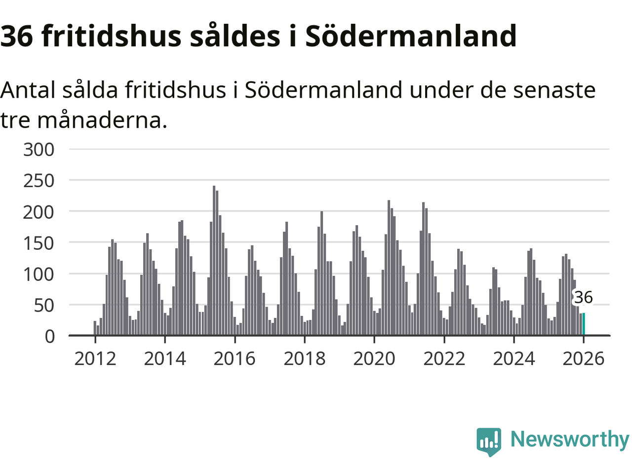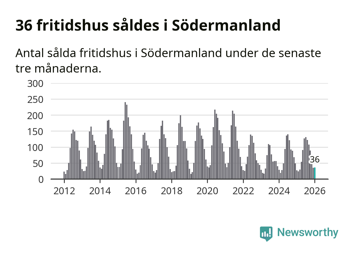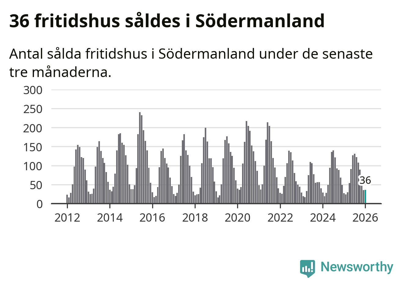 Sammanlagt såldes 36 fritidshus i Södermanlands län mellan november 2025 och januari till ett genomsnittligt pris på 1,9 miljoner kronor. I fjol gjordes 27 affärer vid den här tiden på året.