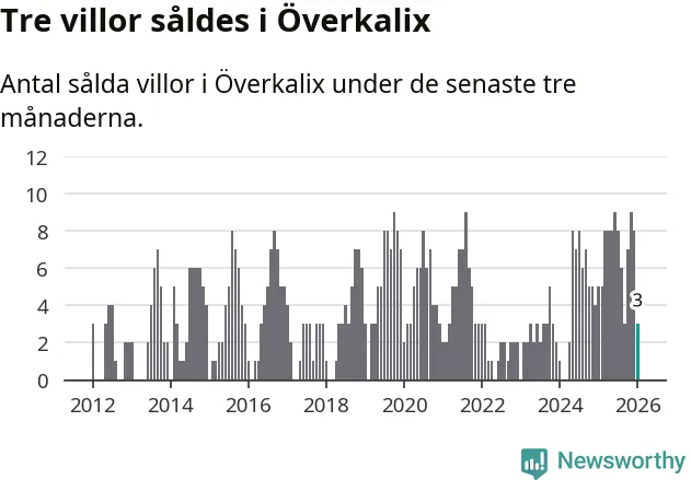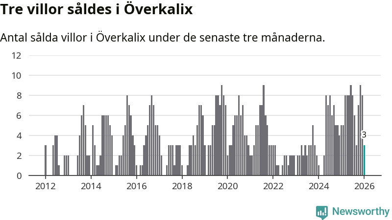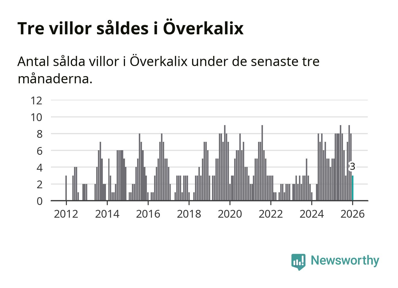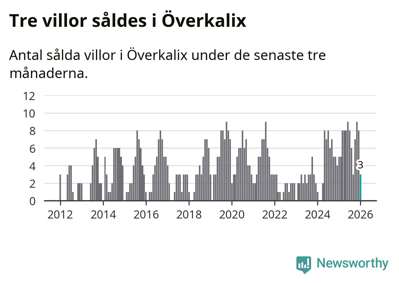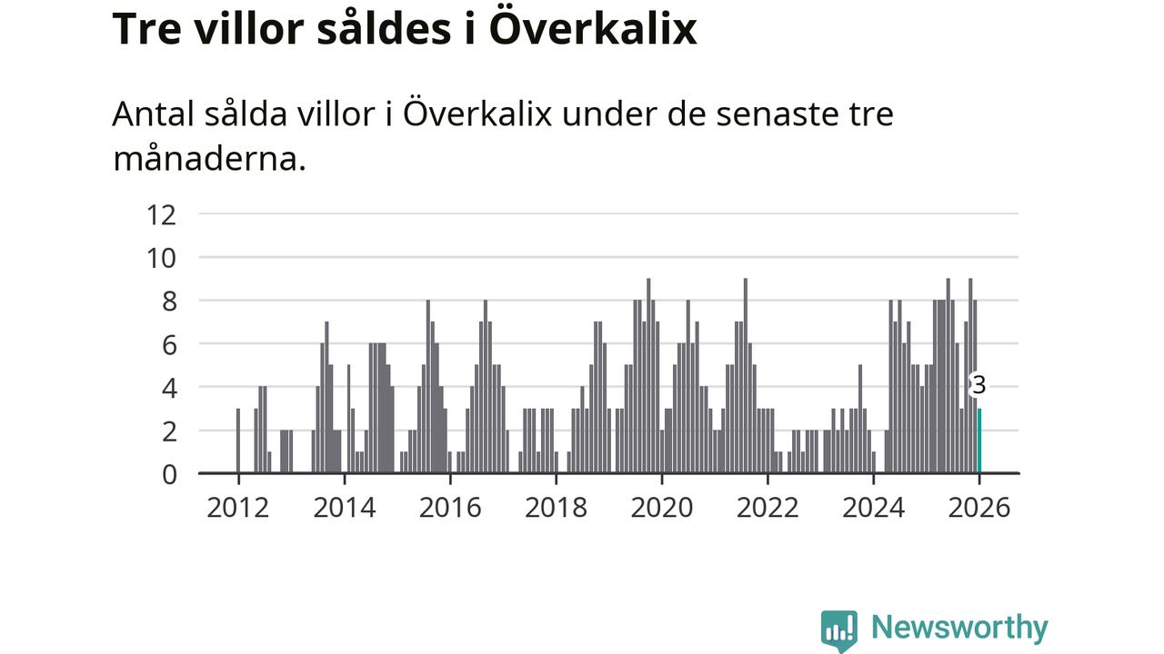 Mellan november och januari gjordes sammanlagt tre affärer med villor i Överkalix kommun. Det kan jämföras med fem vid motsvarande tid i fjol.